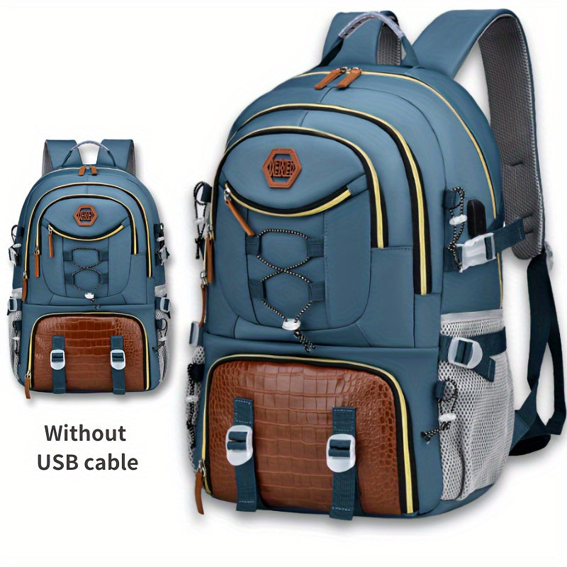 WEIXIER Erkaklar uchun Oq va Jigarrang Rangdagi Zamonaviy Ko'p Funktsiyali Ruxsatnoma, Laptop, Sayohat, Maktab va Ish uchun Katta Hajm, Qayta ishlanadigan Nilon, Krokodil Teksturasiga ega - Do'stlar uchun Mukammal Sovg'a