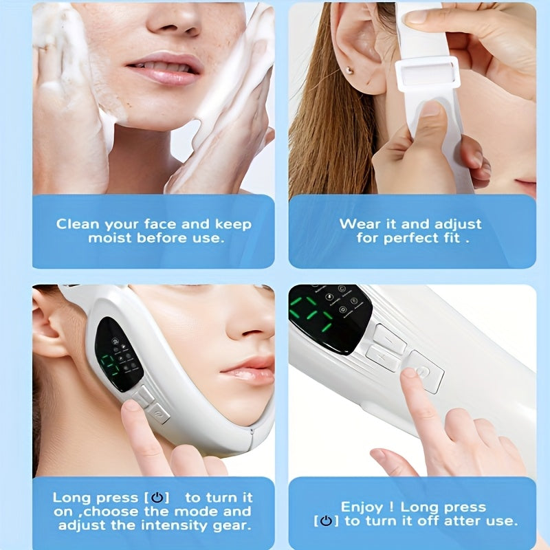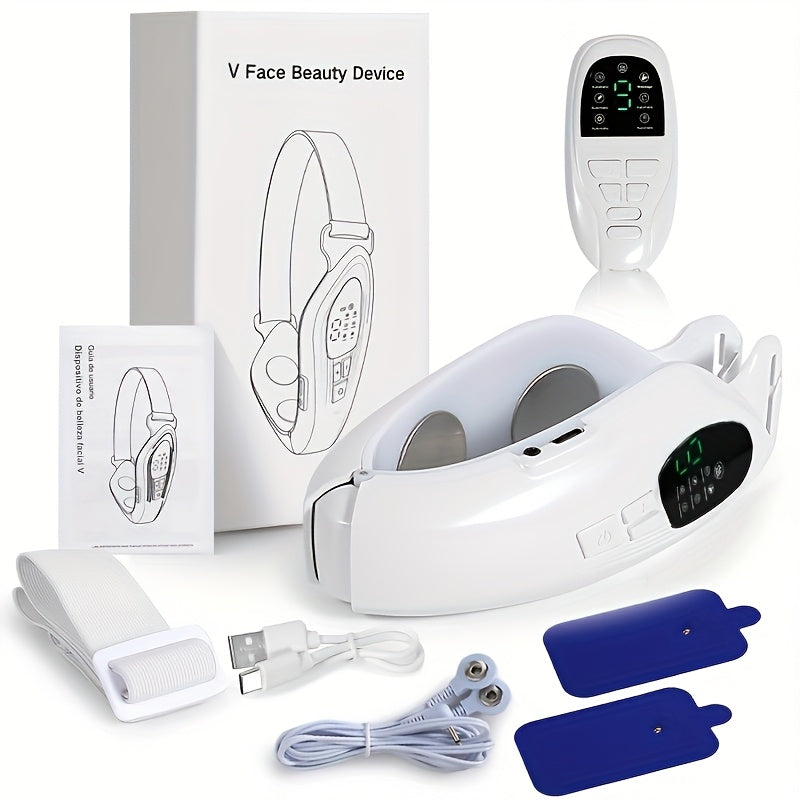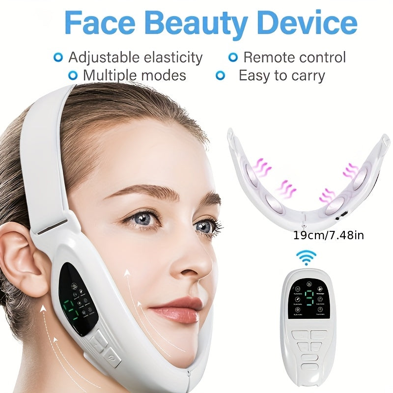 O'zgaruvchan rejimlar va intensivlik uchun masofadan boshqarish pultiga ega oq yuz massajchisi, USB orqali zaryadlanadigan, ergonomik dizaynga ega, ayollar uchun ideal sovg'a.