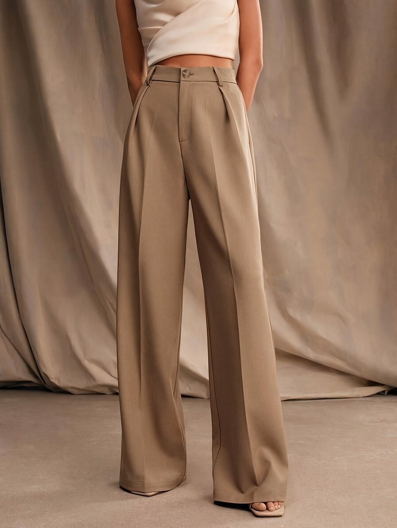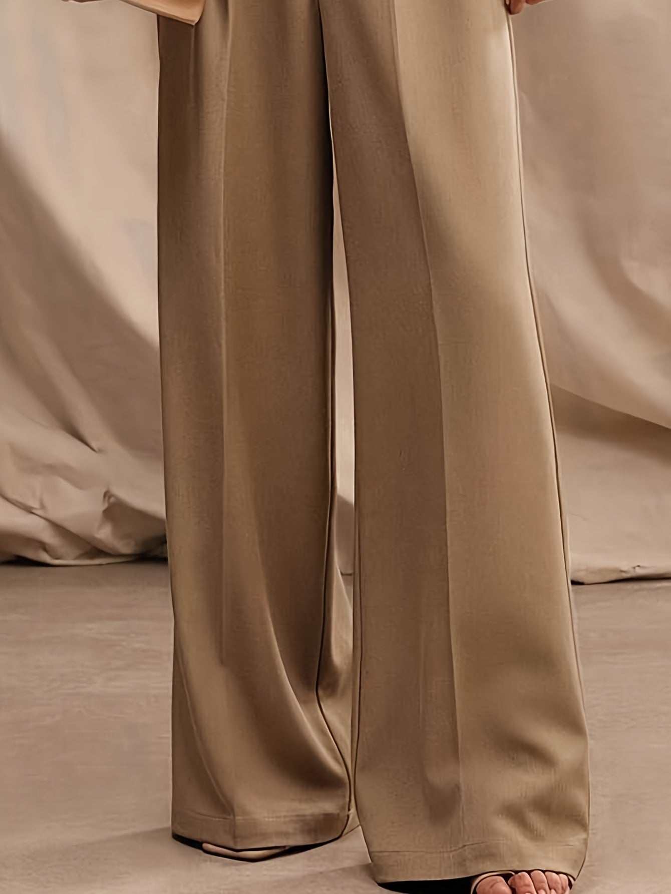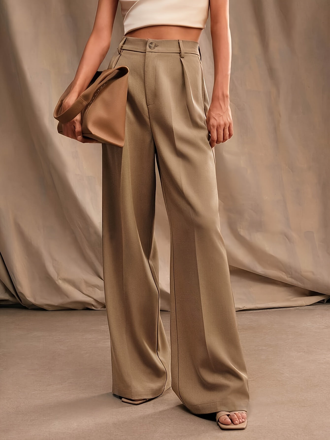 Keng oyoq yuqori bel ayollar shimlari, nafis dizayn, bir rangda, bahor va kuz uchun mos, mashinada yuvish mumkin.