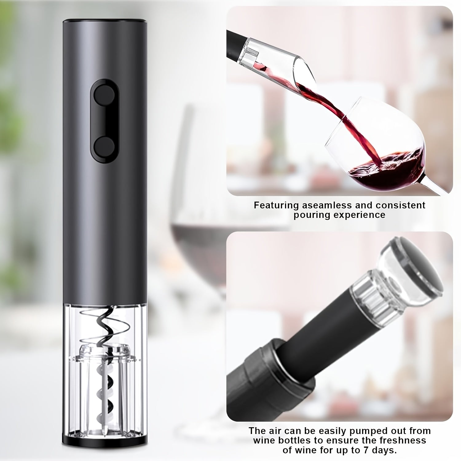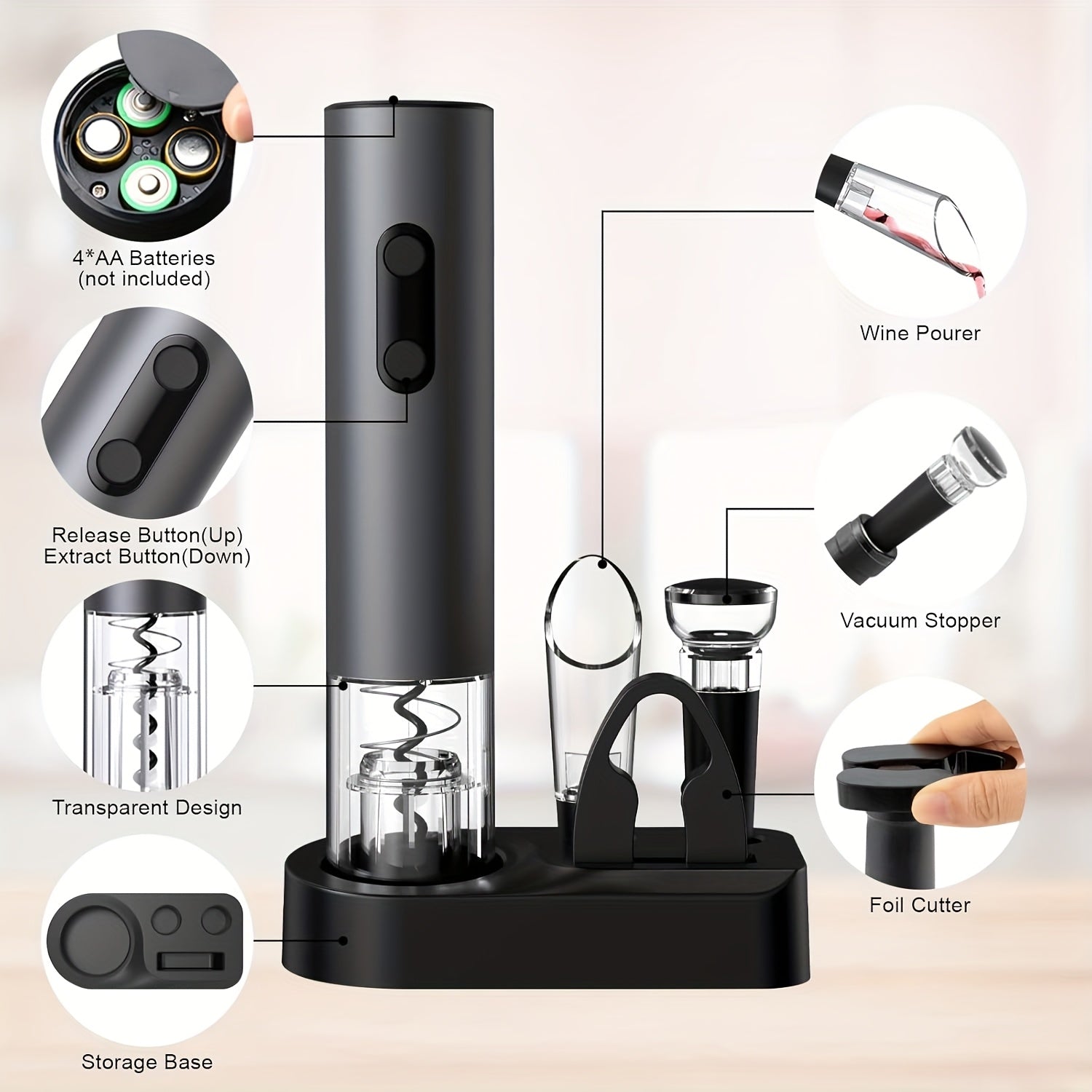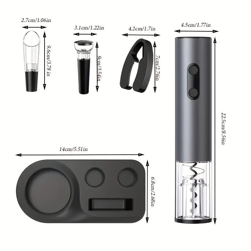 Uy uchun va bayramlar uchun vino aksessuarlar to'plami: folga kesuvchi, vakuum saqlovchi, quyish moslamasi va aerator