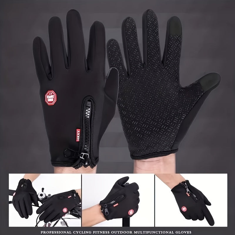 Qishki velosiped qo‘lqoplari shamol o'tkazmaydigan issiq yopishmaydigan zippersi bilan yopiladi
