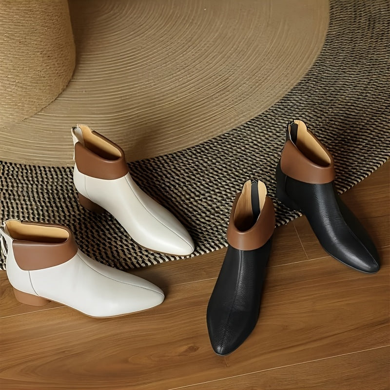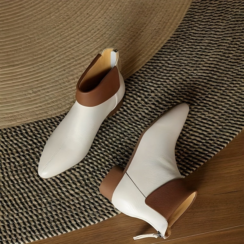 Women Ankle Boots Faux Cover Leather Mid-Heel Side Zipper Pointed Toe