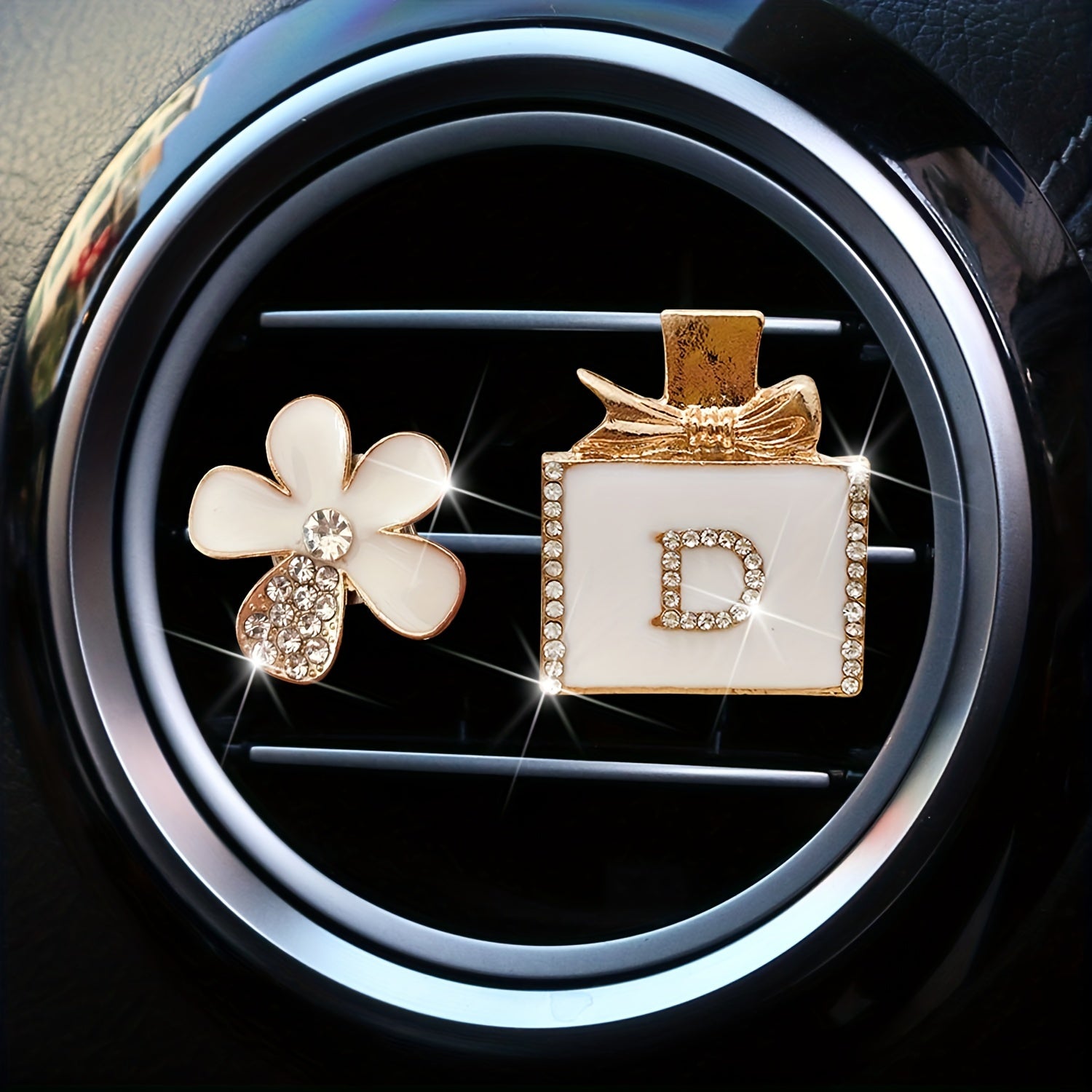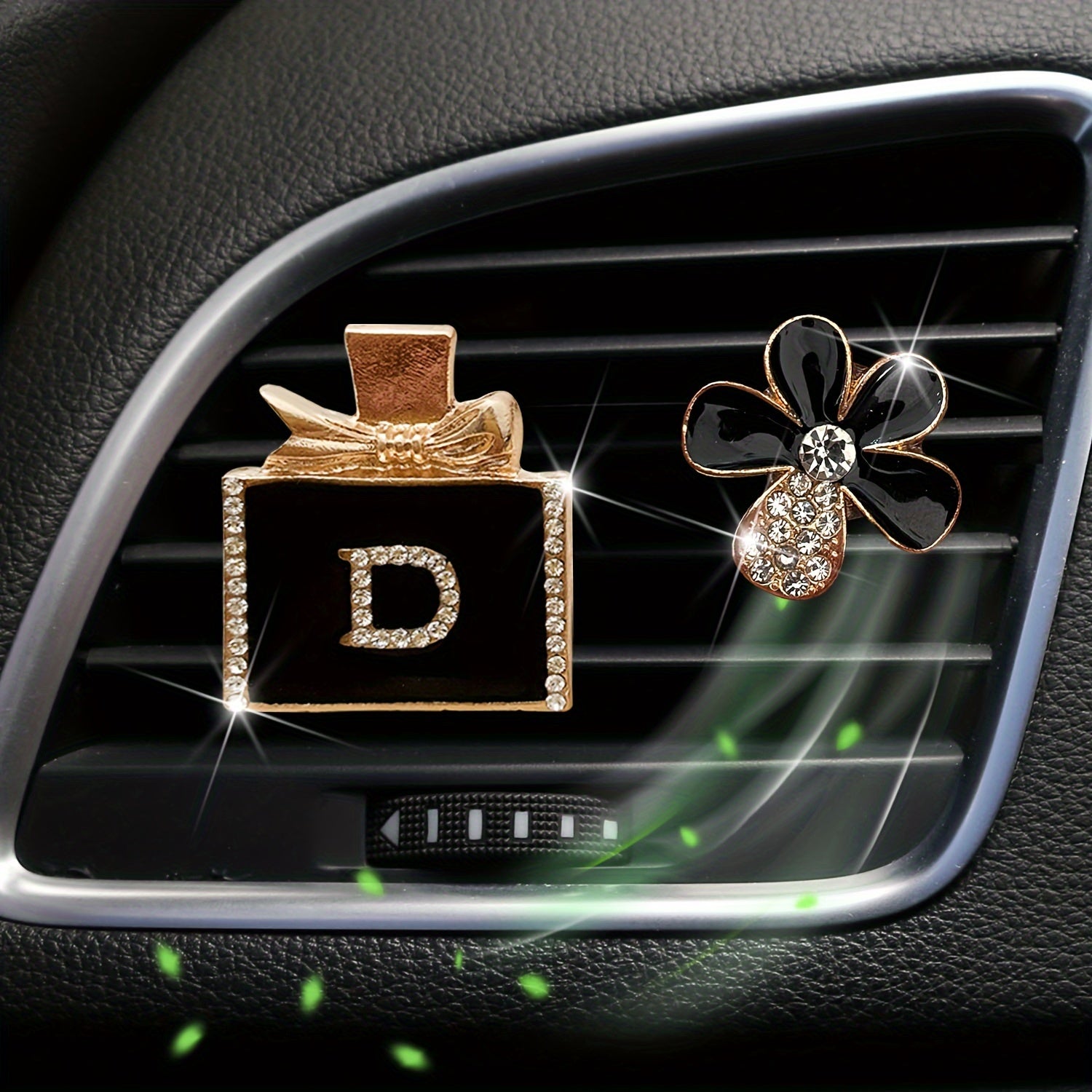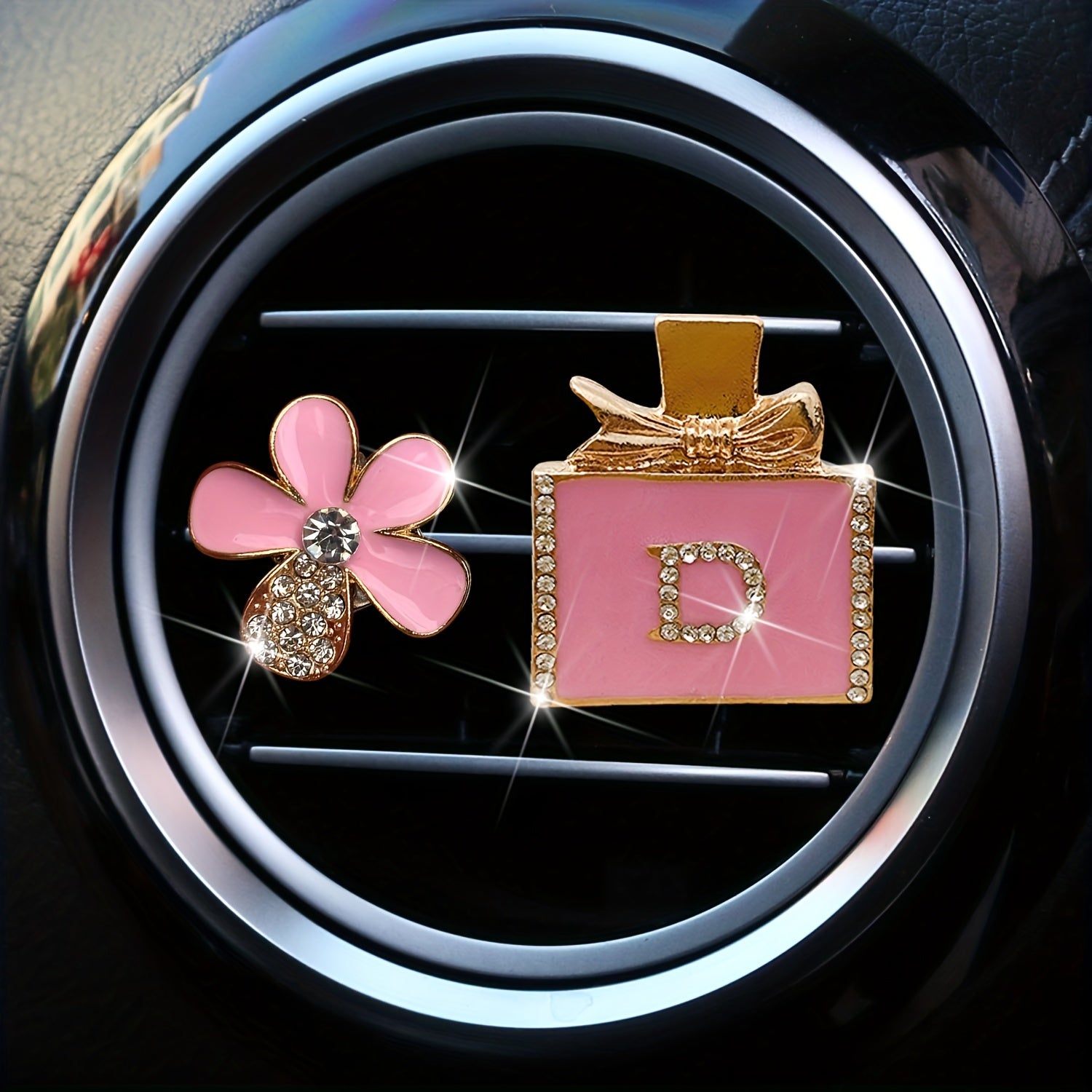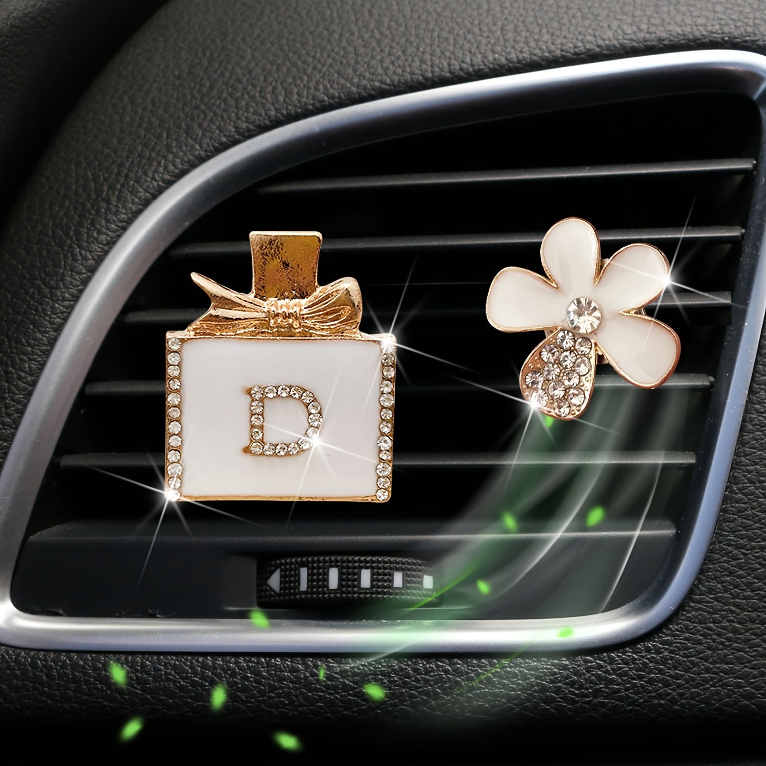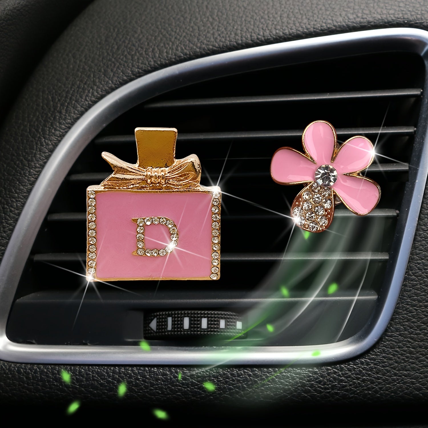 Ayollar uchun bezakli gul shaklidagi avtomobil hidi uchun shisha 2 dona rhinestone havo tozalovchi