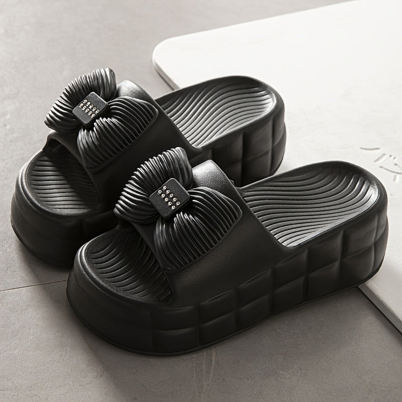Ayollar EVA slayd sandallari yozgi ochiq barmoqli, lenta bilan, qalin tagli, yopishqoqsiz, qora