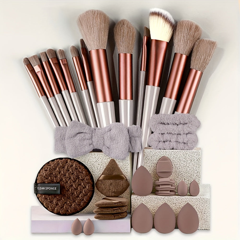 Ayollar uchun makiyaj cho'tkasi to'plami yumshoq, mo'rt va shilimshiq kosmetik, asos, kukun, ko'zoynak, kabuki