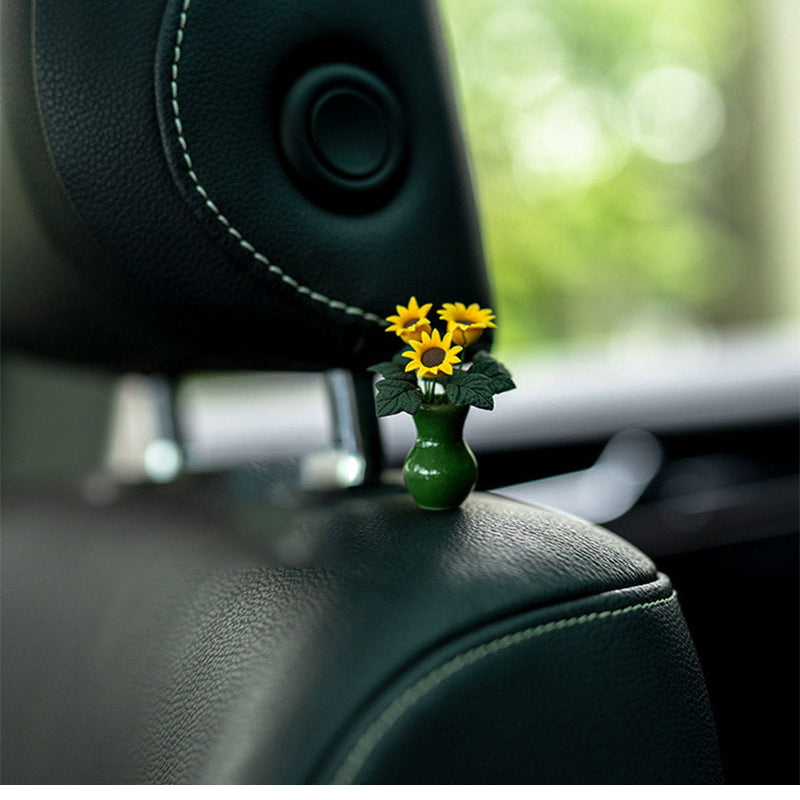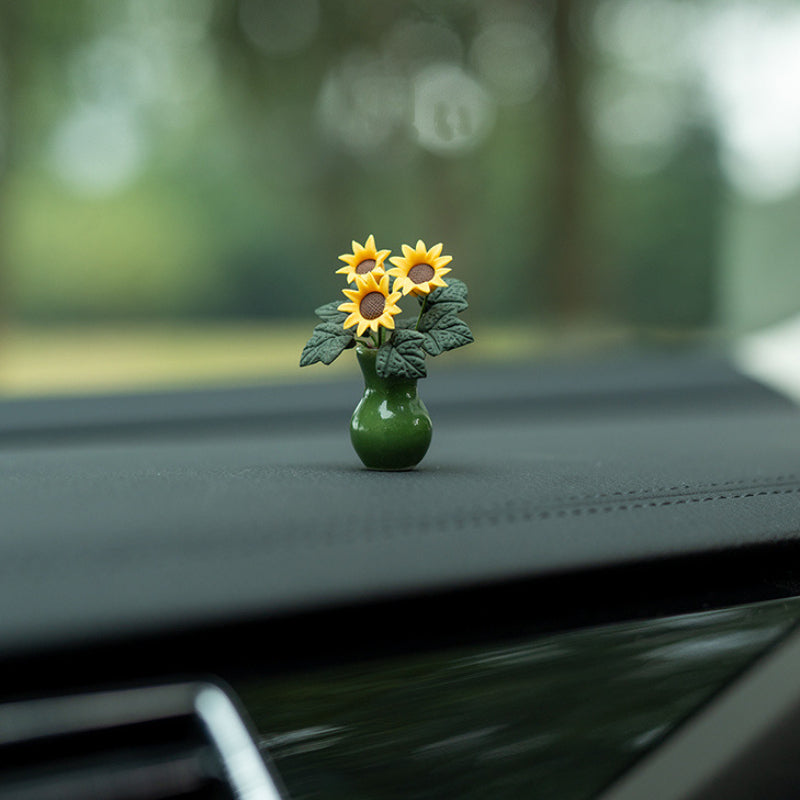 Ayollar uchun Resin Keramika Mini Qorong'i Yashil Quyoshgul Avtomobil Ichki Dekori