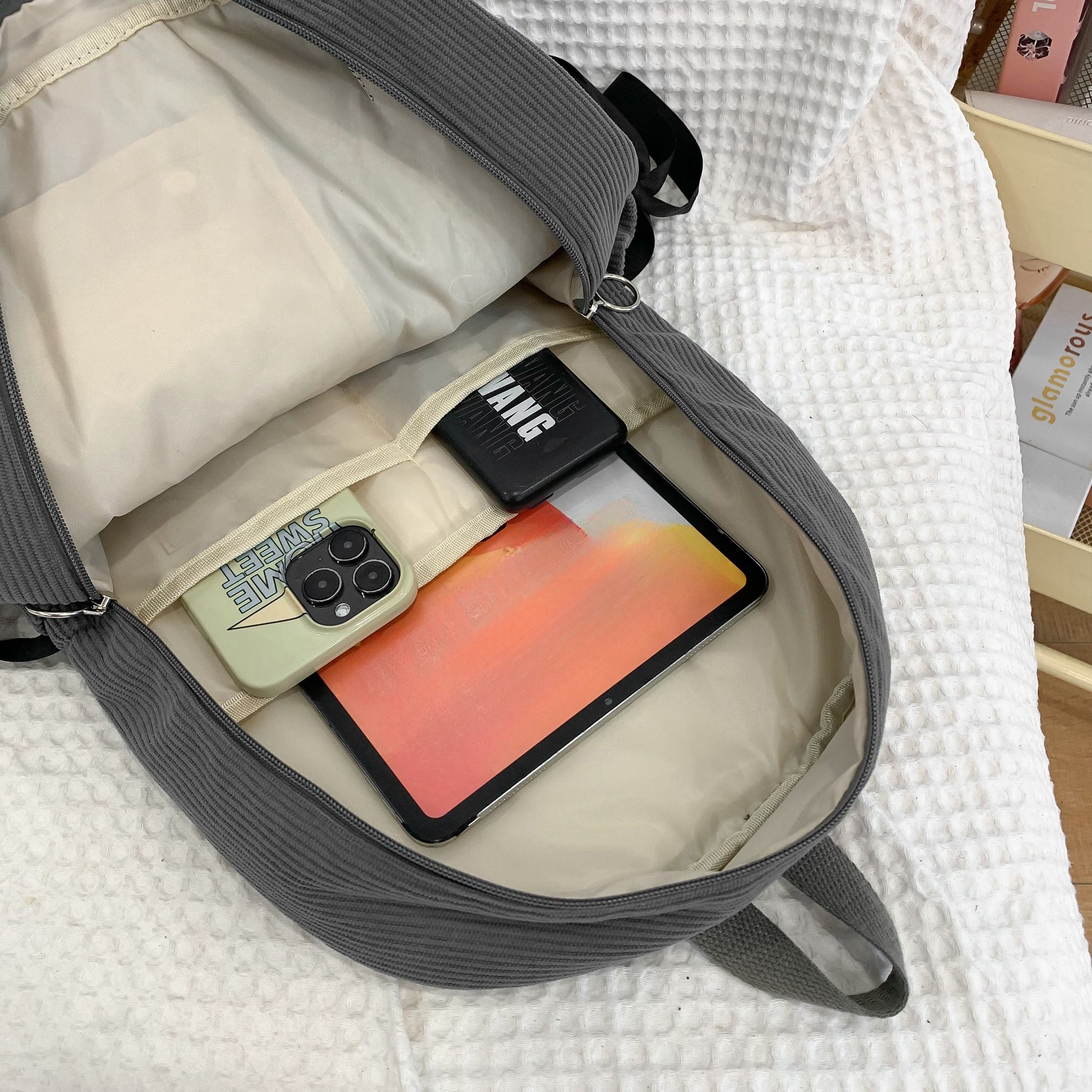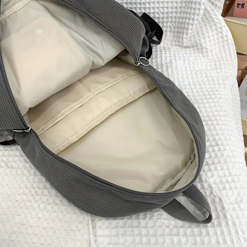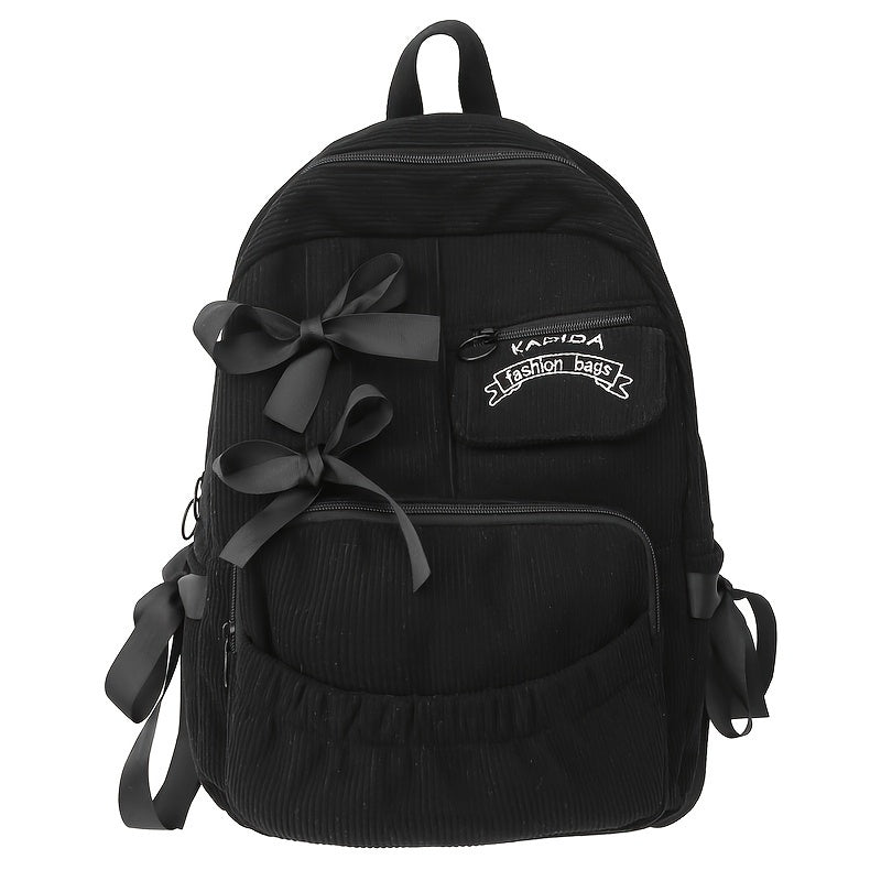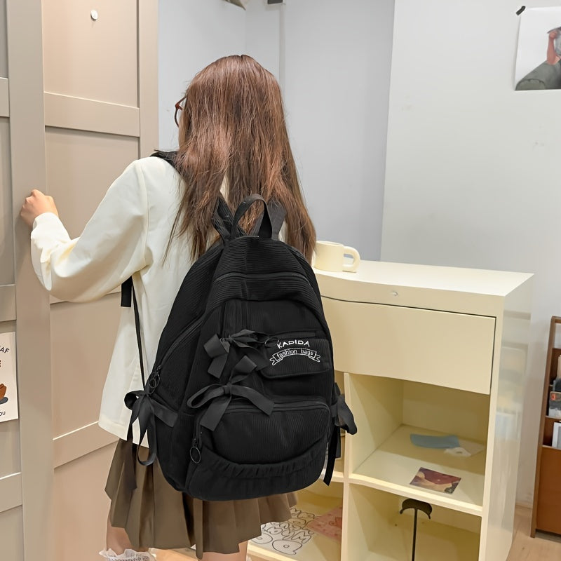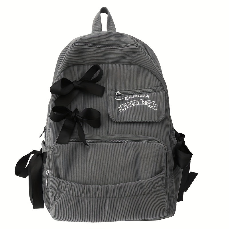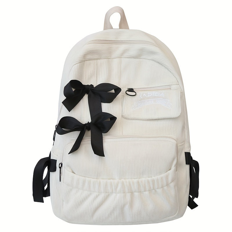 Ayollar uchun 1 dona korduroy bowknot ruksak, shirin uslub, chiziqli dizayn, sozlanadigan yelka tasmalari, noutbuk bo'limi, zip yopilishi, polyester astar, qo'l yuvish/quruq tozalash - Kundalik tasodifiy