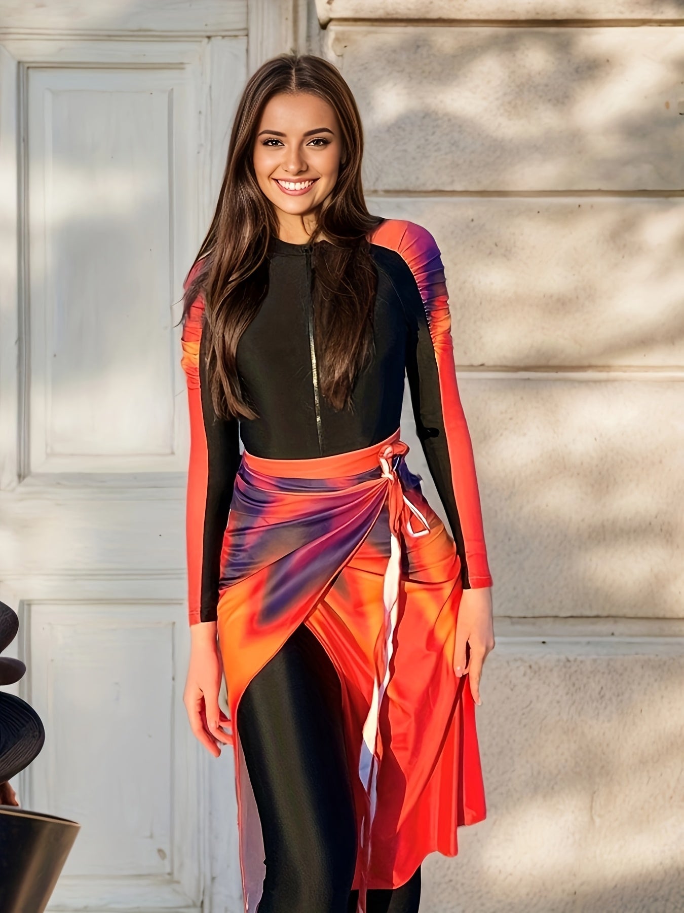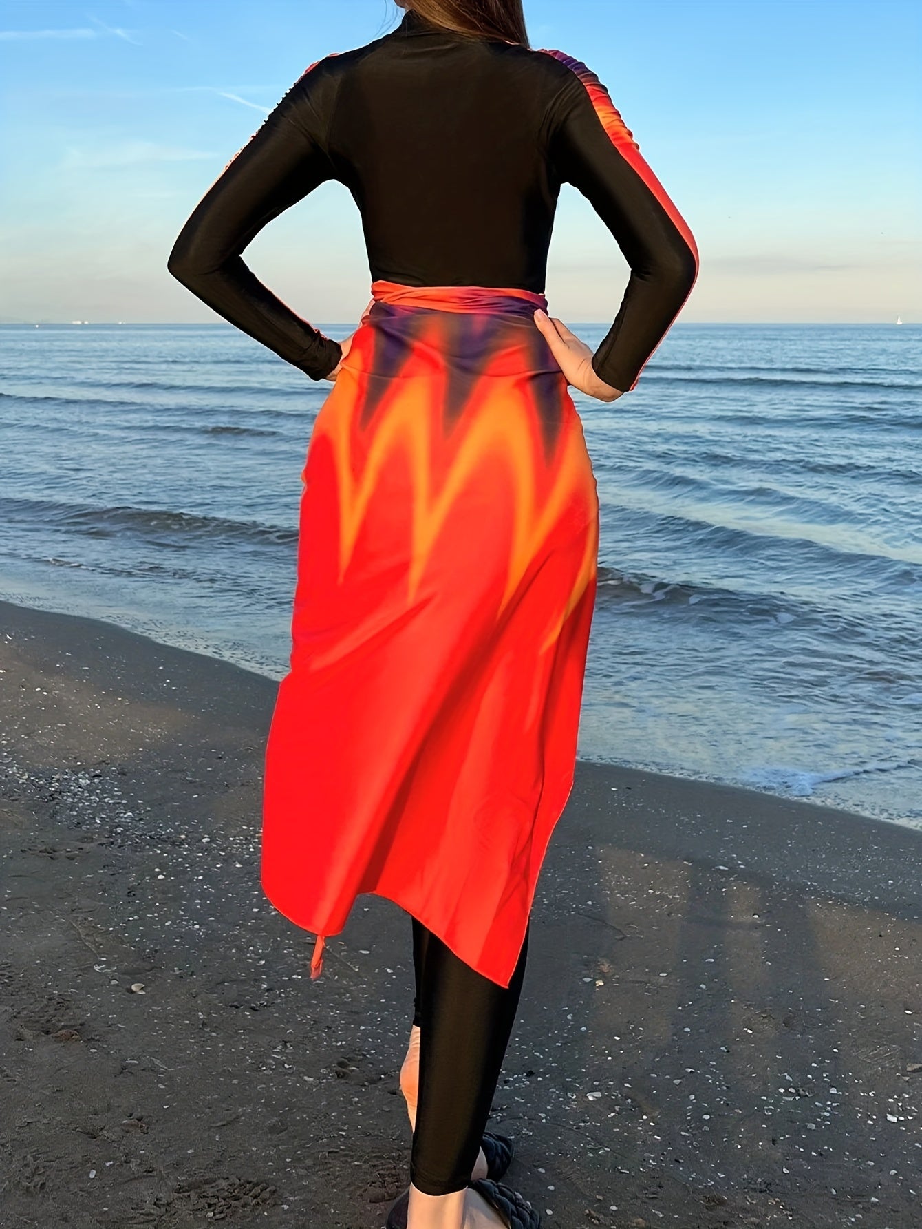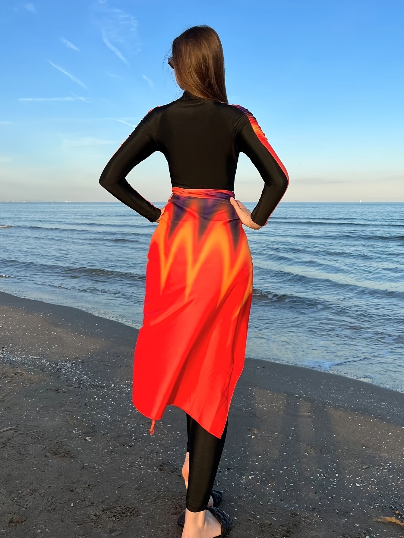 Ayollar uchun 3 qismli suzish kostyumi to'plami, olov naqshli, bir qismli suzish kostyumi va yopqich.