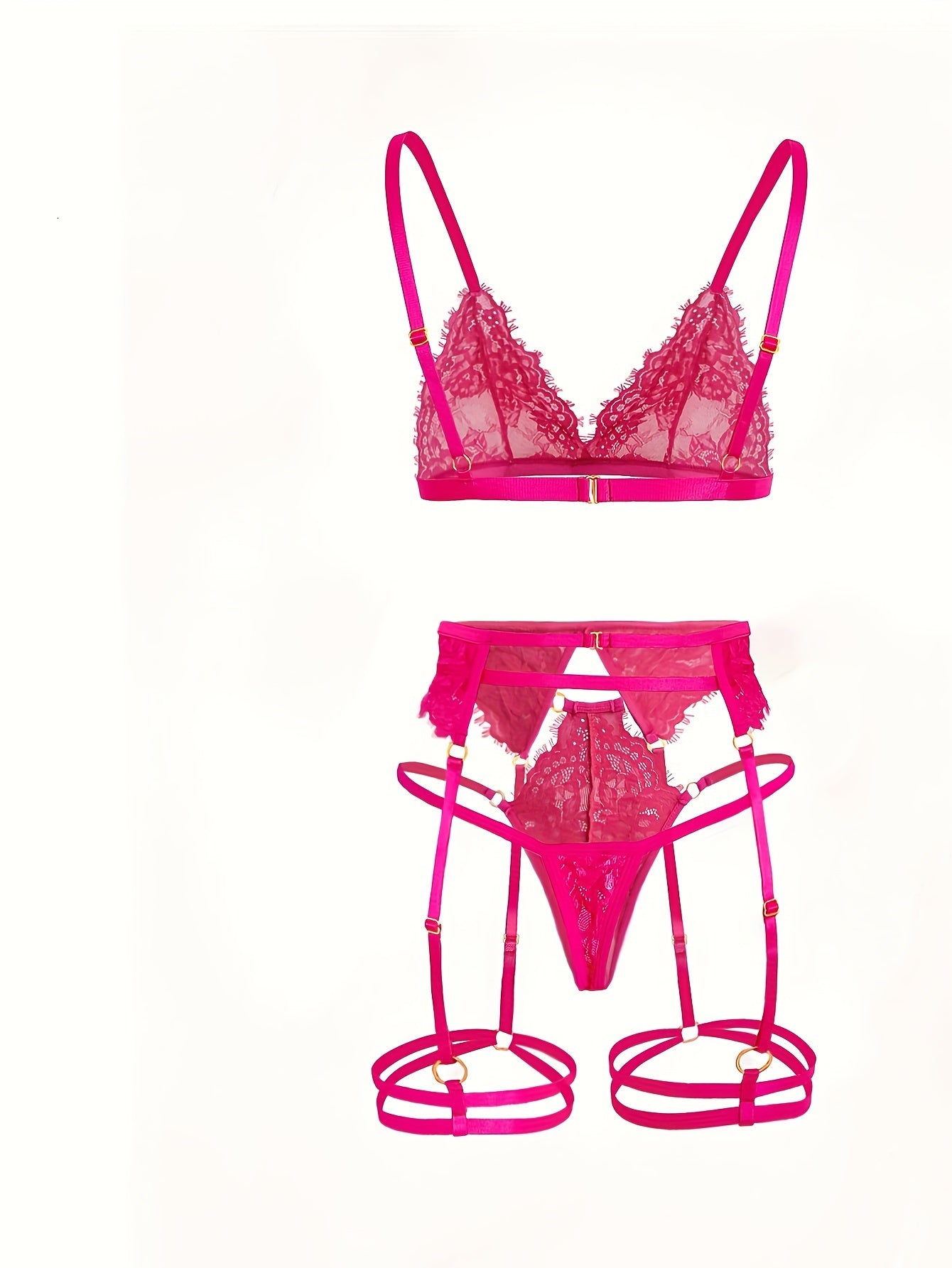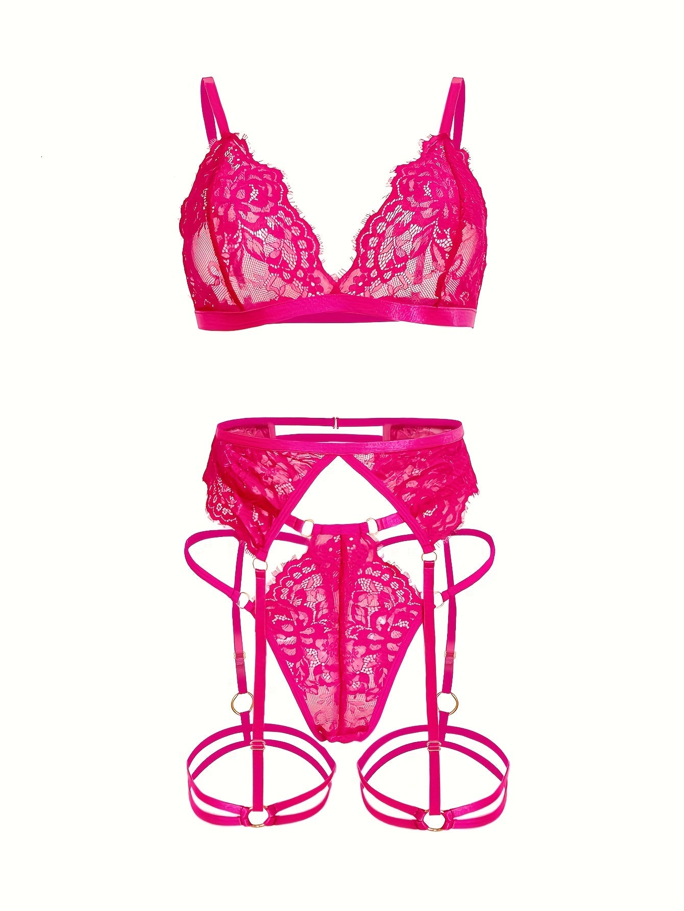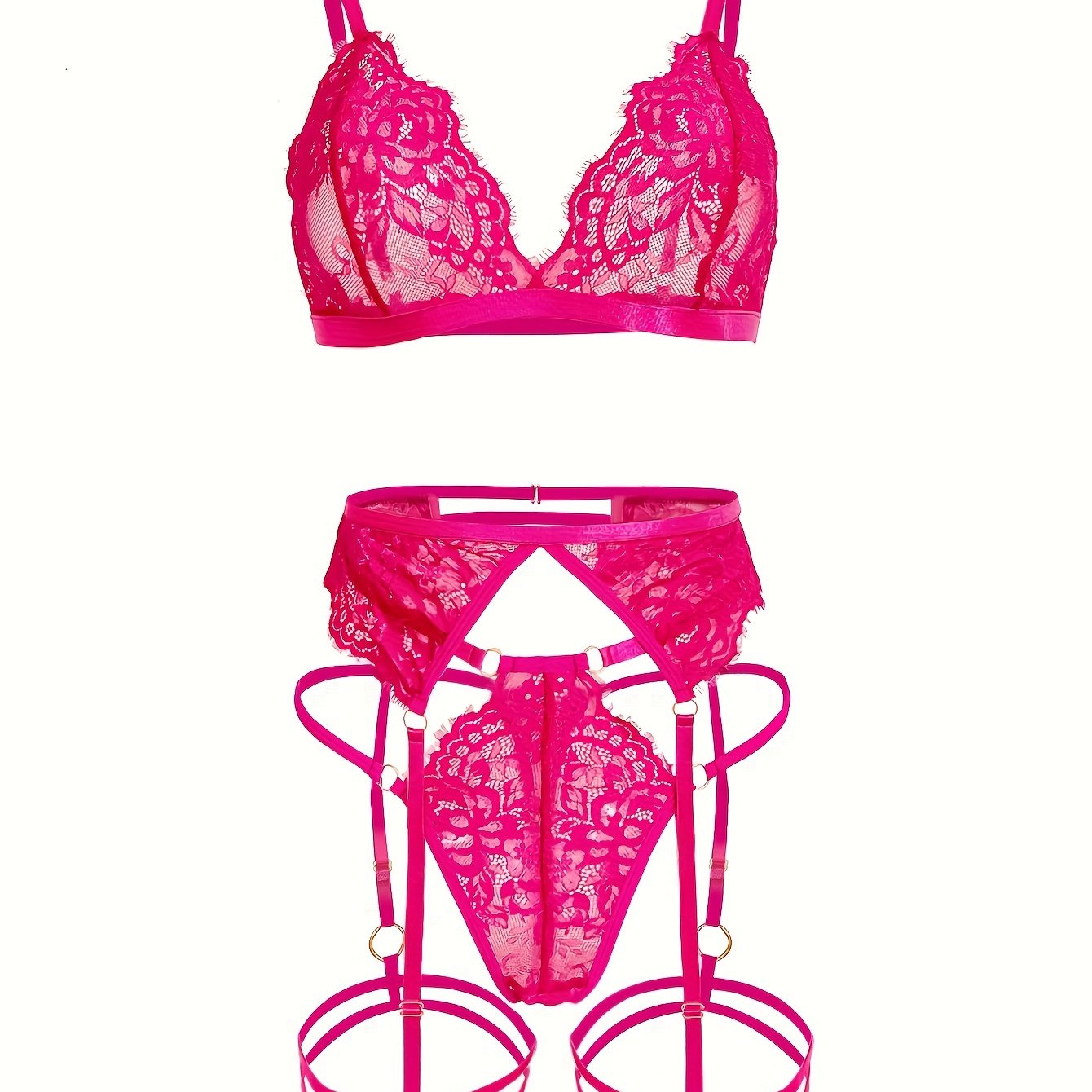 Ayollar uchun 5 ta qismlik jozibali gullar bilan bezatilgan dantelli ichki kiyim to'plami: brassier, thong, garter belti va oyoq halqalari. Nylon aralashmasi, qo'l bilan yuvish mumkin.