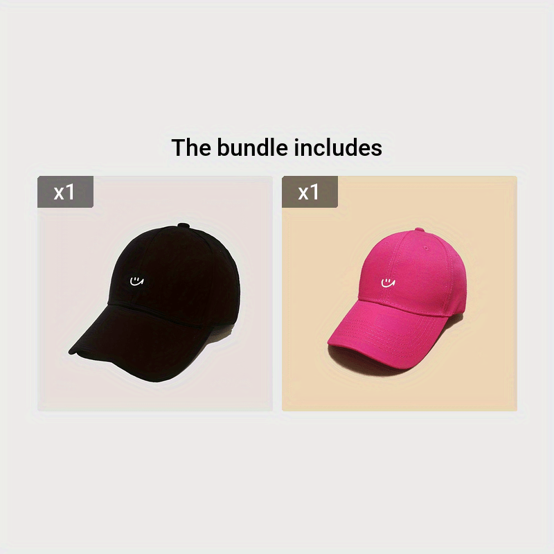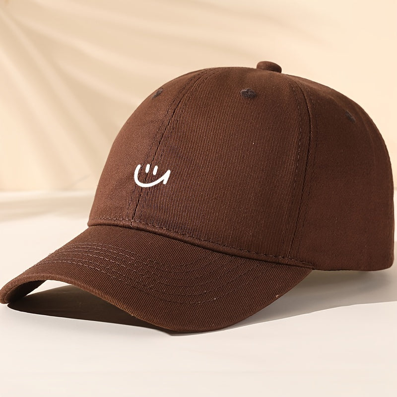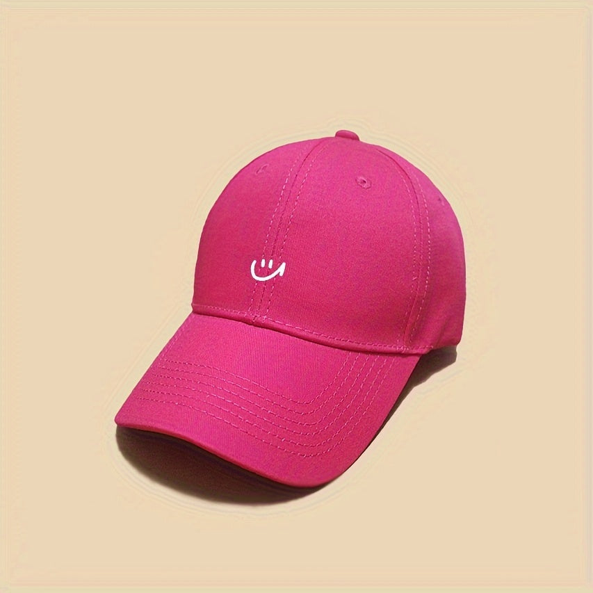 Ayollar uchun moslashtiriladigan beysbol shlyapasi - quvnoq yuz printi bilan, engil, nafas oladigan polyester, qora va oq tikuvlar bilan, ochiq havoda sport va tasodifiy kiyimlar uchun ideal.