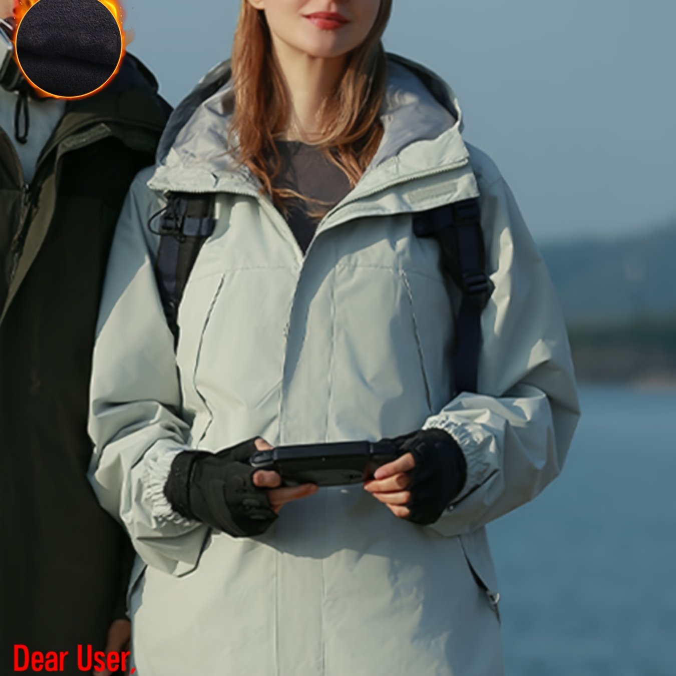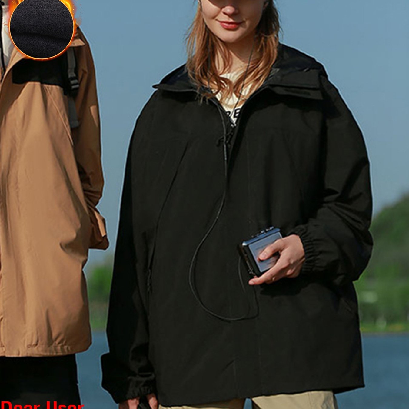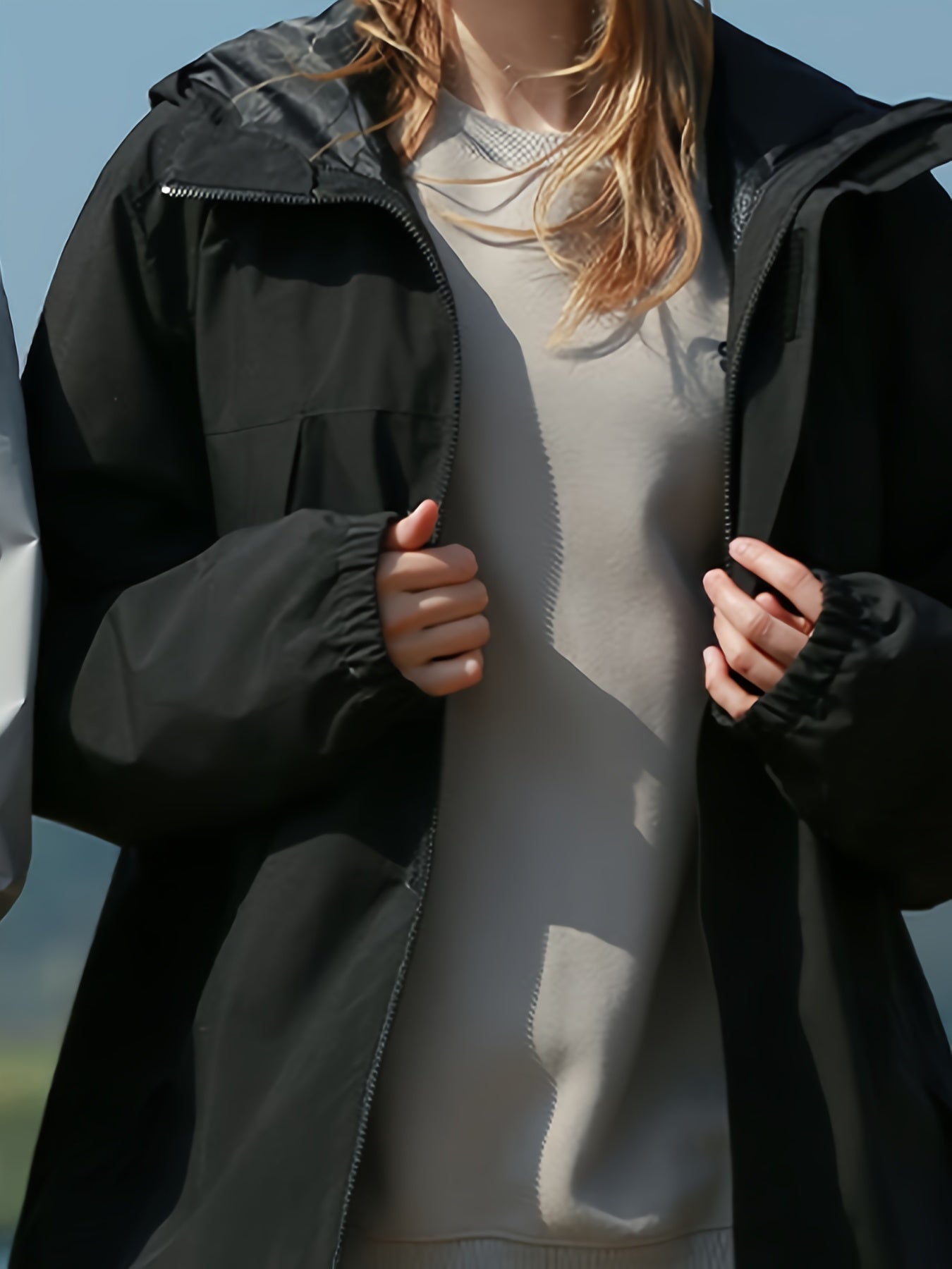 Ayollar uchun kuz qish shamol o'tkazmaydigan kapşonli tashqi kurtka, zipli cho'ntaklar bilan