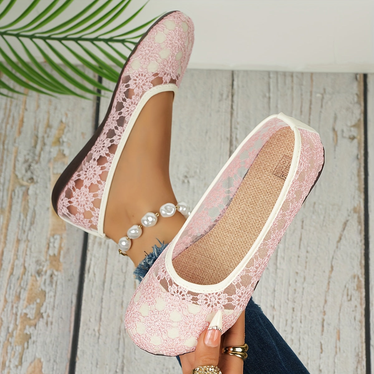 Ayollar uchun balet tufli bilan gulli korsaj nafas oladigan slip-on kundalik poyafzal