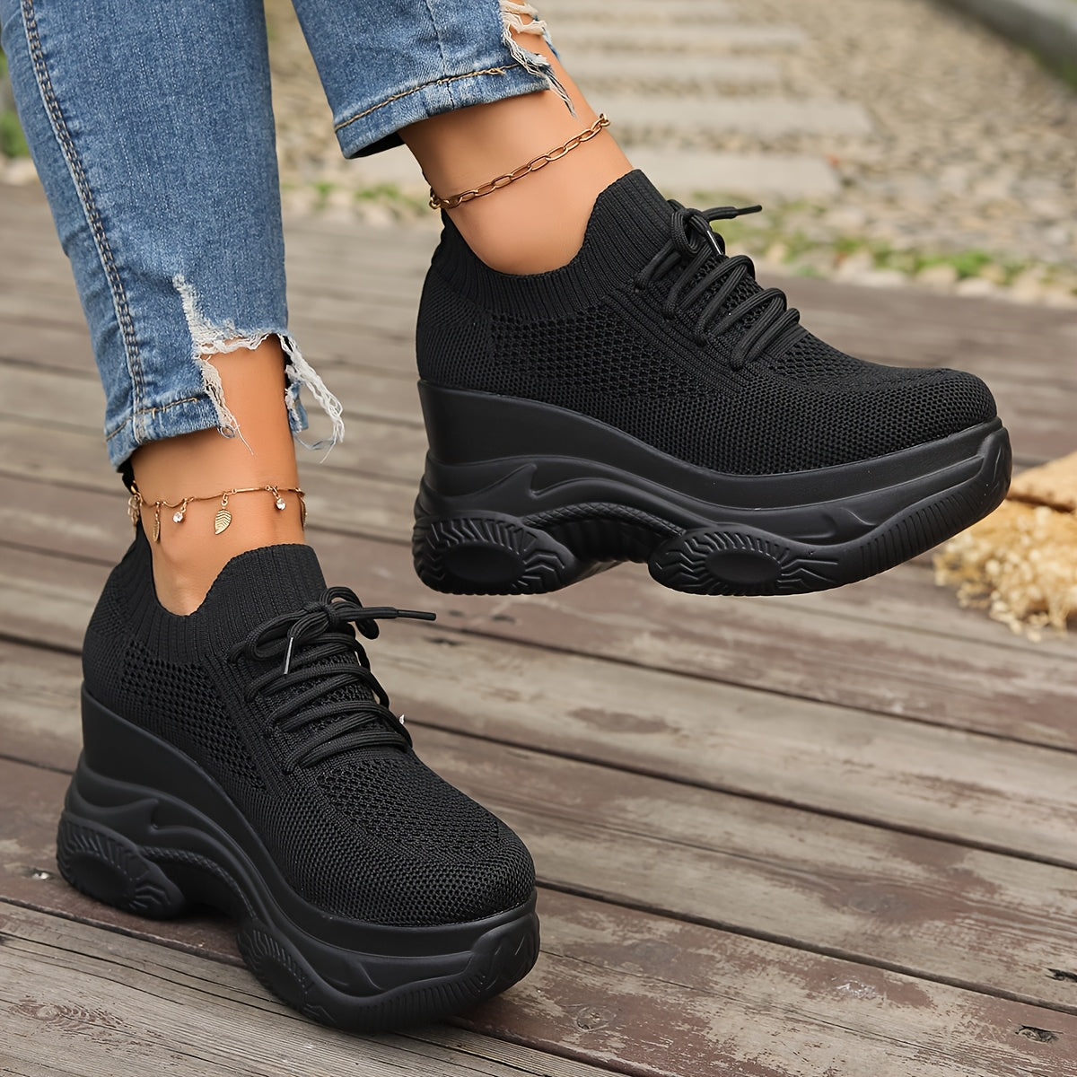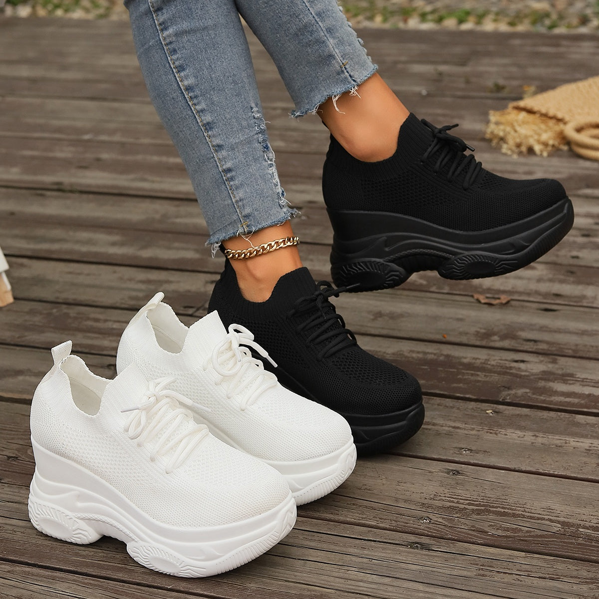 Ayollar uchun qora va oq tilla bilan yopiladigan kundalik sport poyabzali, nafas oladigan, yengil