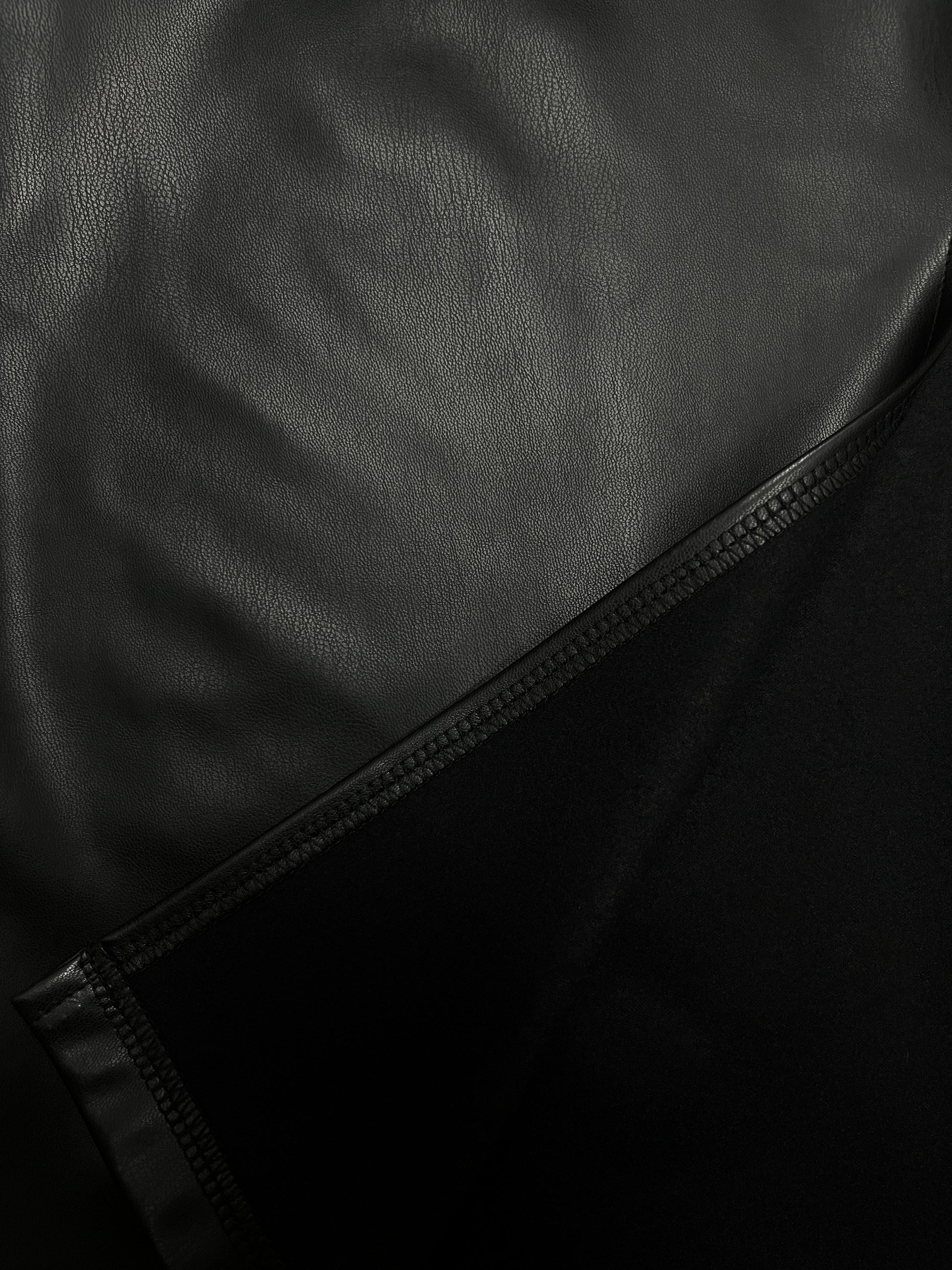Women’s Black High-Waisted PU Leather Midi Skirt with Side Slit