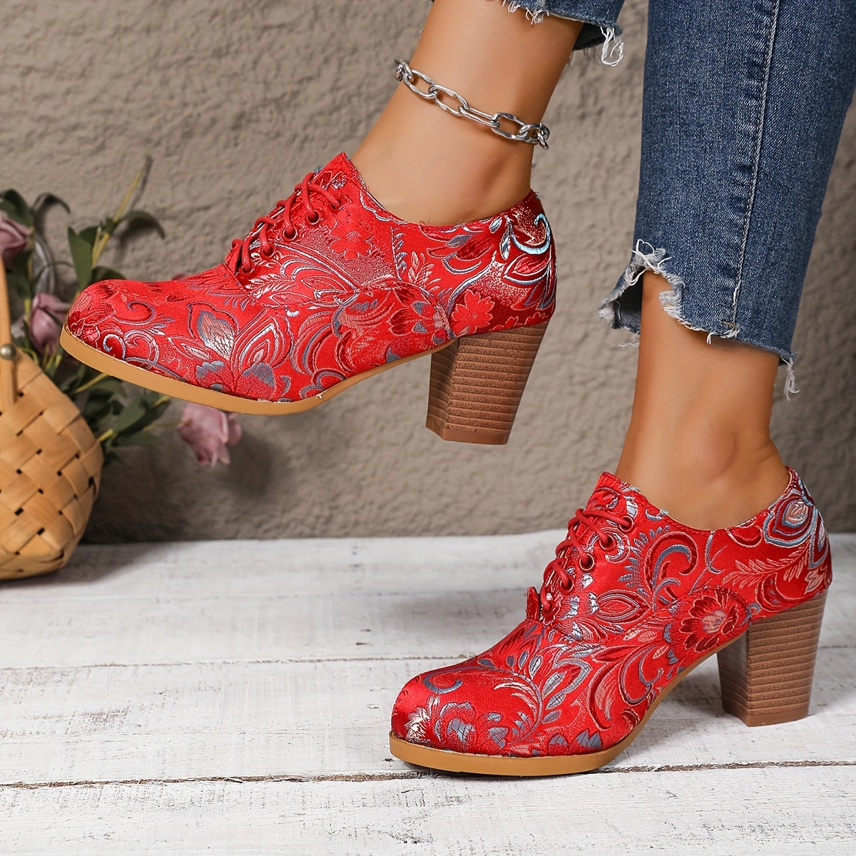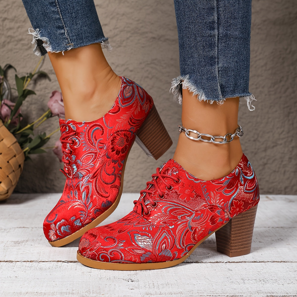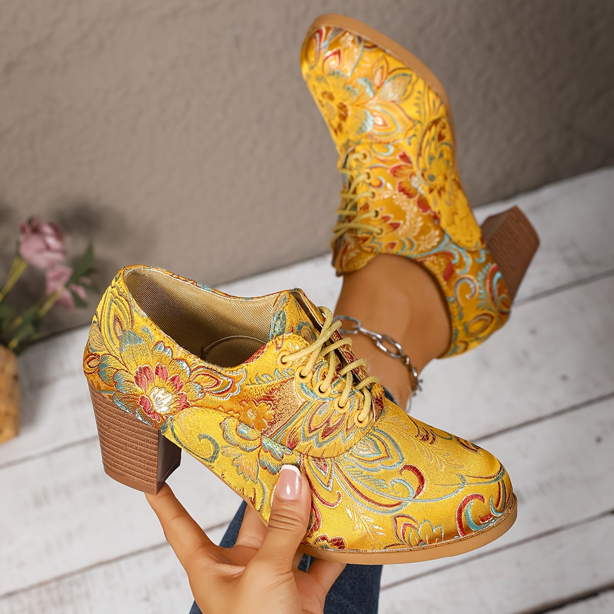 Ayollar uchun Bohemiy gul naqshli baland poshnali qattiq platformali poyabzal Qizil qora pushti sariq