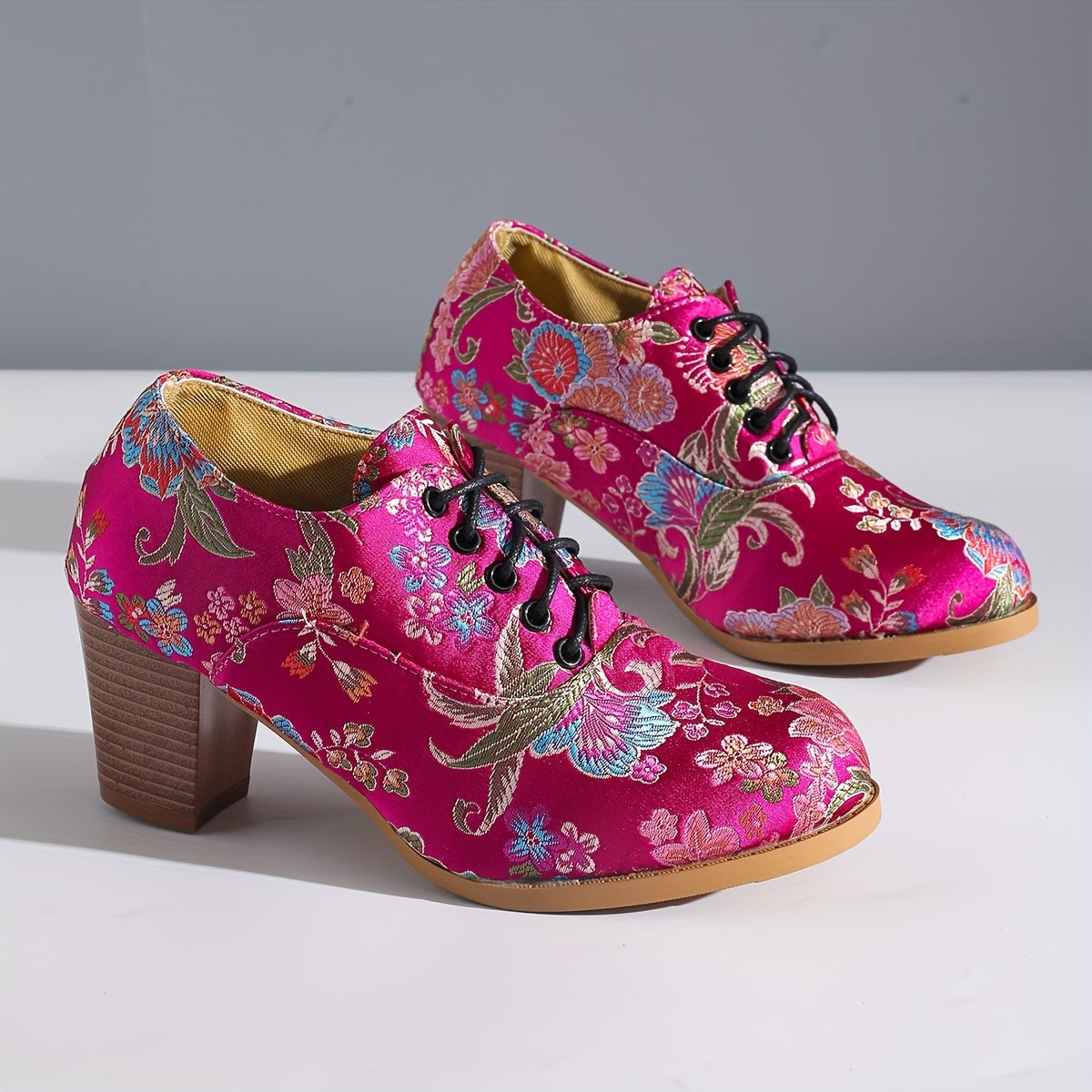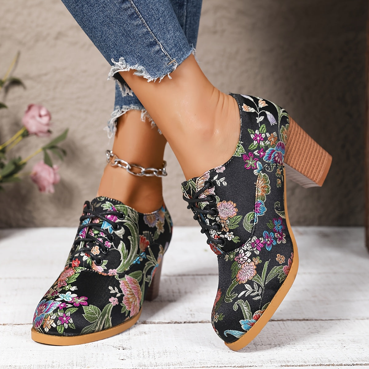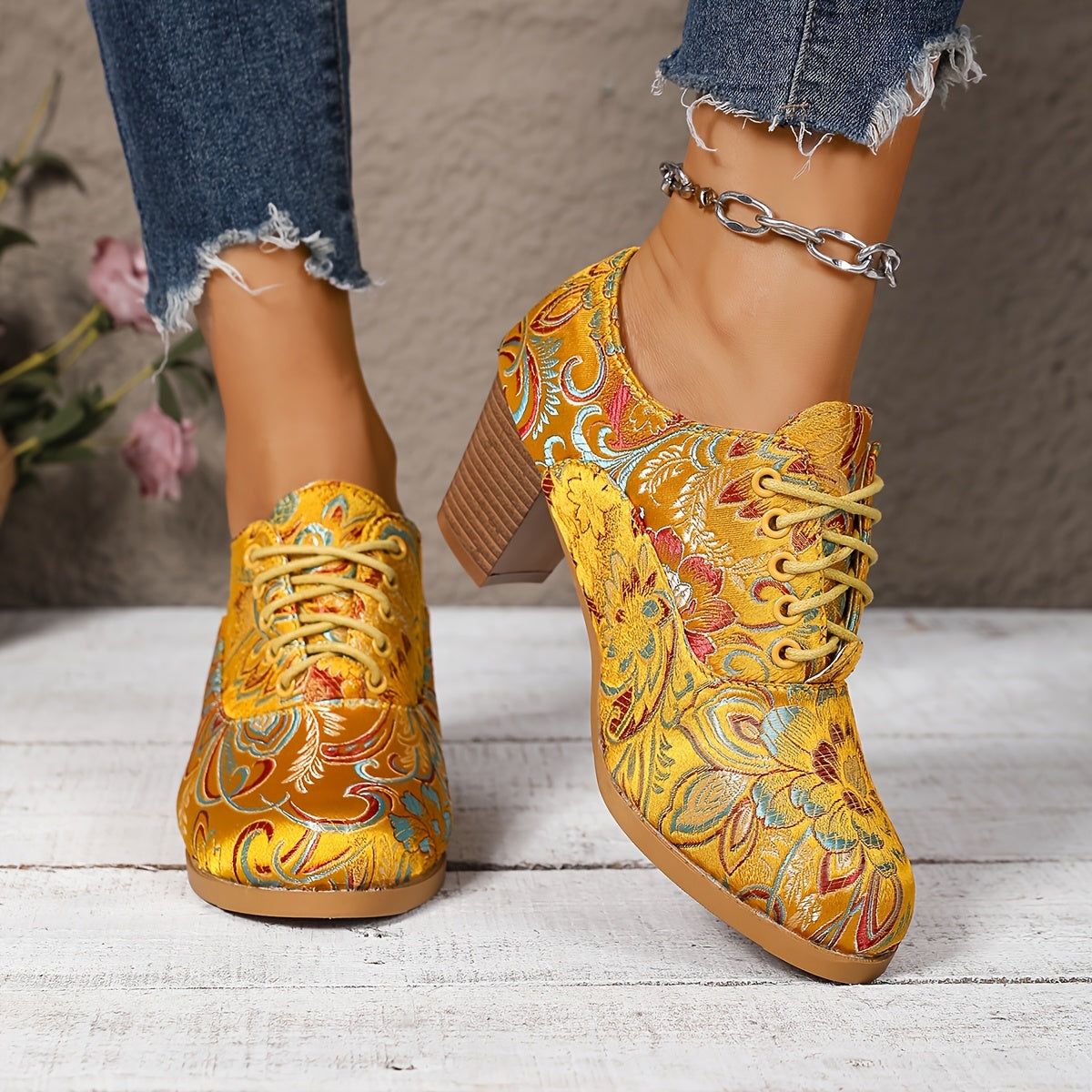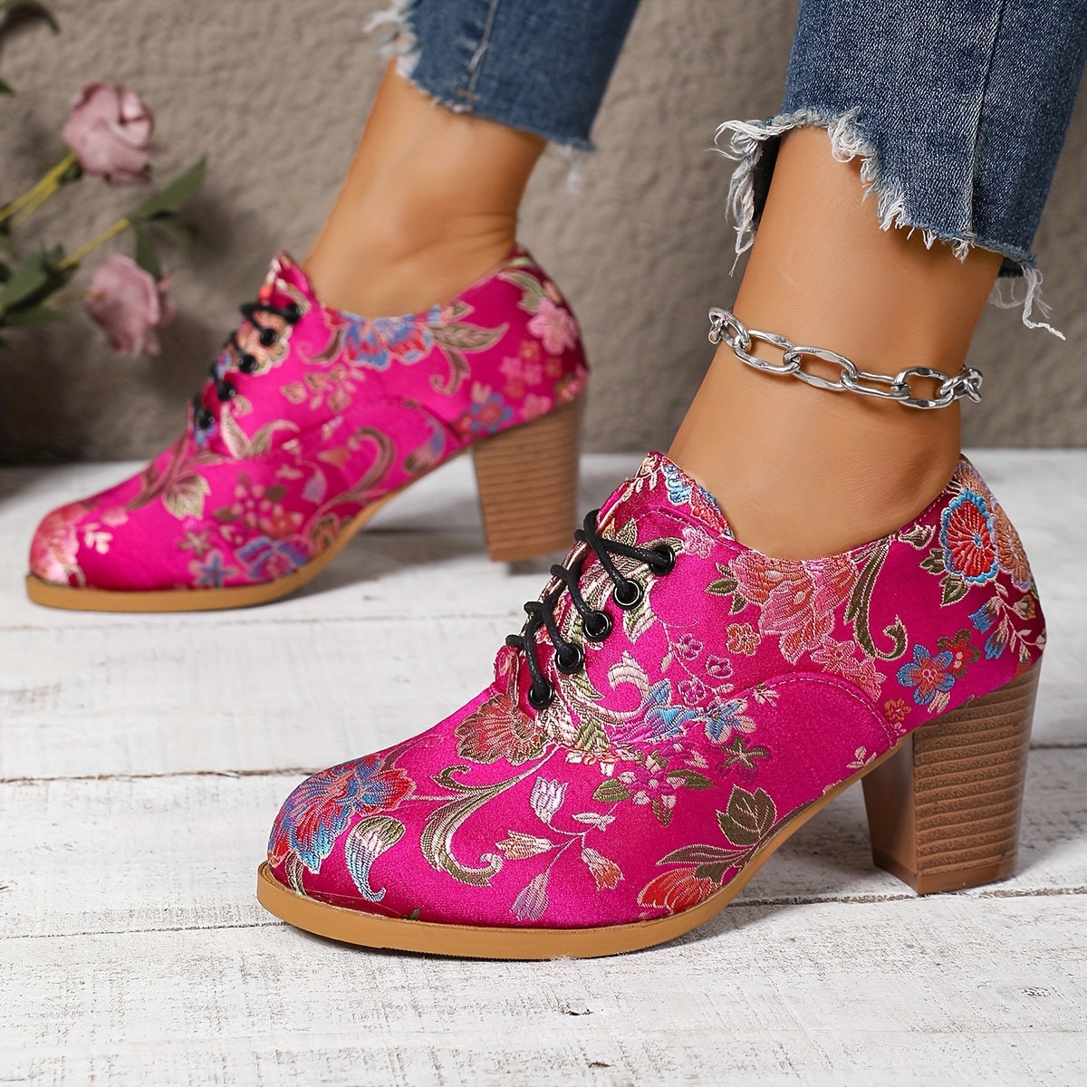 Ayollar uchun Bohemiy gul naqshli baland poshnali qattiq platformali poyabzal Qizil qora pushti sariq