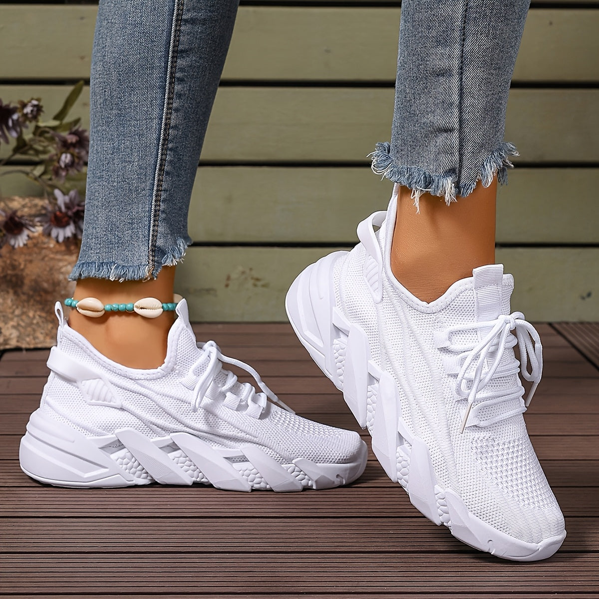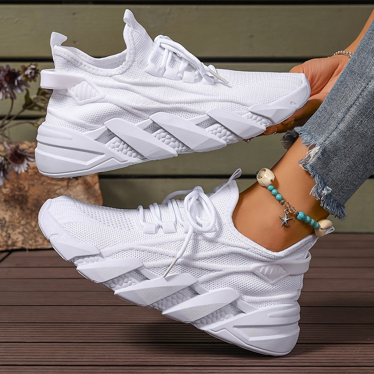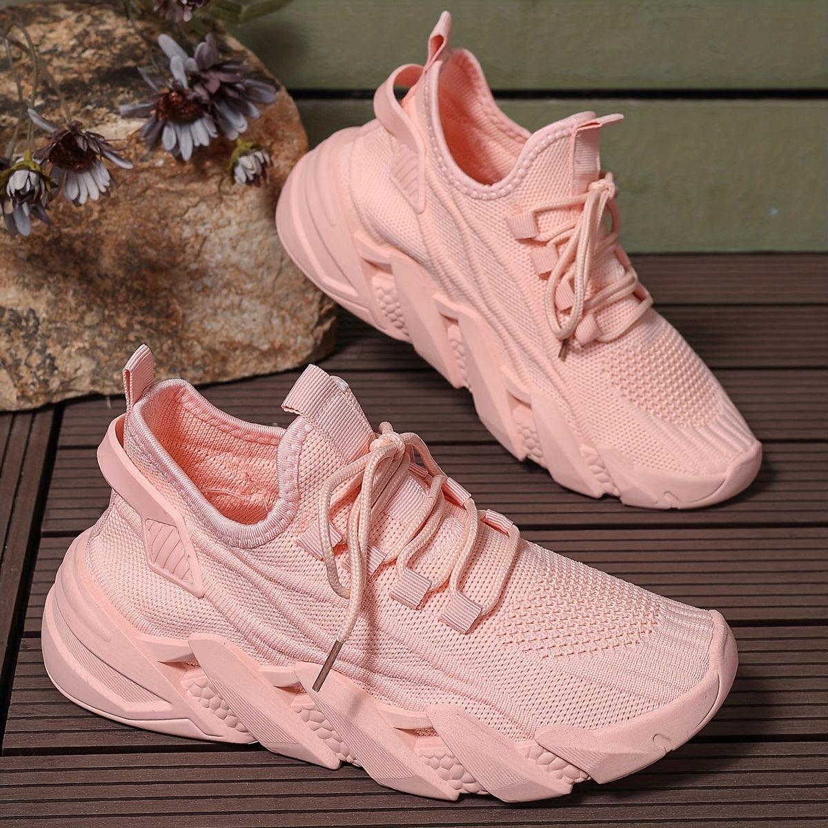Ayollar uchun nafas oladigan, engil, pushti rangli trikotaj sport poyafzallari, pastki qismi, kundalik yurish va yugurish uchun mos