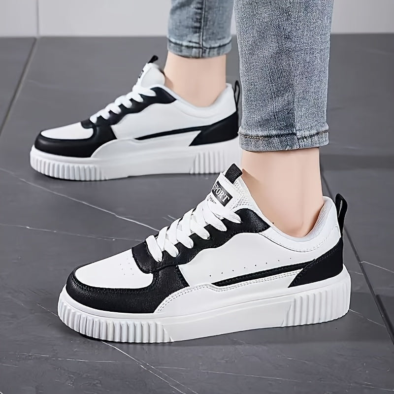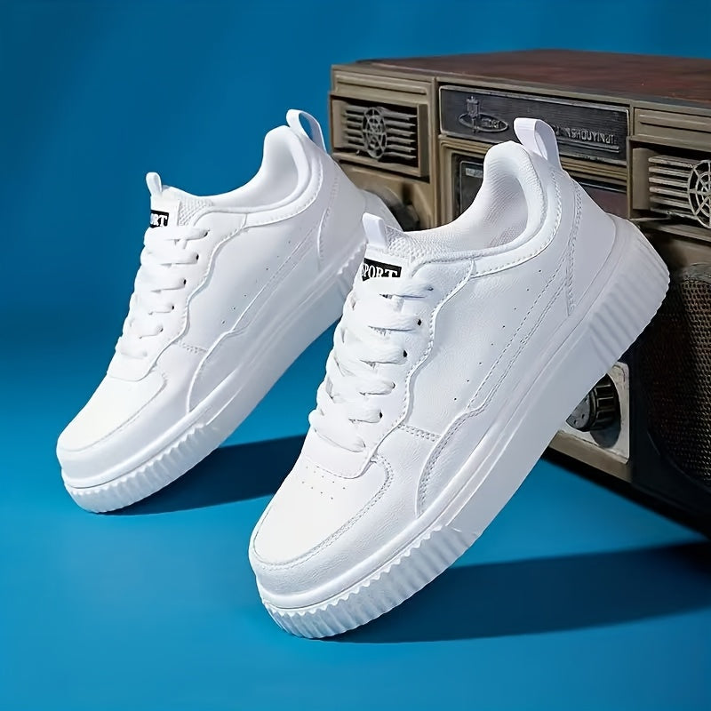 Ayollar uchun nafas oladigan pastki yuqori kundalik sport poyafzallari Oq PU tarmoq yostiqlangan poyabzal