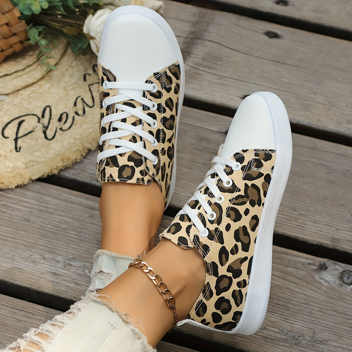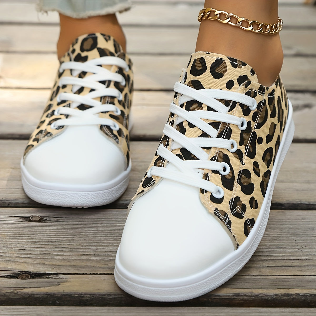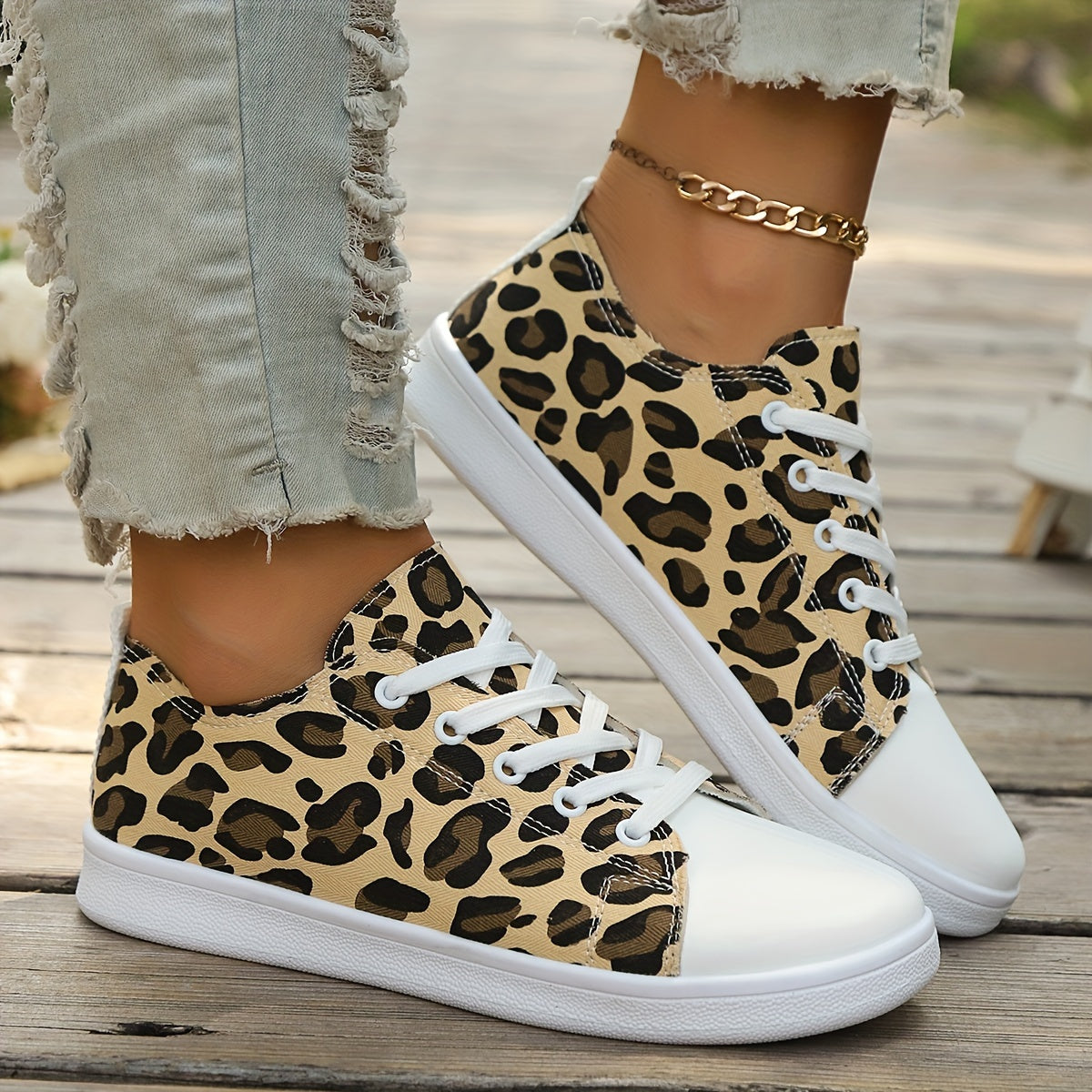 Ayollar uchun kanvas krossovkalar, leopard bosma pastki top quvnoq kundalik poyabzal
