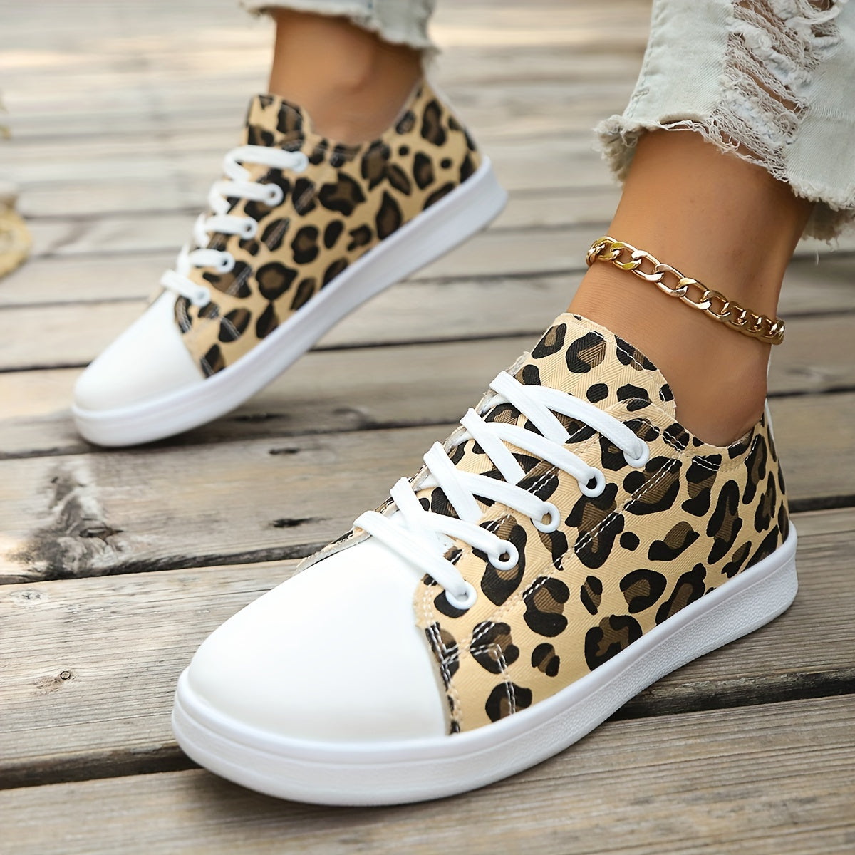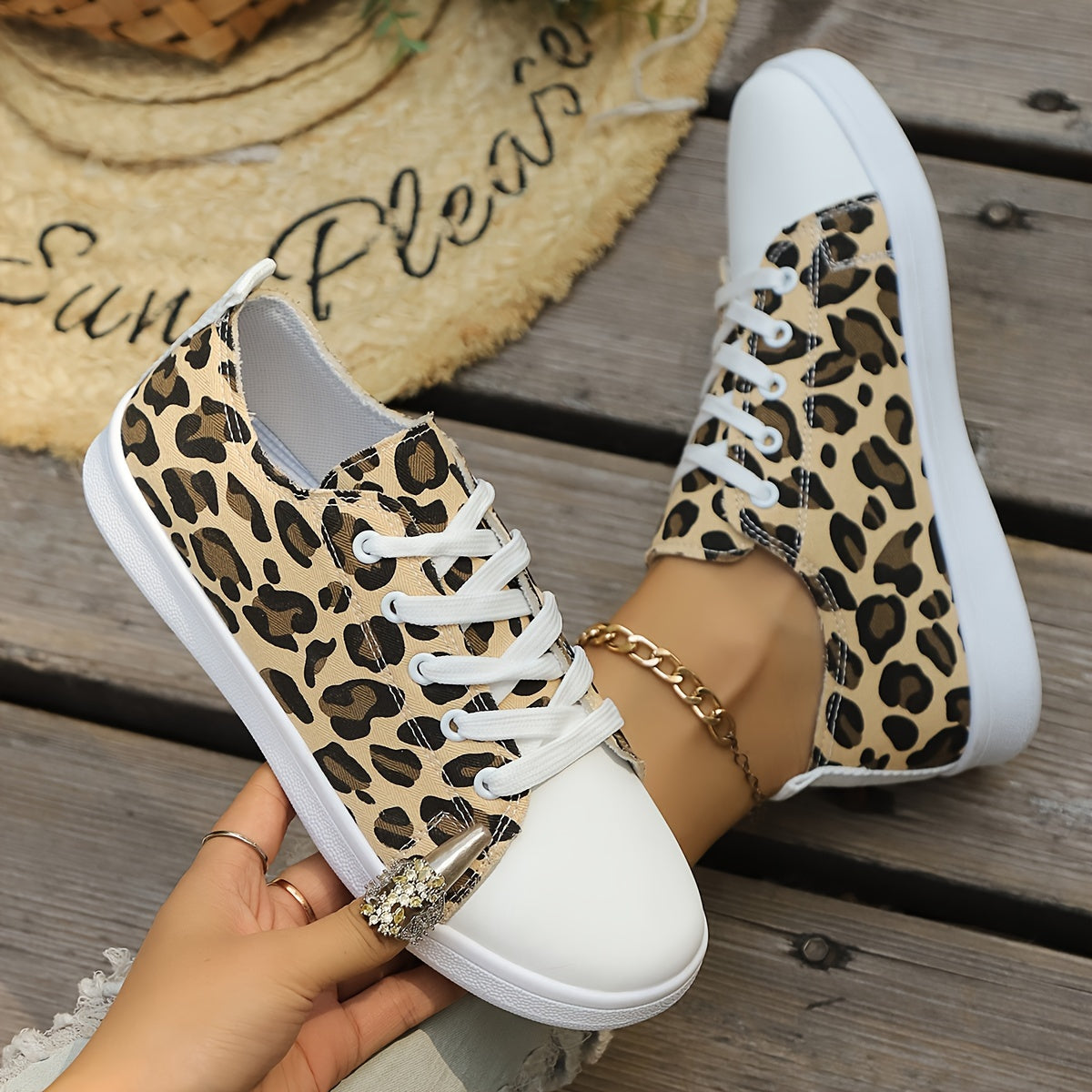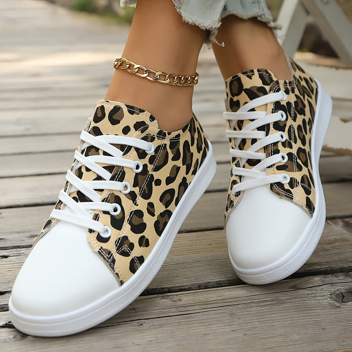 Ayollar uchun kanvas krossovkalar, leopard bosma pastki top quvnoq kundalik poyabzal