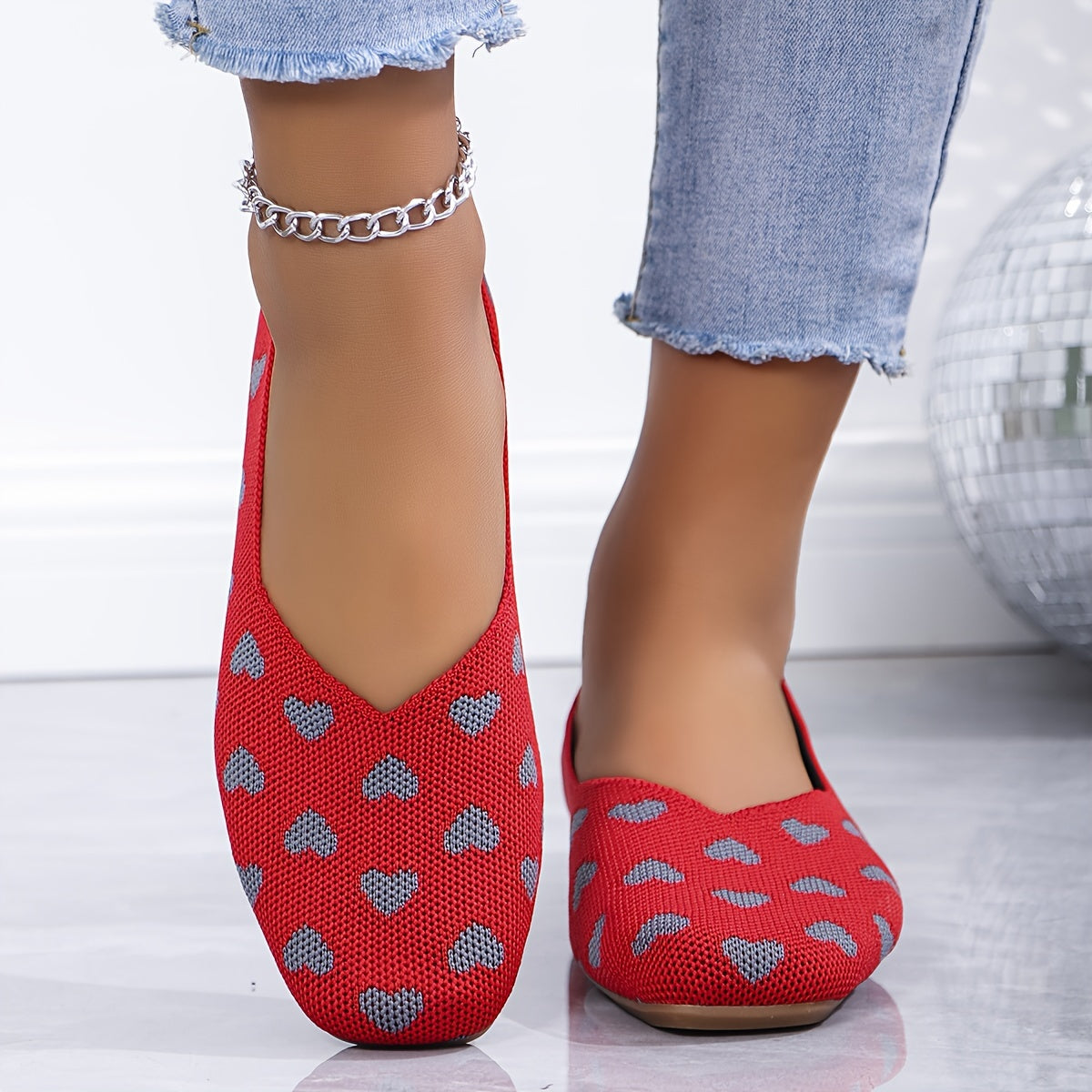 Women's Casual Ballet Flats with Heart Pattern and Mary-Jane Strap