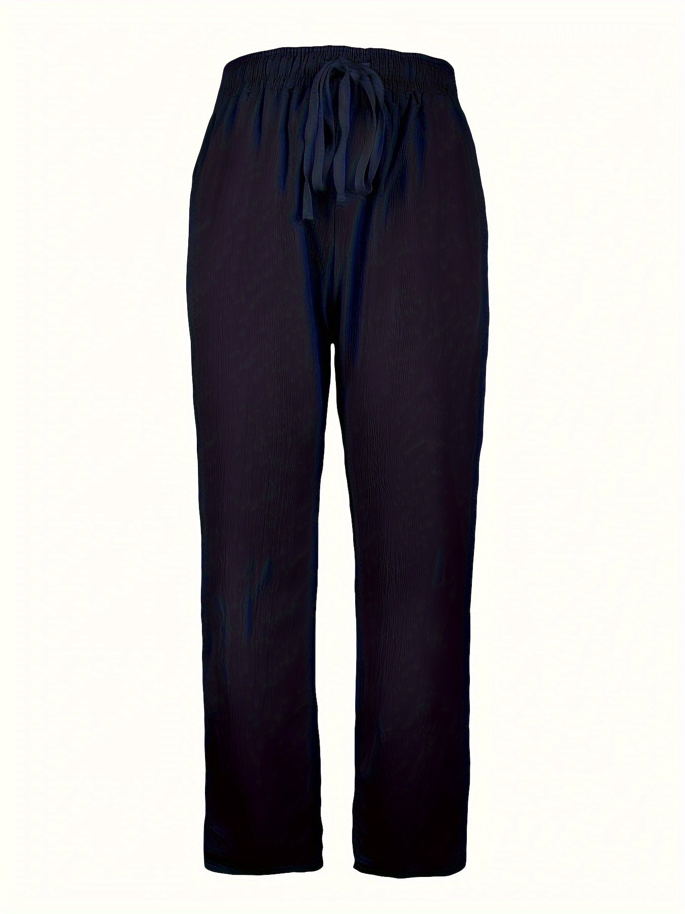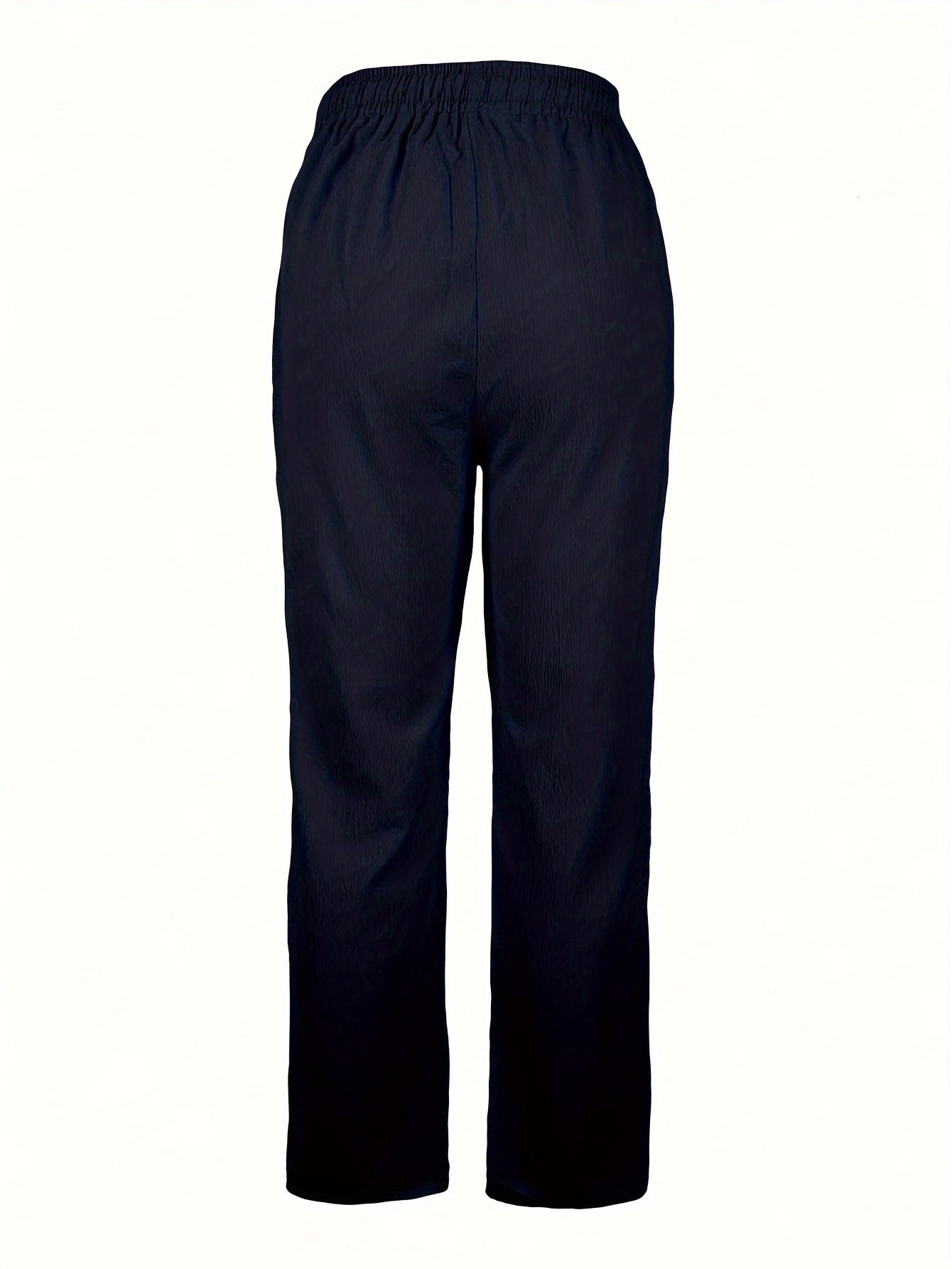 Ayollar uchun tasodifiy tortish belbog'i, elastik bel, cho'ntaklar va to'g'ri oyoq silueti - mashinada yuvish mumkin, polyesterdan tayyorlangan, zamonaviy.