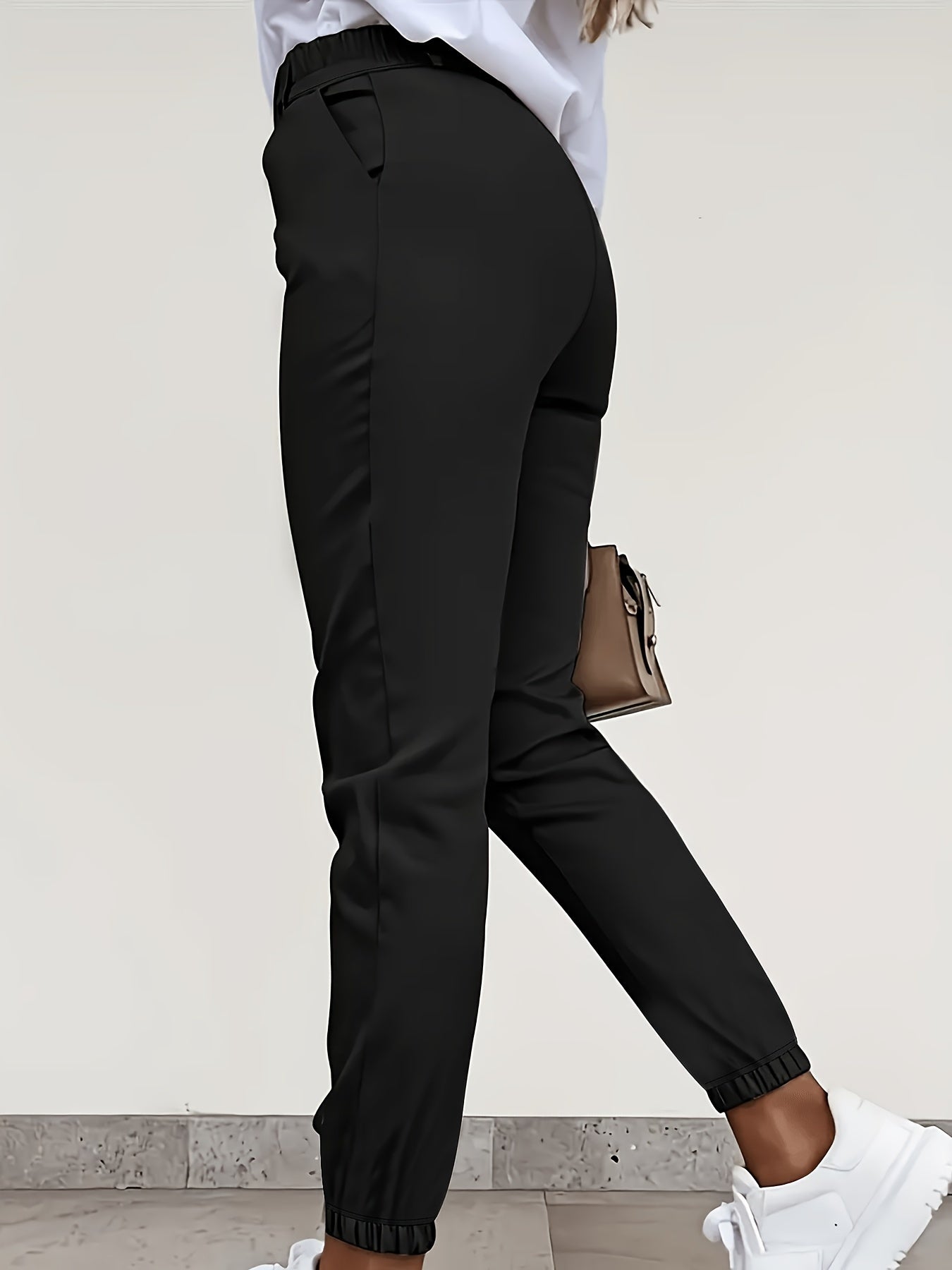 Ayollar uchun tasodifiy tor kesimli shimlar, yon cho'ntaklar bilan, 100% polyester to'qima, bir xil rang, fermuar tafsiloti, barcha mavsumlar uchun qulay - kattalar, ishga borish, uzun