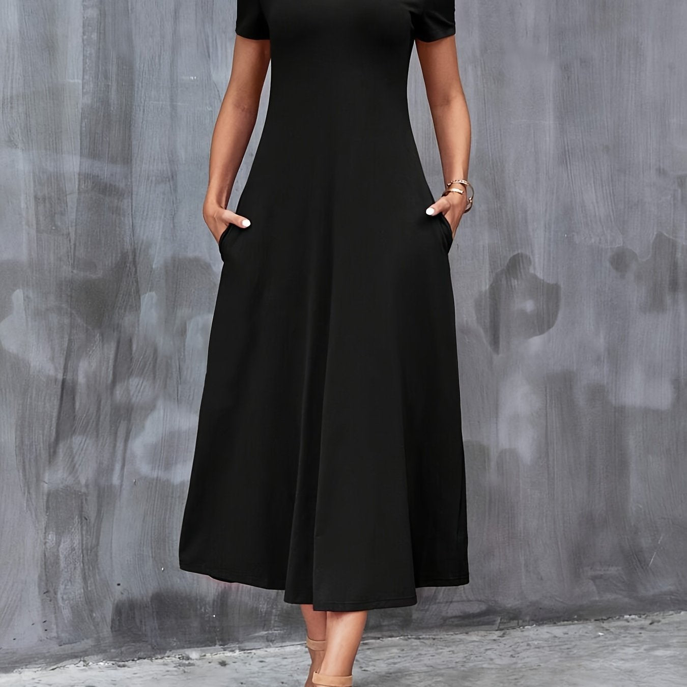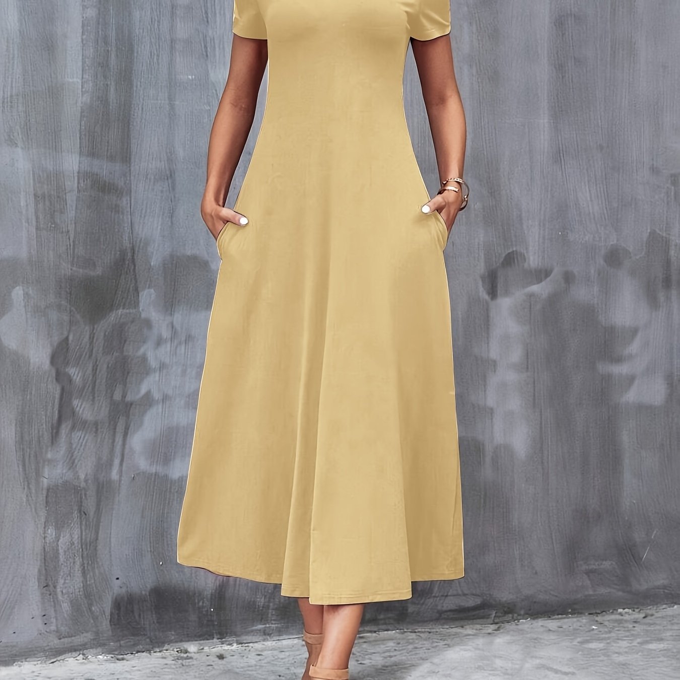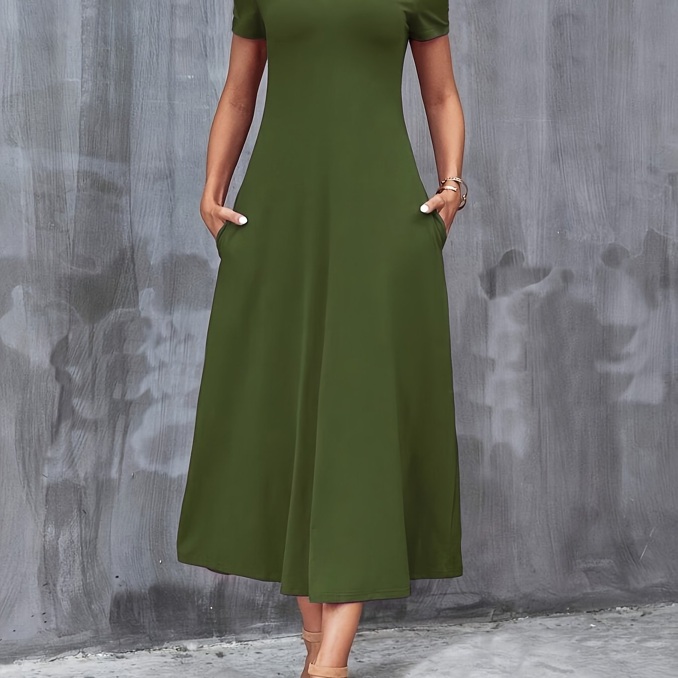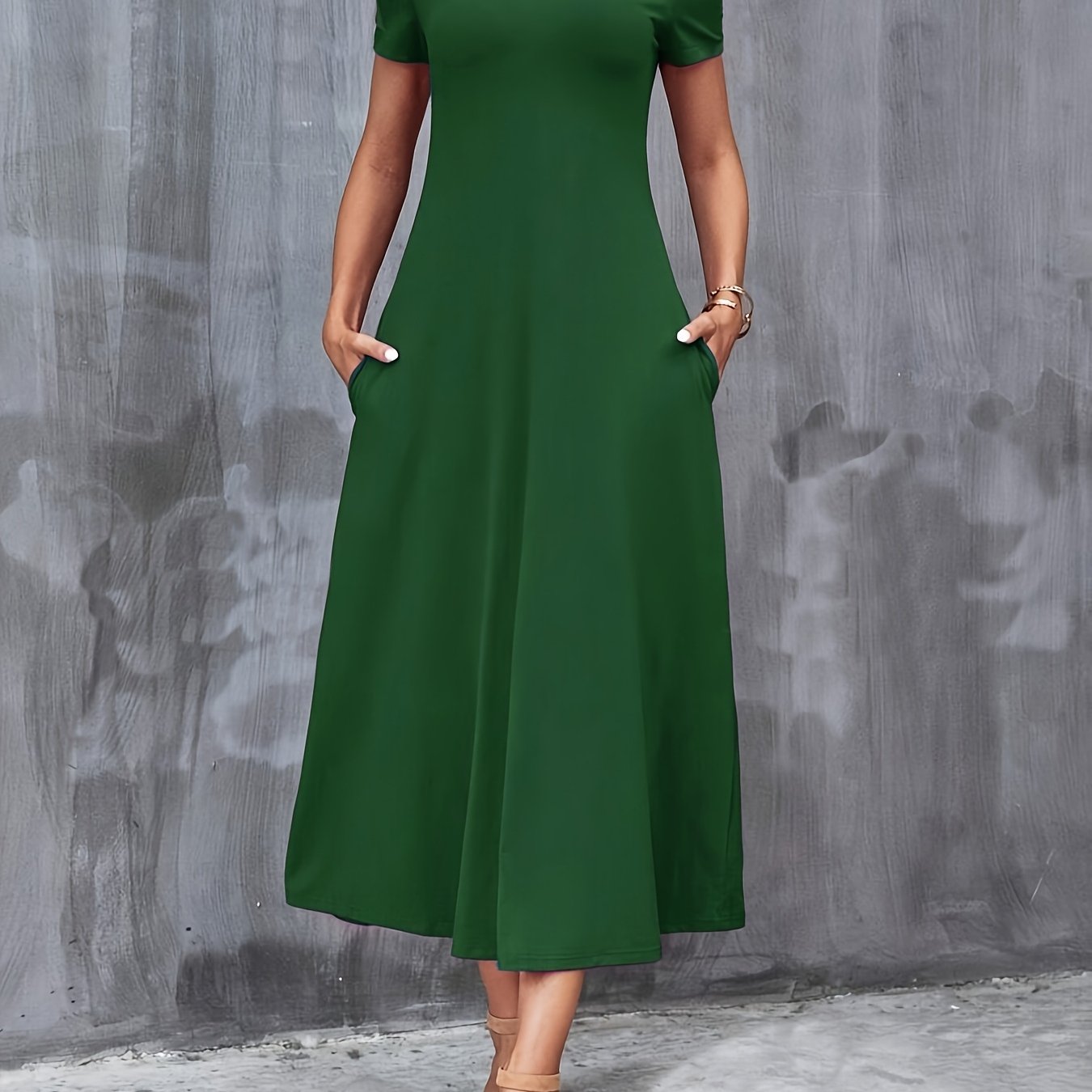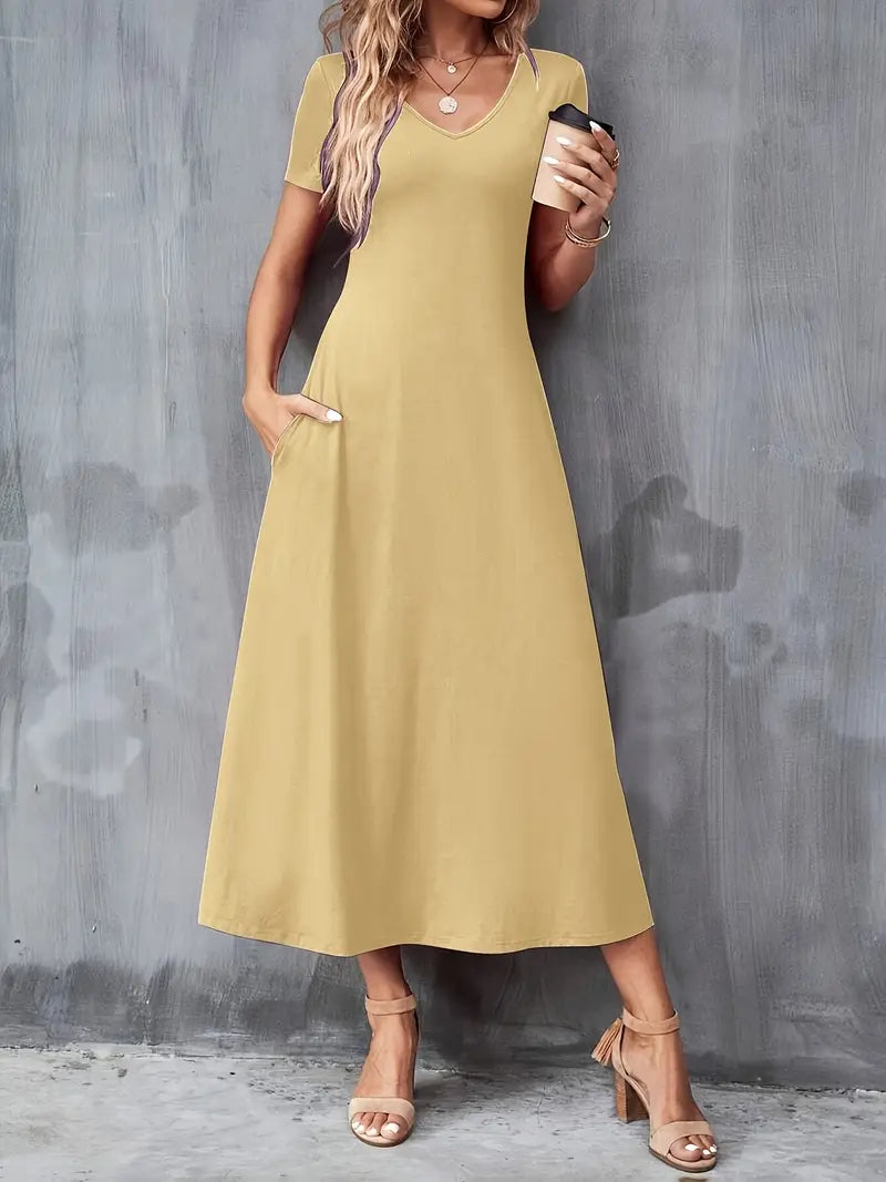 Ayollar uchun zamonaviy yashil V-shaklidagi A-line ko'ylak, cho'ntaklar bilan, tasodifiy polyester aralashmasi, mashinada yuvish mumkin, barcha fasllar uchun mukammal, porloq tuzilishga ega qulay moda.