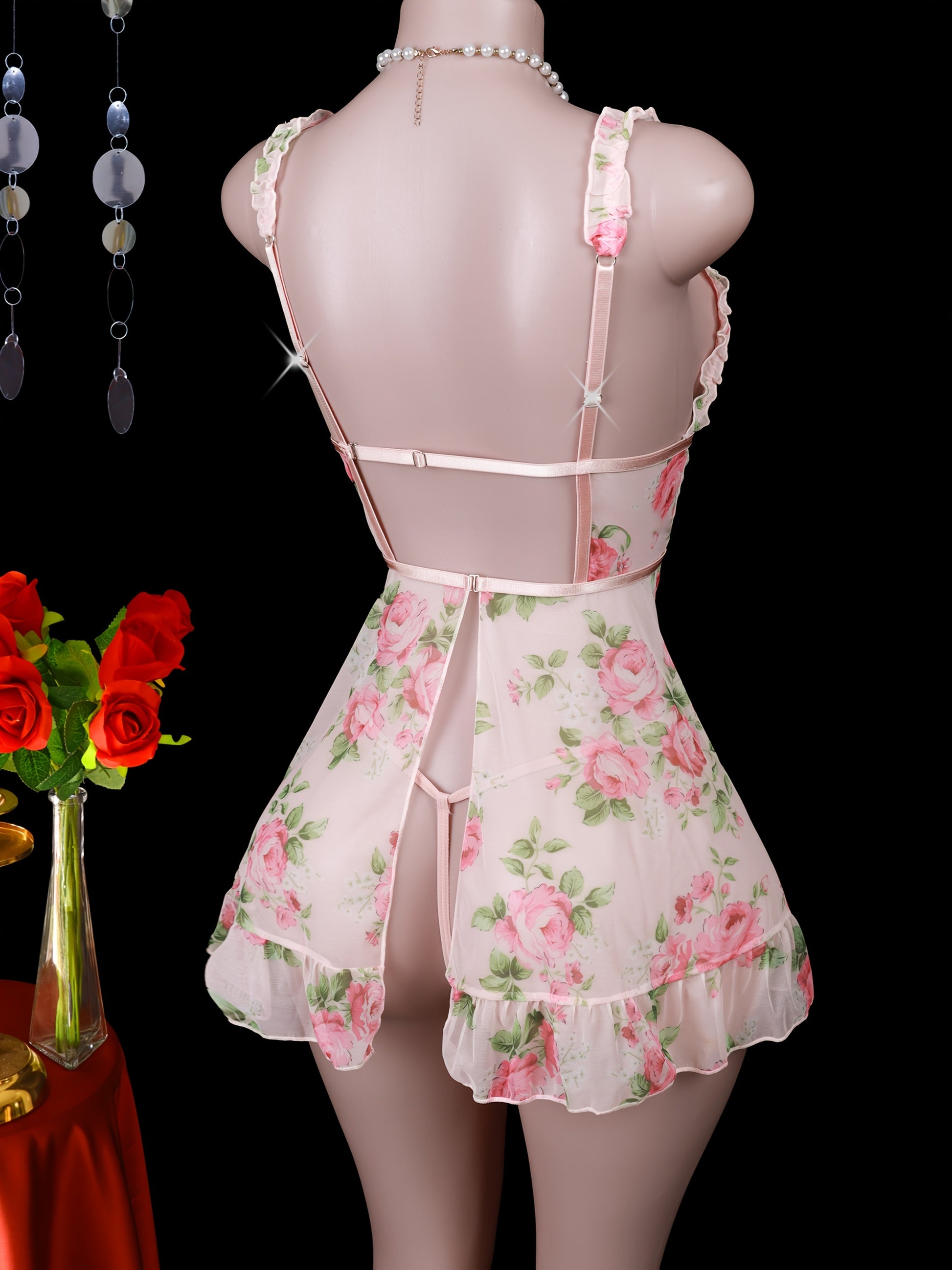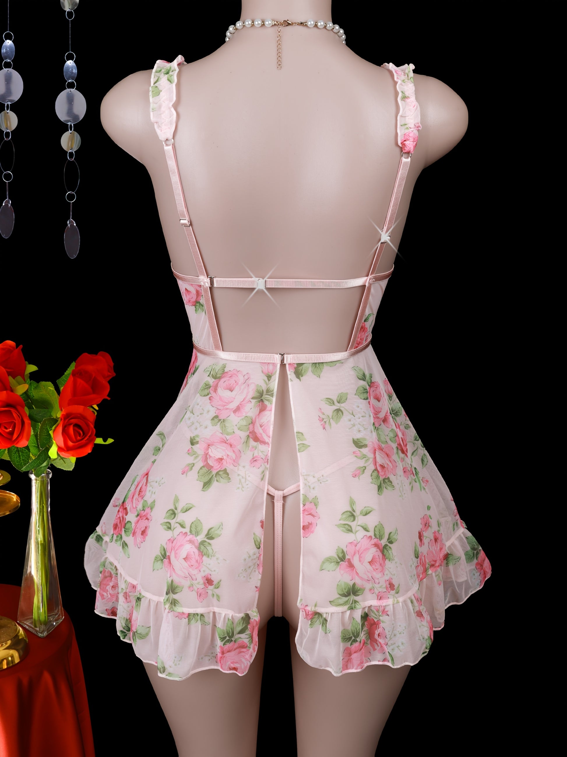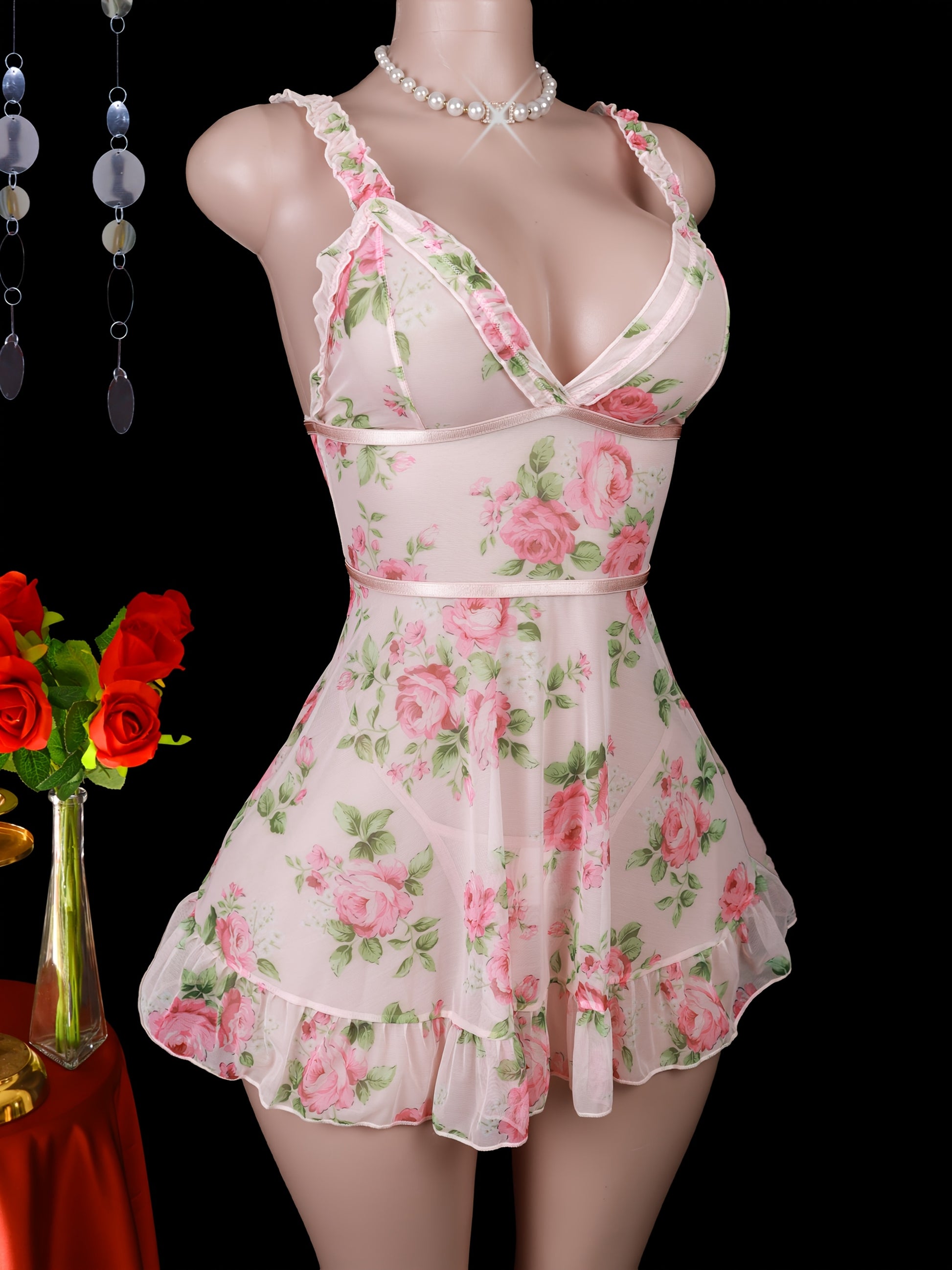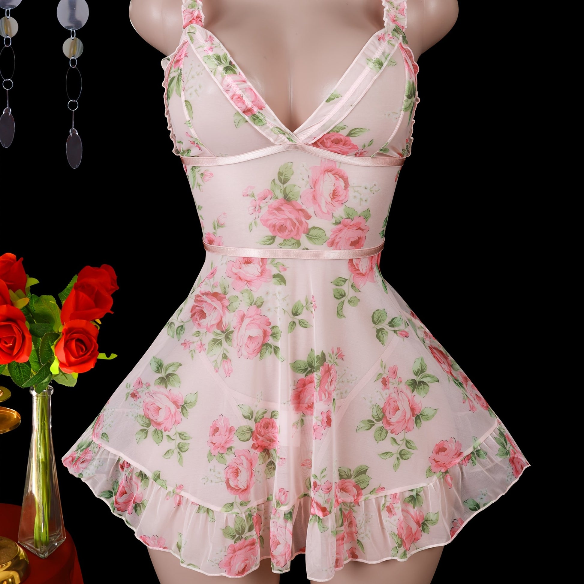ayollar uchun nafis uyqu kiyimlari to'plami, bosma va thong yubkali, Sevgililar kuni uchun