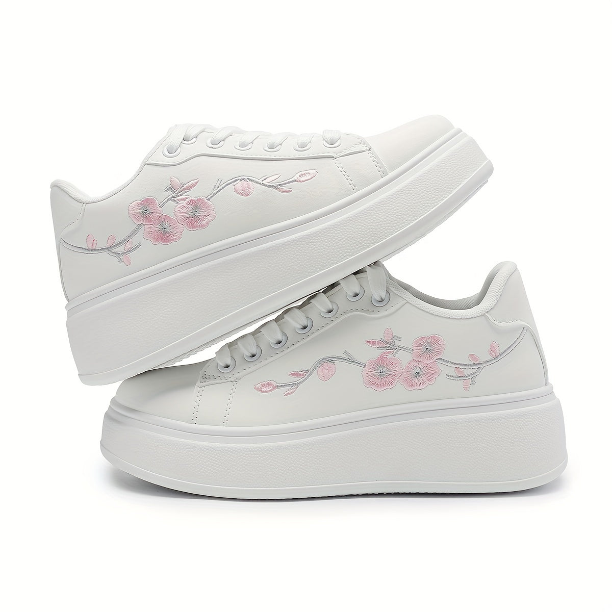 Ayollar uchun tikilgan kanvas sport oyoq kiyimlari, qalin tormozsiz tagliklar bilan