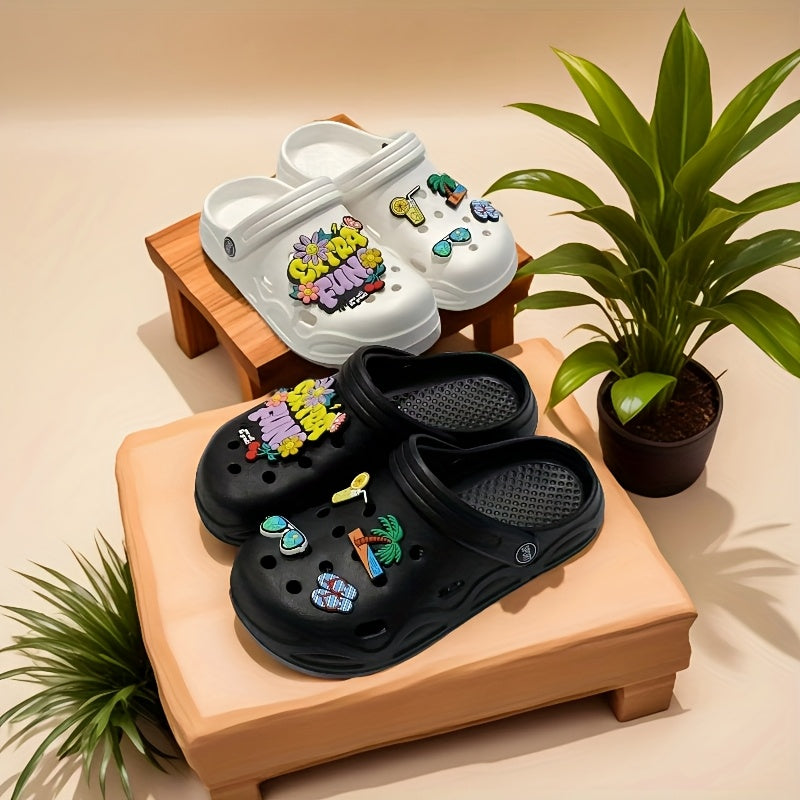Women’s EVA Beach Clogs Black Pink with Playful Accessory Charms