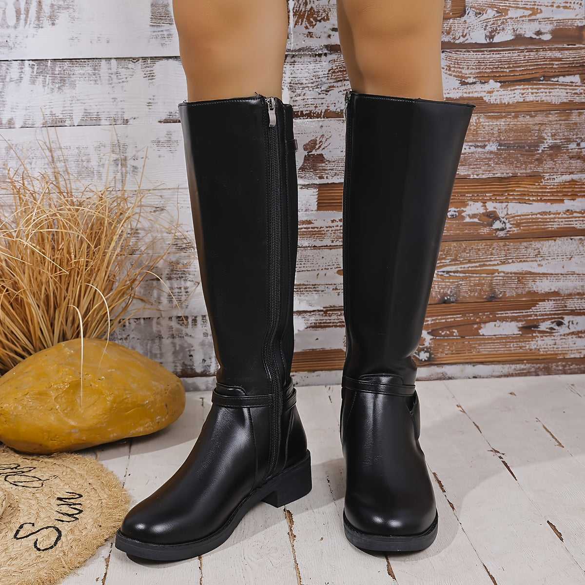 Ayollar uchun mato bilan yopiladigan, qalin poyali, tizzaga qadar bo‘lgan botlar, qora, barcha mavsumlar uchun kundalik kiyim