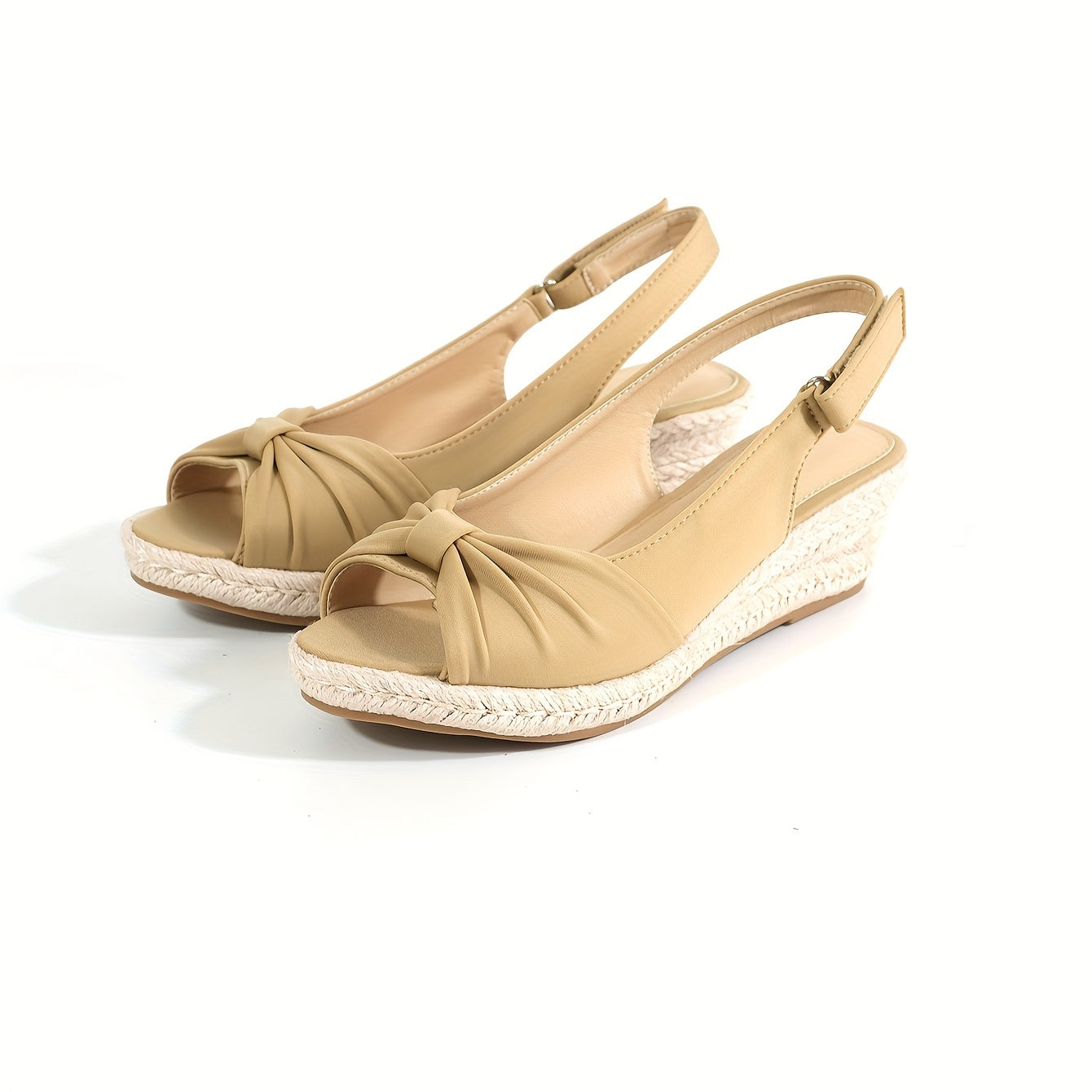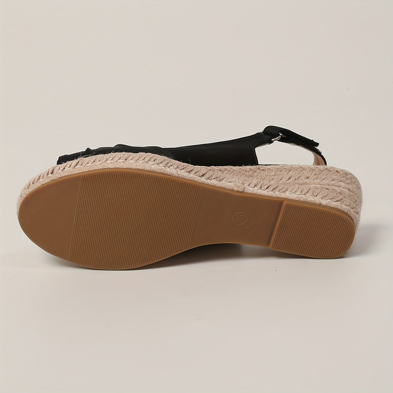 Ayollar uchun moda wedge sandallar, mato yuqori qismi, bog'ichli yopiq, ochiq barmoq dizayni, har mavsum uchun o'rta balandlikdagi kauchuk taglik.