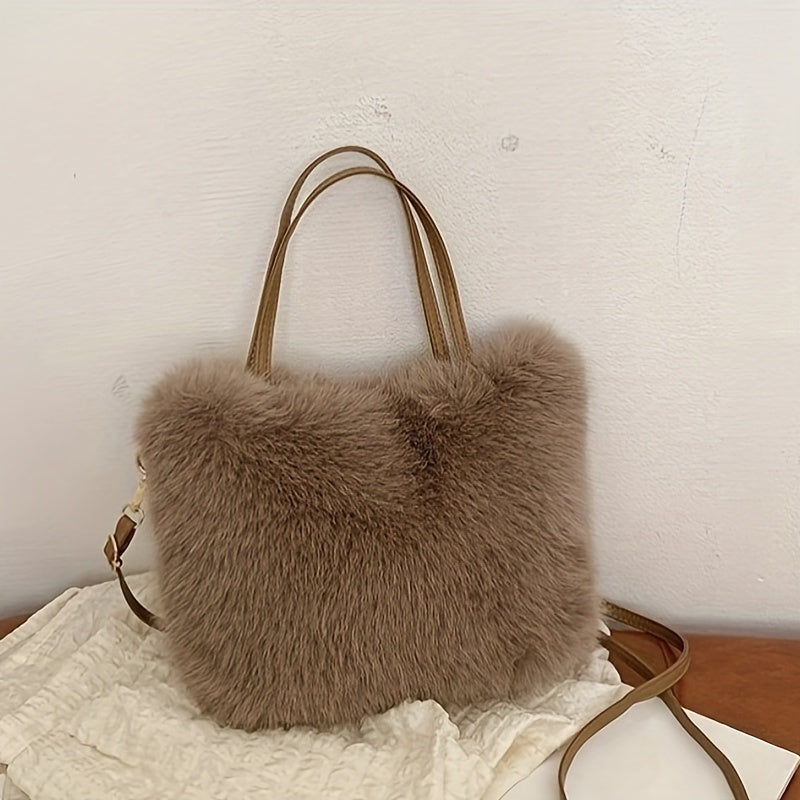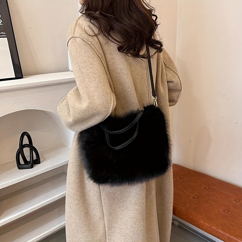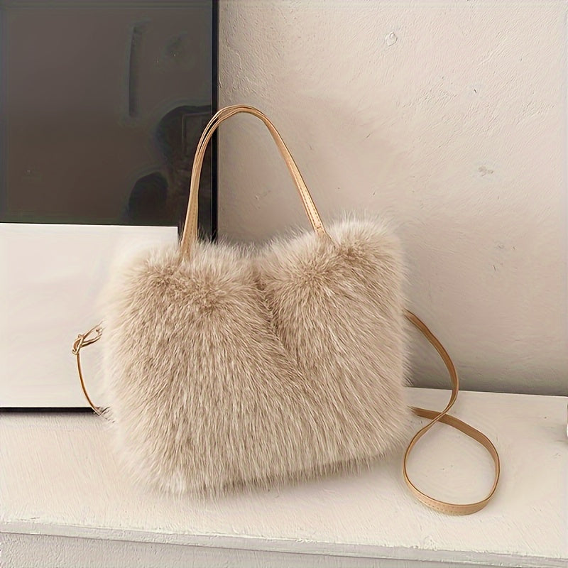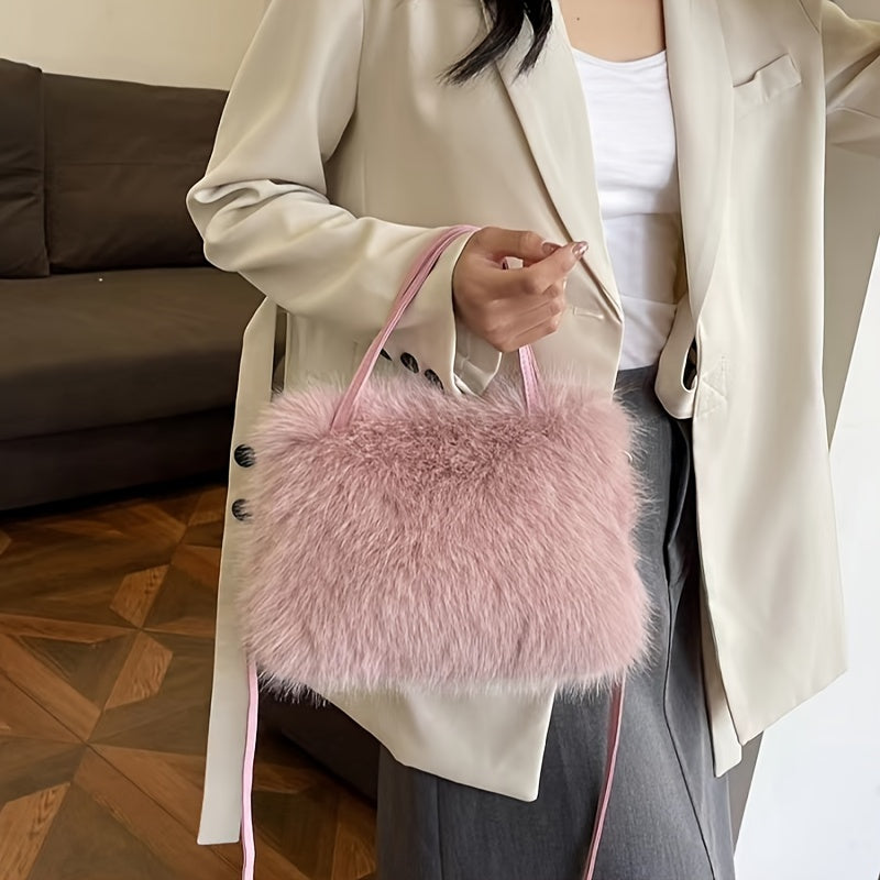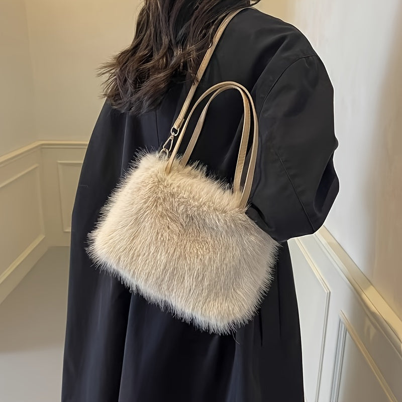 Ayollar uchun sun'iy mo'yna yelka sumkasi, zamonaviy va qulay, kuz/qish uchun ajoyib krossbody sumkasi, pushti, qahva, bej va qora ranglarda mavjud, osonlik bilan egiladigan va hech qanday aksessuarlarni o'z ichiga olmaydi.