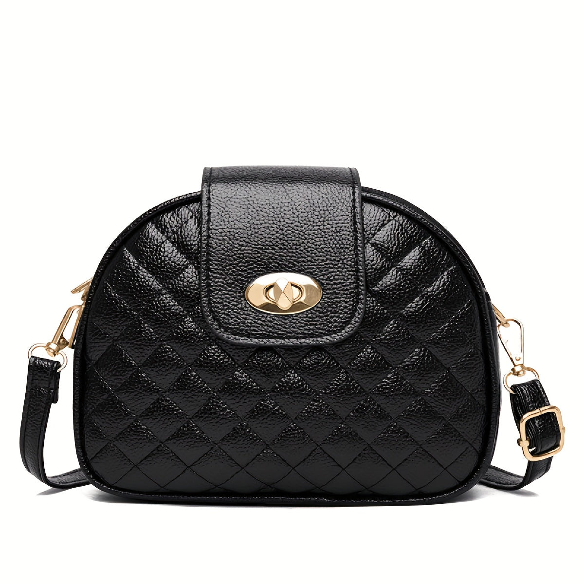 Ayollar uchun sun'iy charm krossbody sumka, argyle tikuv dizayni, burilish qulfi, uchta bo'lim, polyester astar va har qanday holat uchun sozlanadigan kamar.