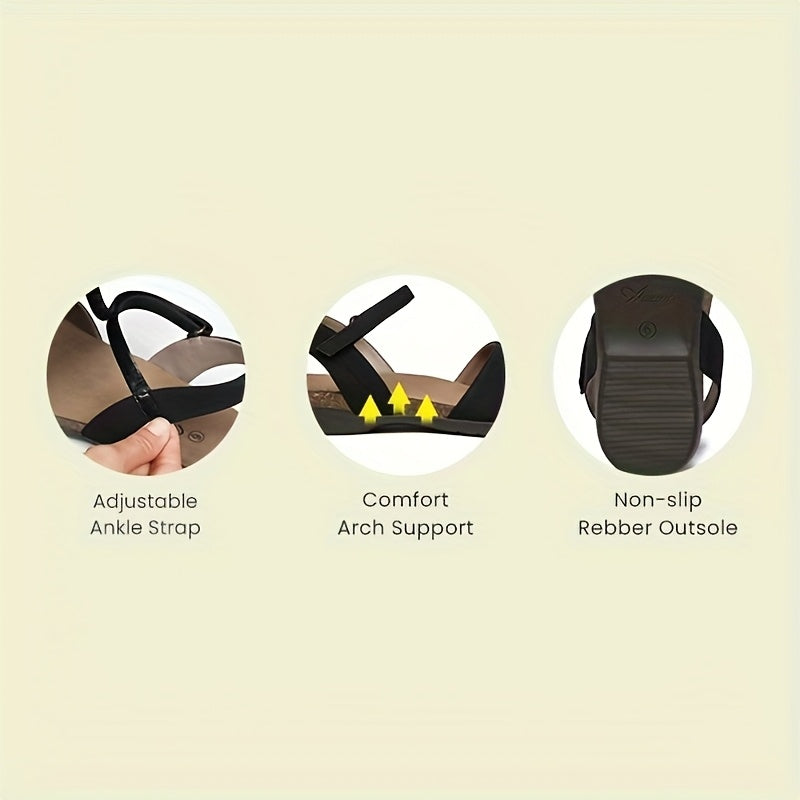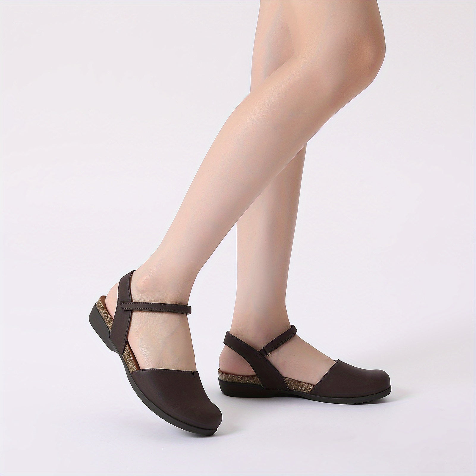 Women's Flat Sandals Adjustable Buckle Strap Summer Casual Brown