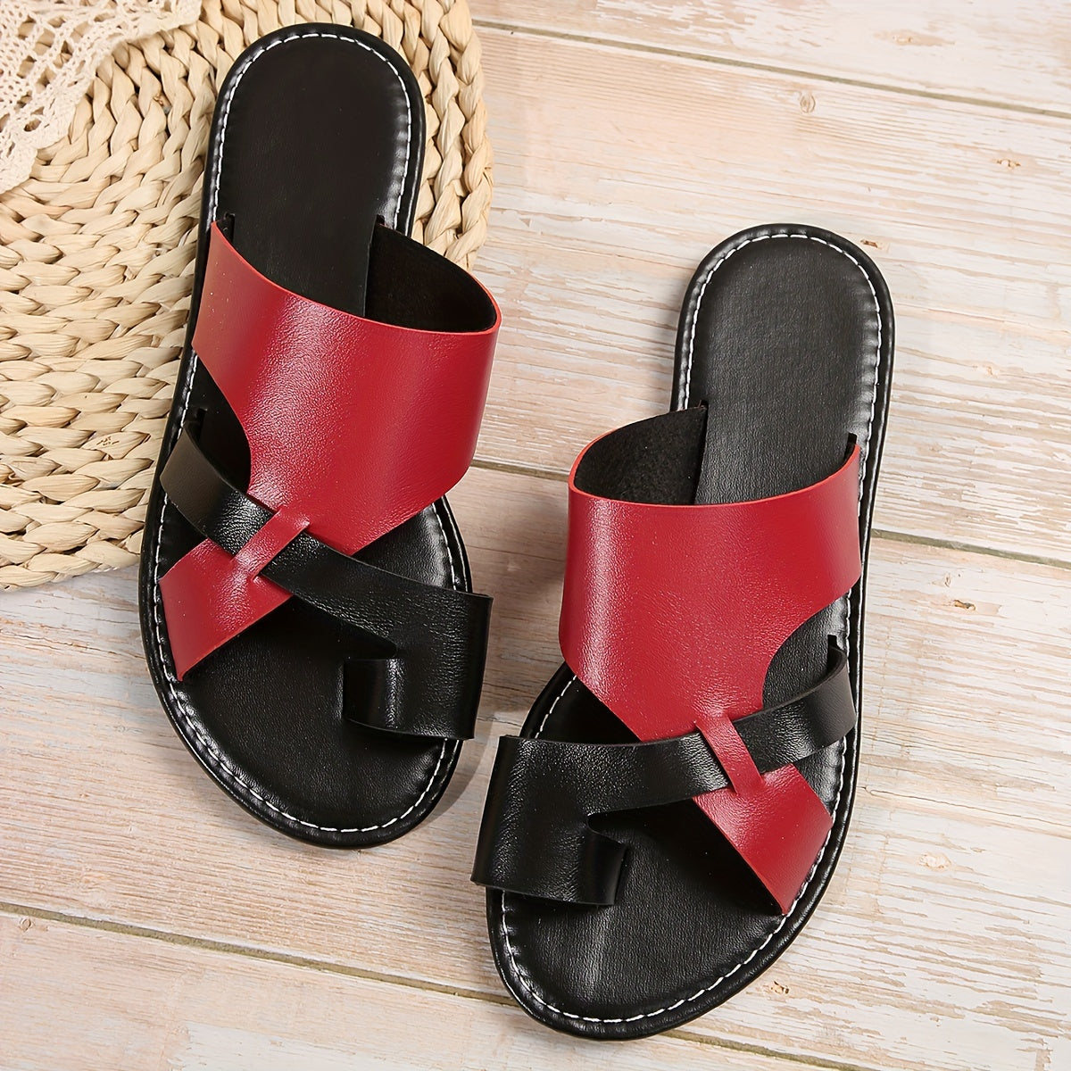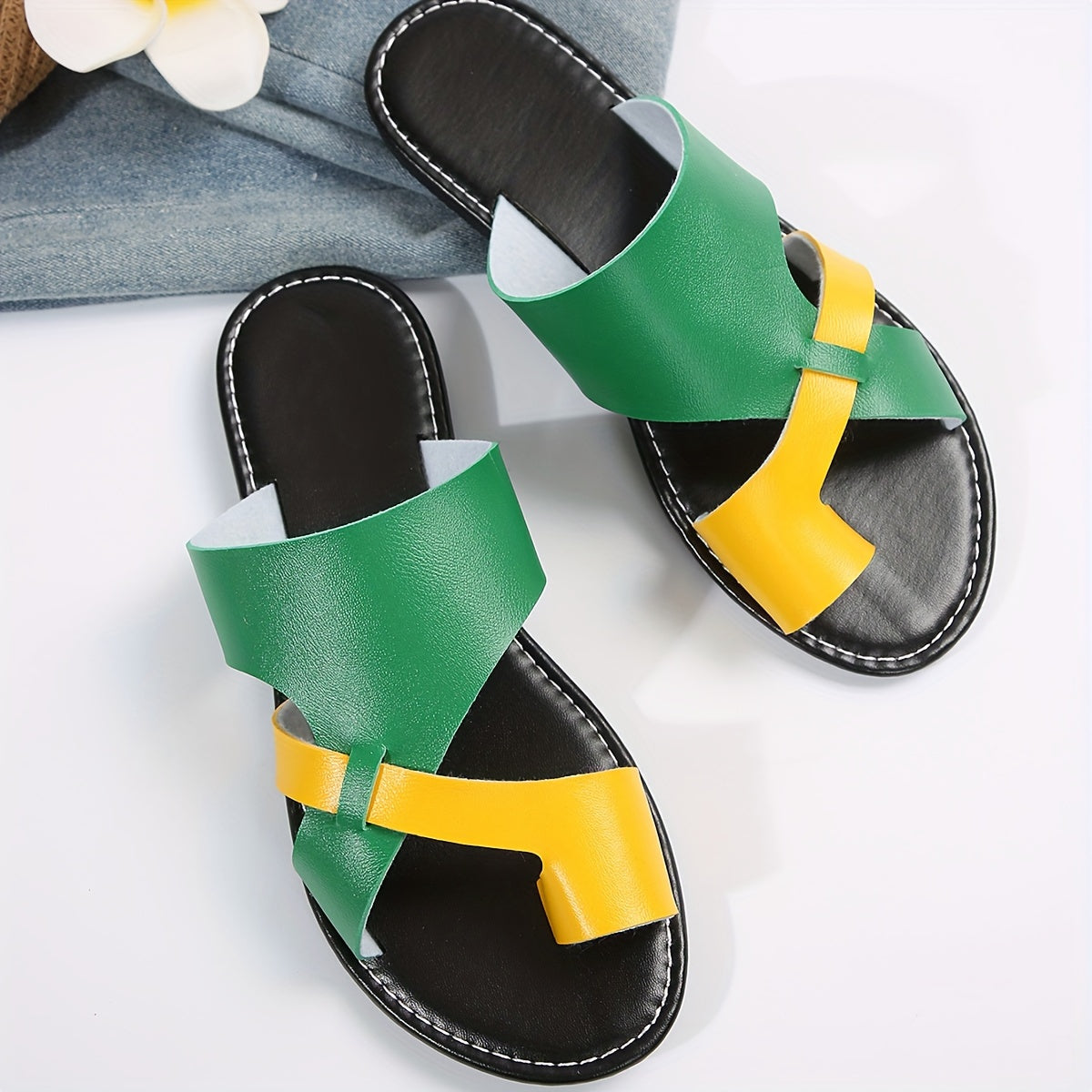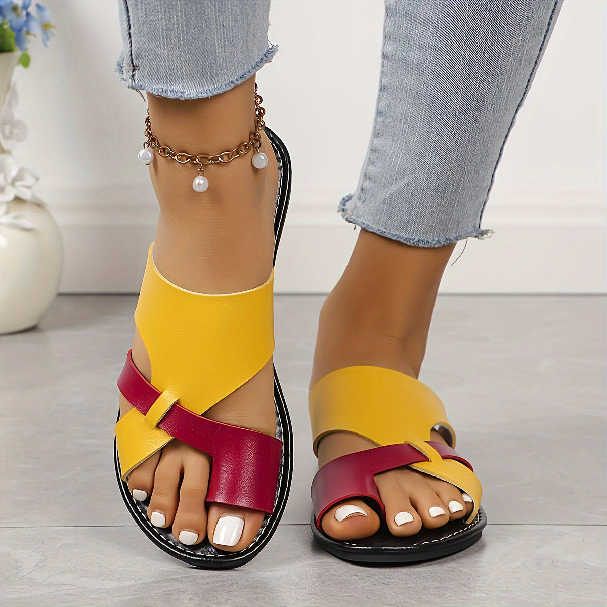 Ayollar uchun tekis slaydlar, barmoqlar uchun halqali, kundalik yozgi plyaj poyafzali