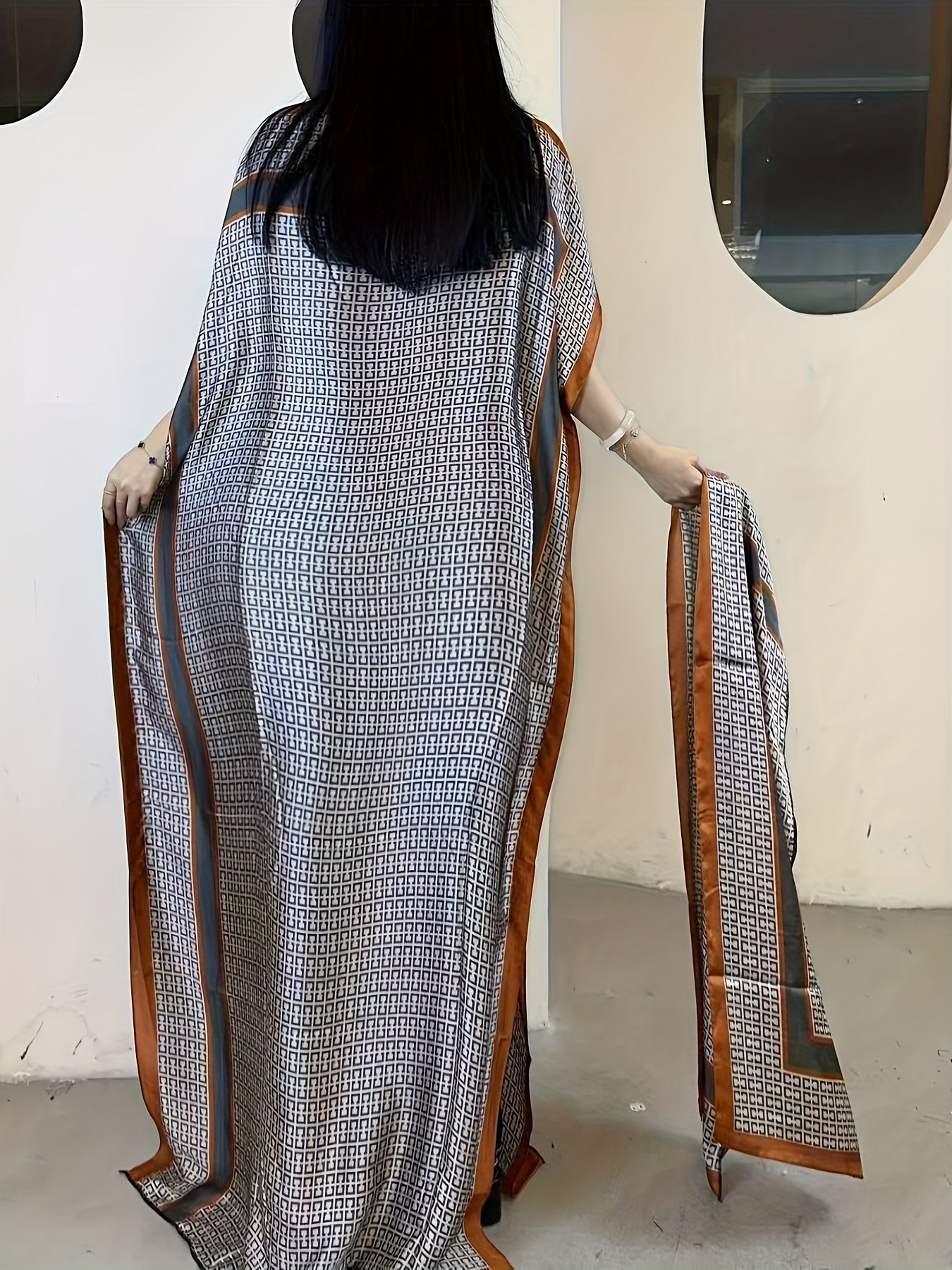 Ayol uchun gul bosma boat neck abaya batwing qo'lli maxi kiyi