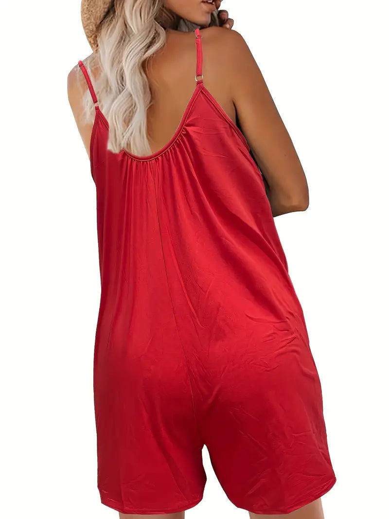 Women's Green Sleeveless Romper with Pockets for Summer Vacation