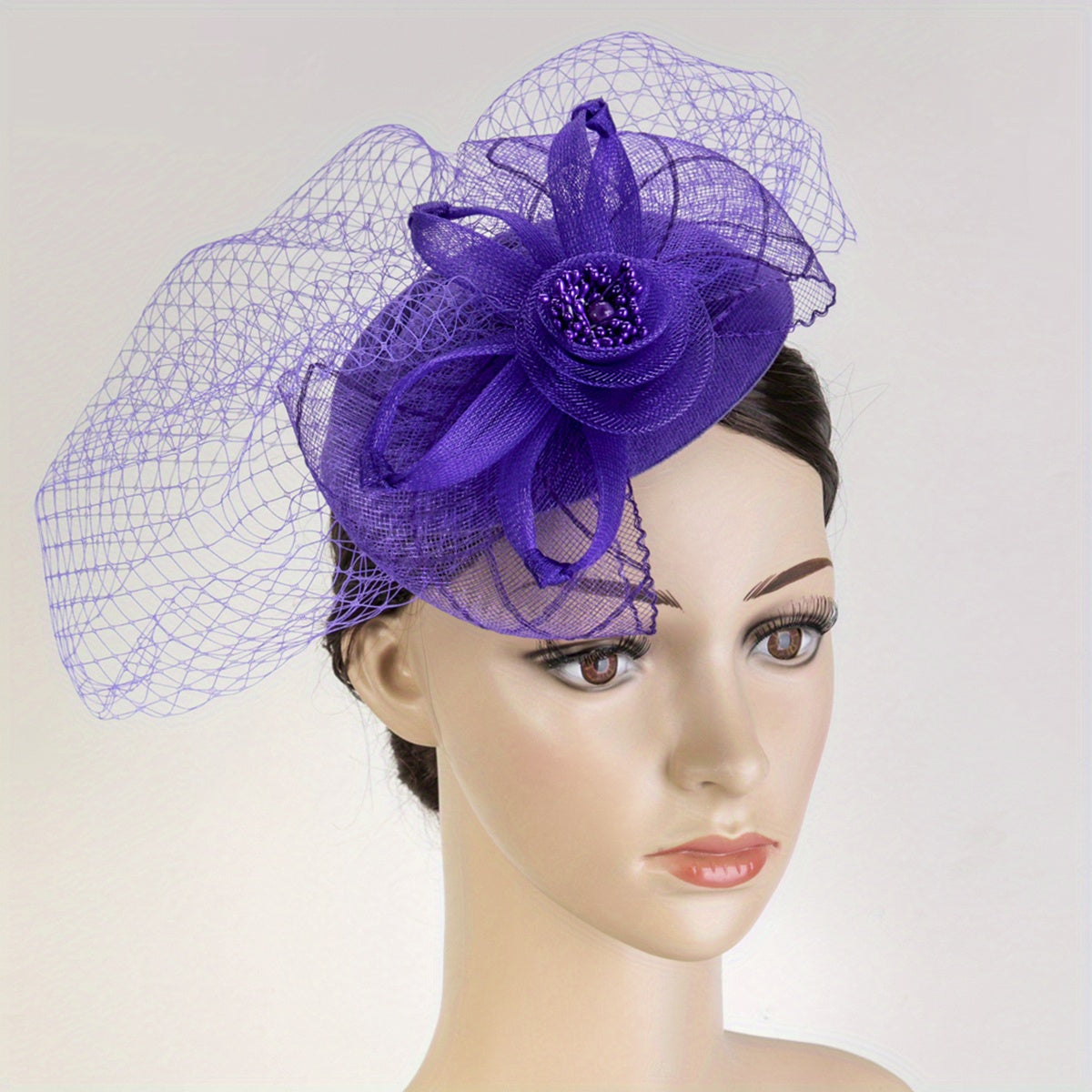 Ayollar uchun soch aksessuarlar to'plami, to'y partiyalari, jokey klubi tadbirlari, to'ylar, derby shlyapalar va cherkov shlyapalari uchun mesh veyl va kliplar bilan