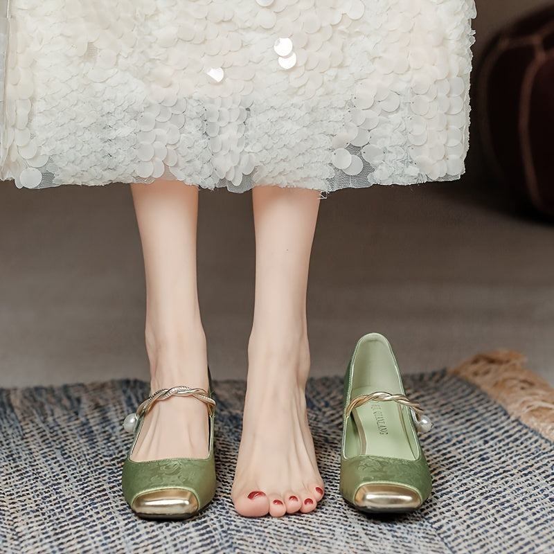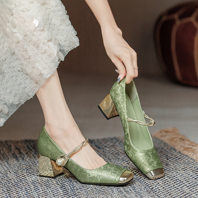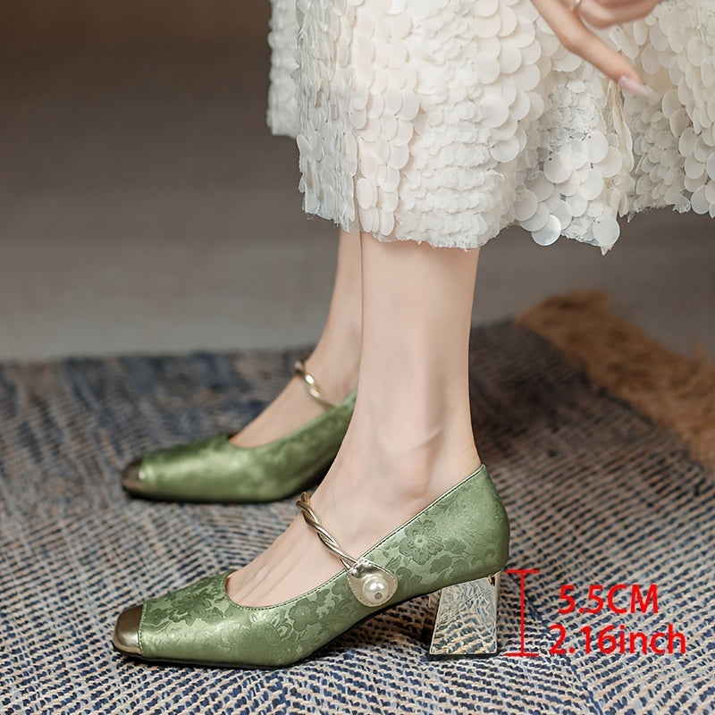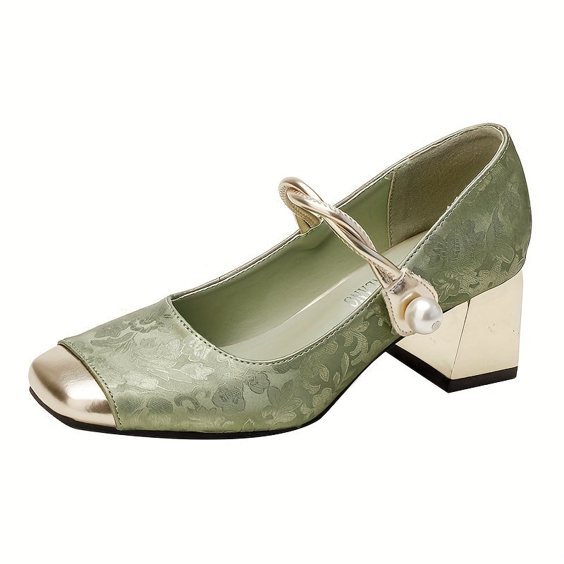 An'anaviy Xitoy uslubidagi qalin tovonli va past og'ziga ega ayollar uchun yuqori poshnali poyabzal