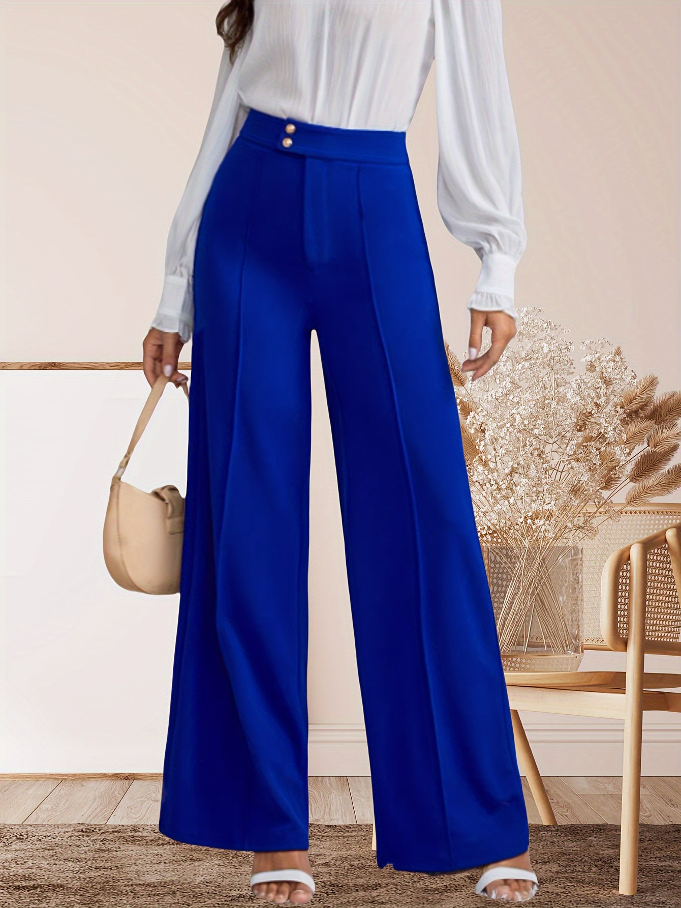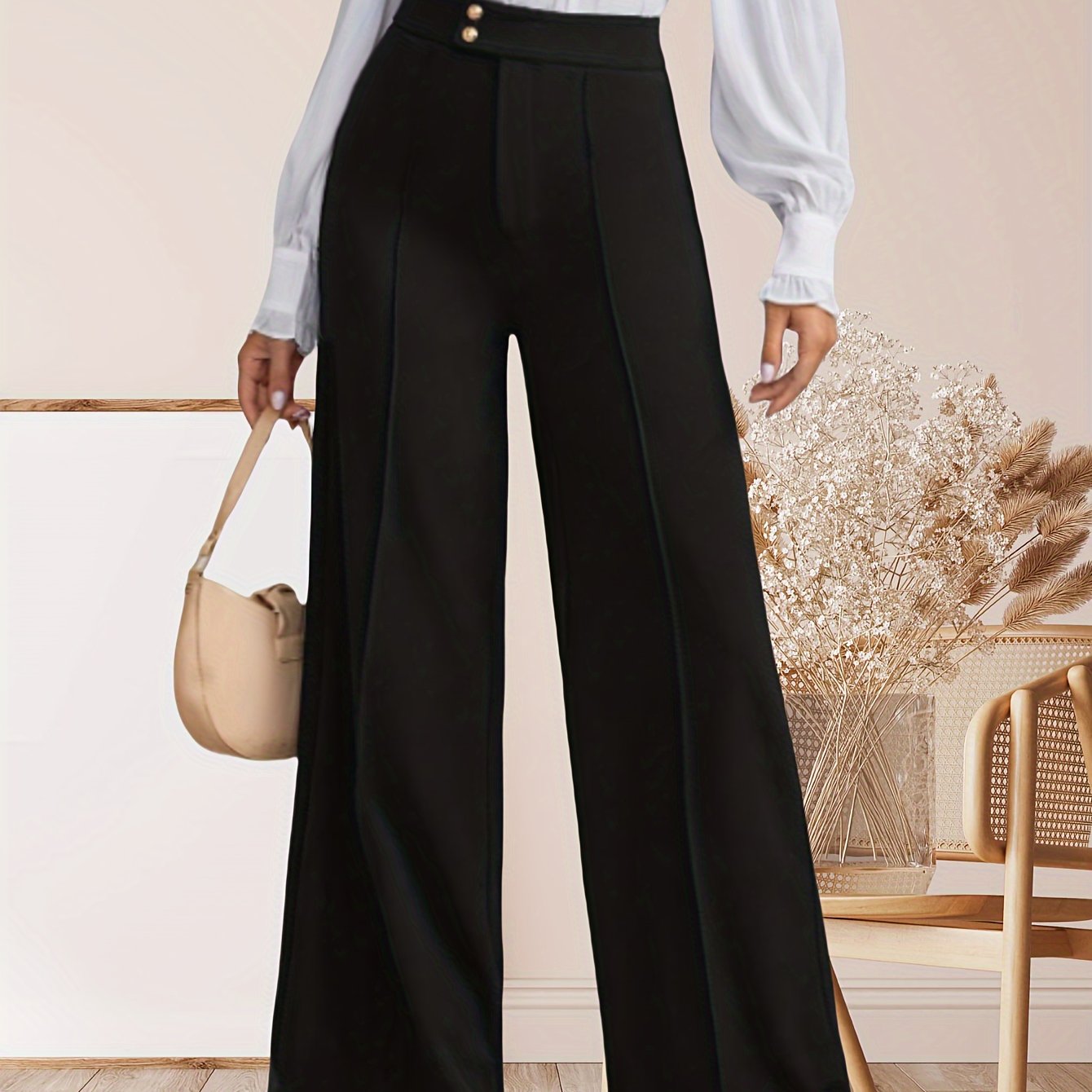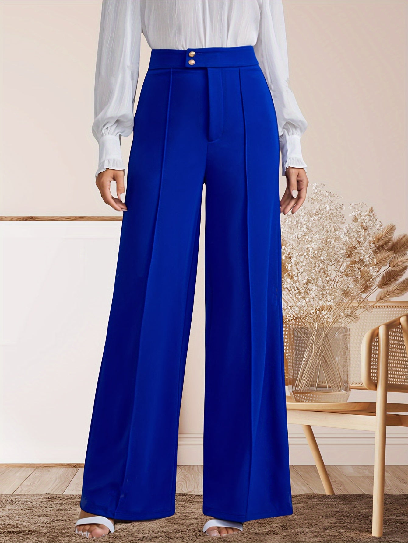 Ayollar uchun yuqori bel palazzo shimlar - Nafis, keng oyoqli, tugma yopish, ish va norasmiy kiyim uchun mos