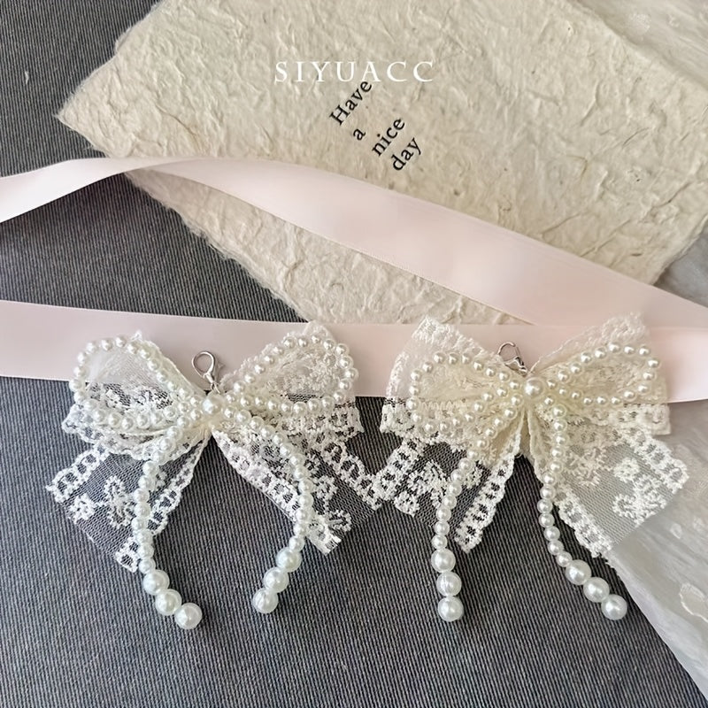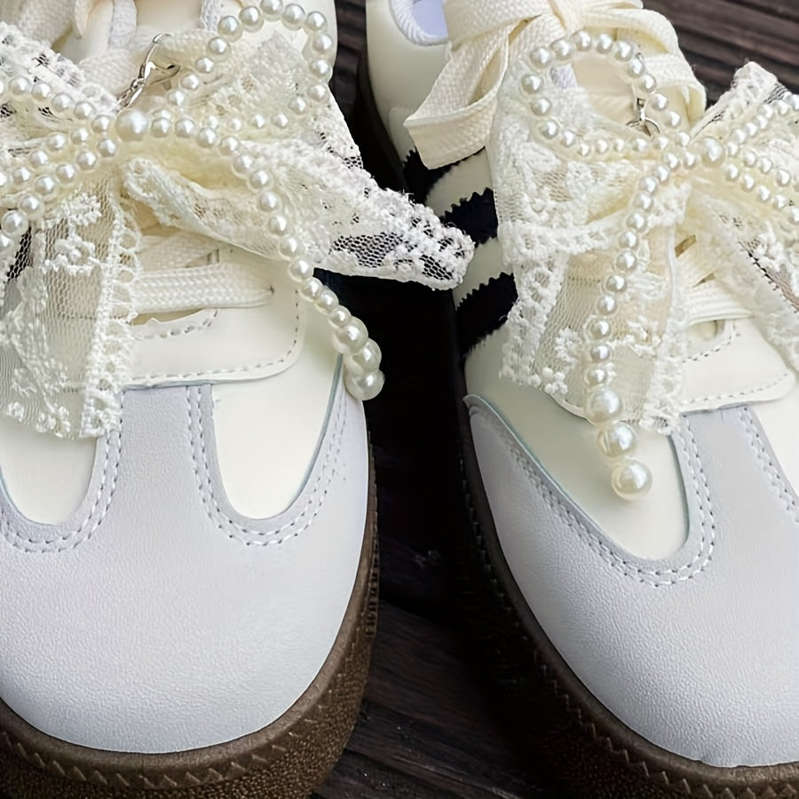 Ayollar uchun tasmali va kamonli poyafzal kliplar to'plami Oq tasmalar va lentalar bilan kamonlar