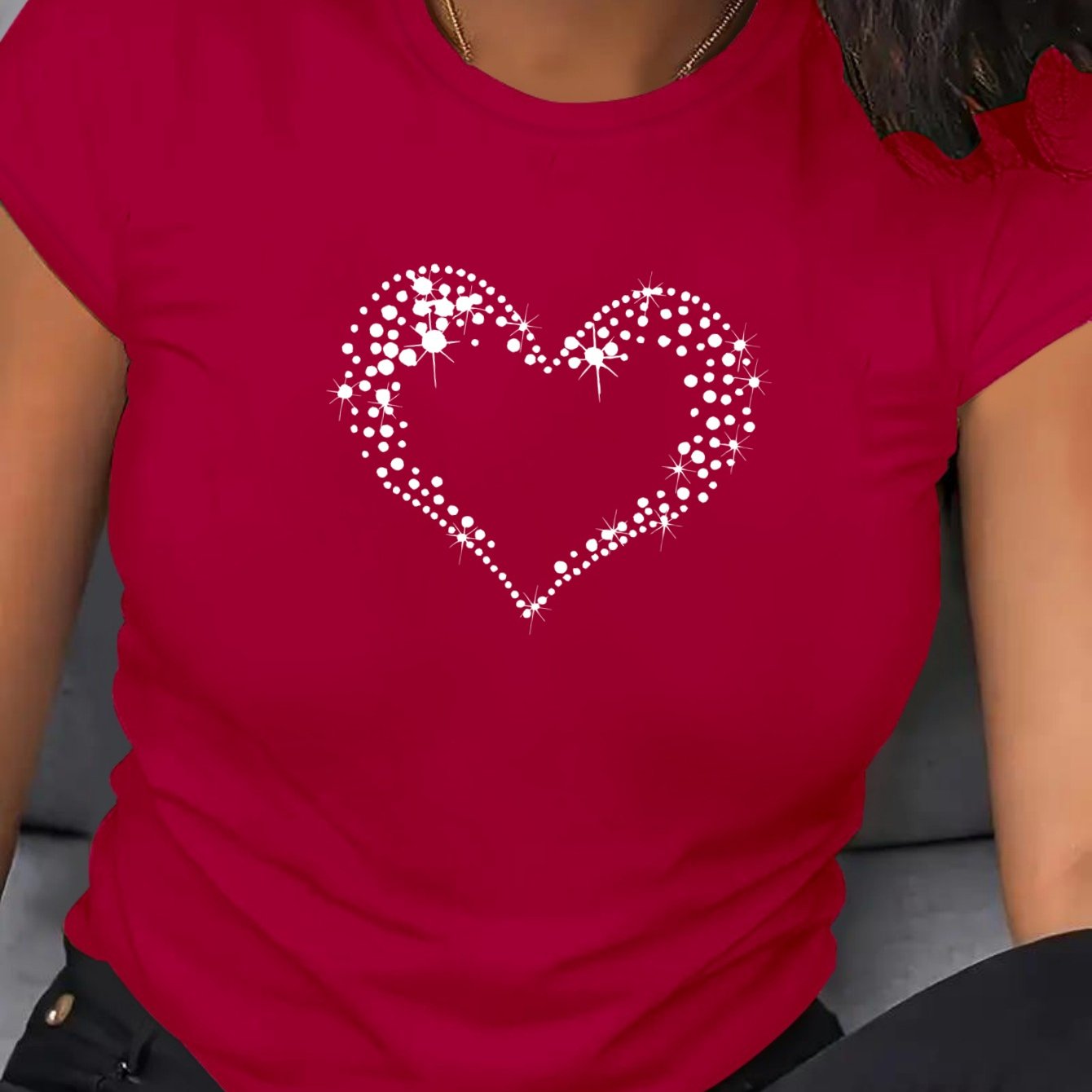 Women's Large Fit Heart Print T-Shirt - Soft Breathable Polyester Casual Short Sleeve