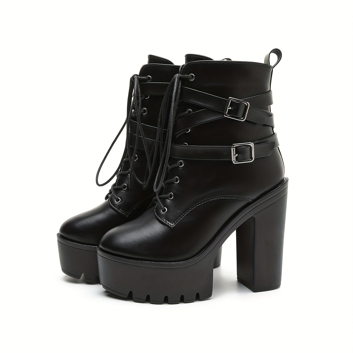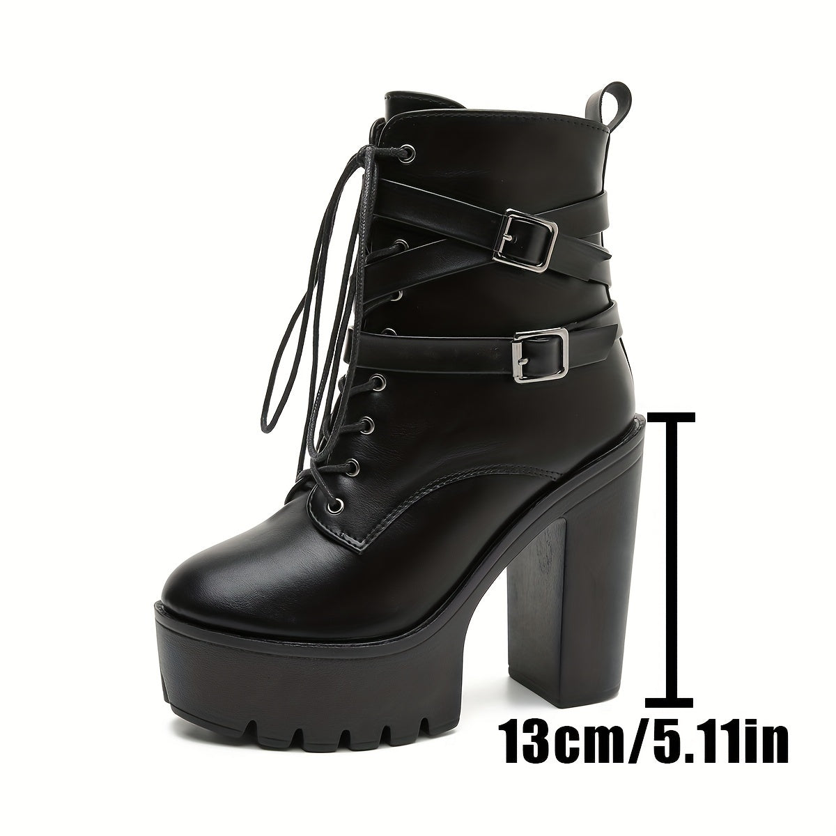 Ayollar uchun charm uslubidagi tizzaga chiqadigan botinkalar, burqoq va qalin poyabzal bilan