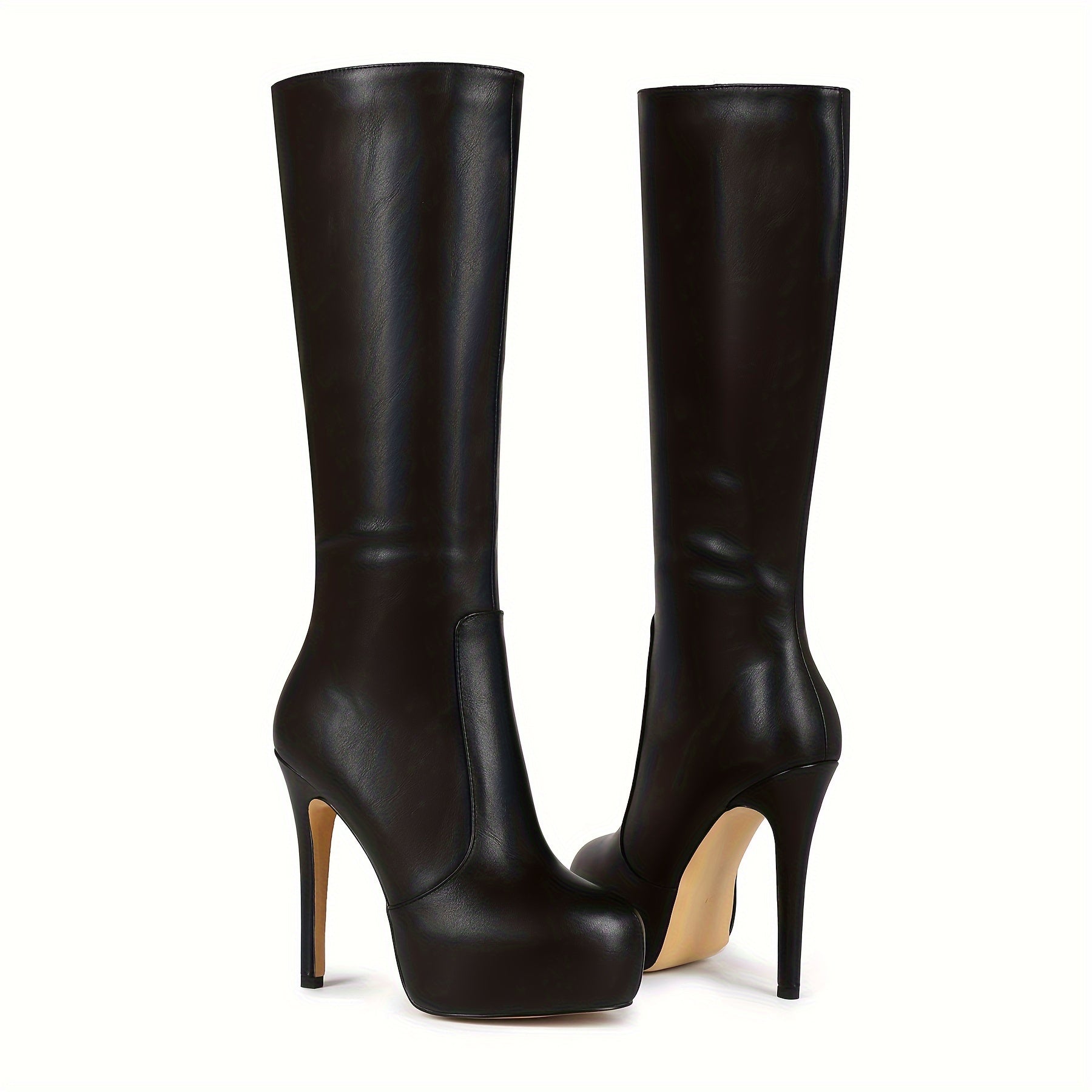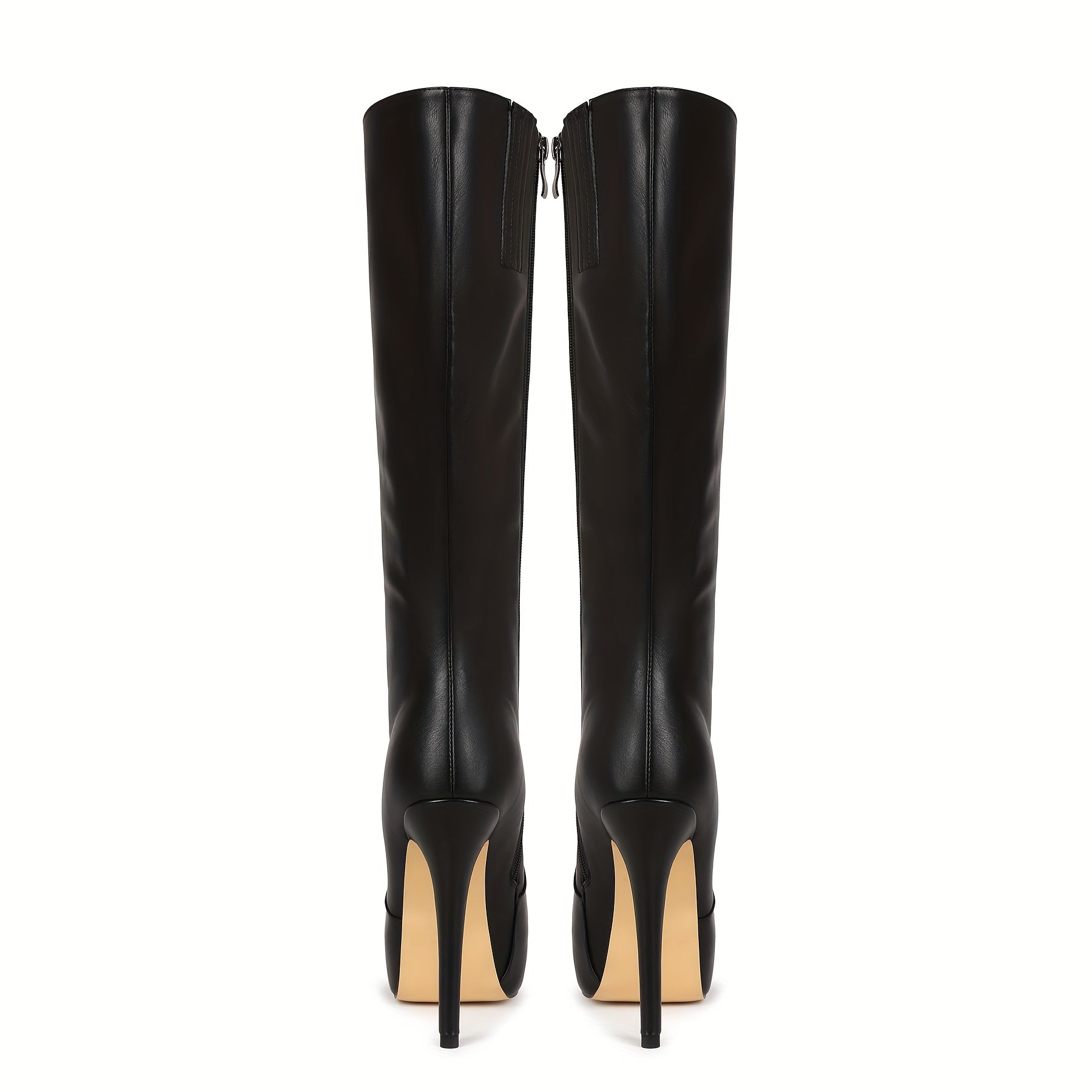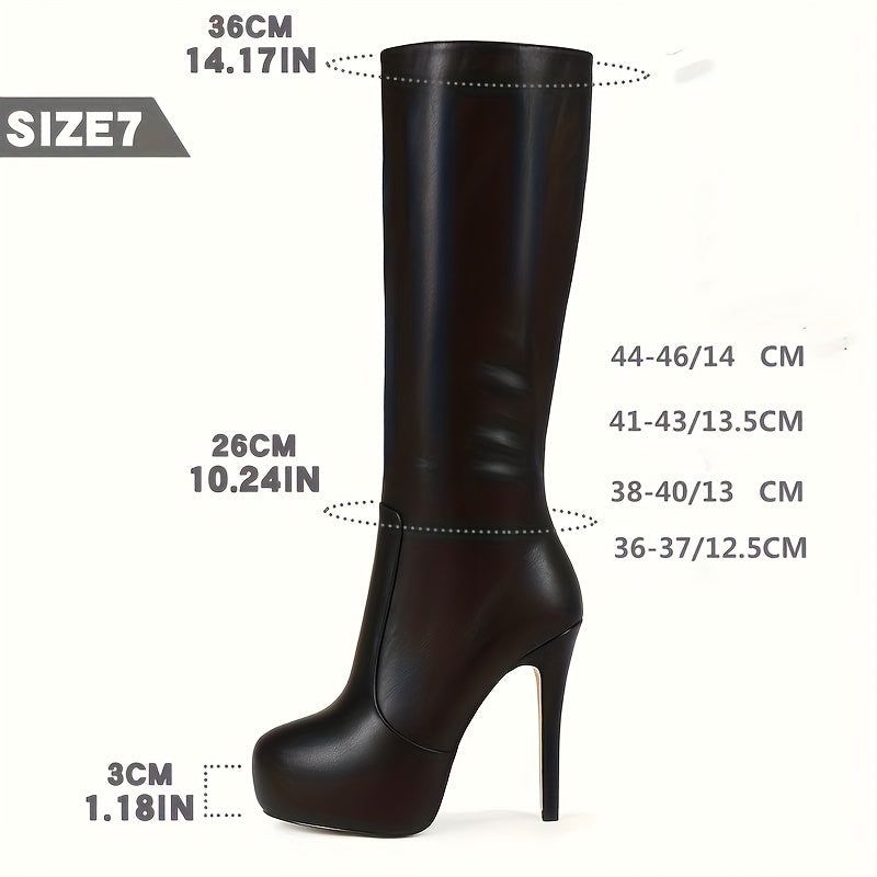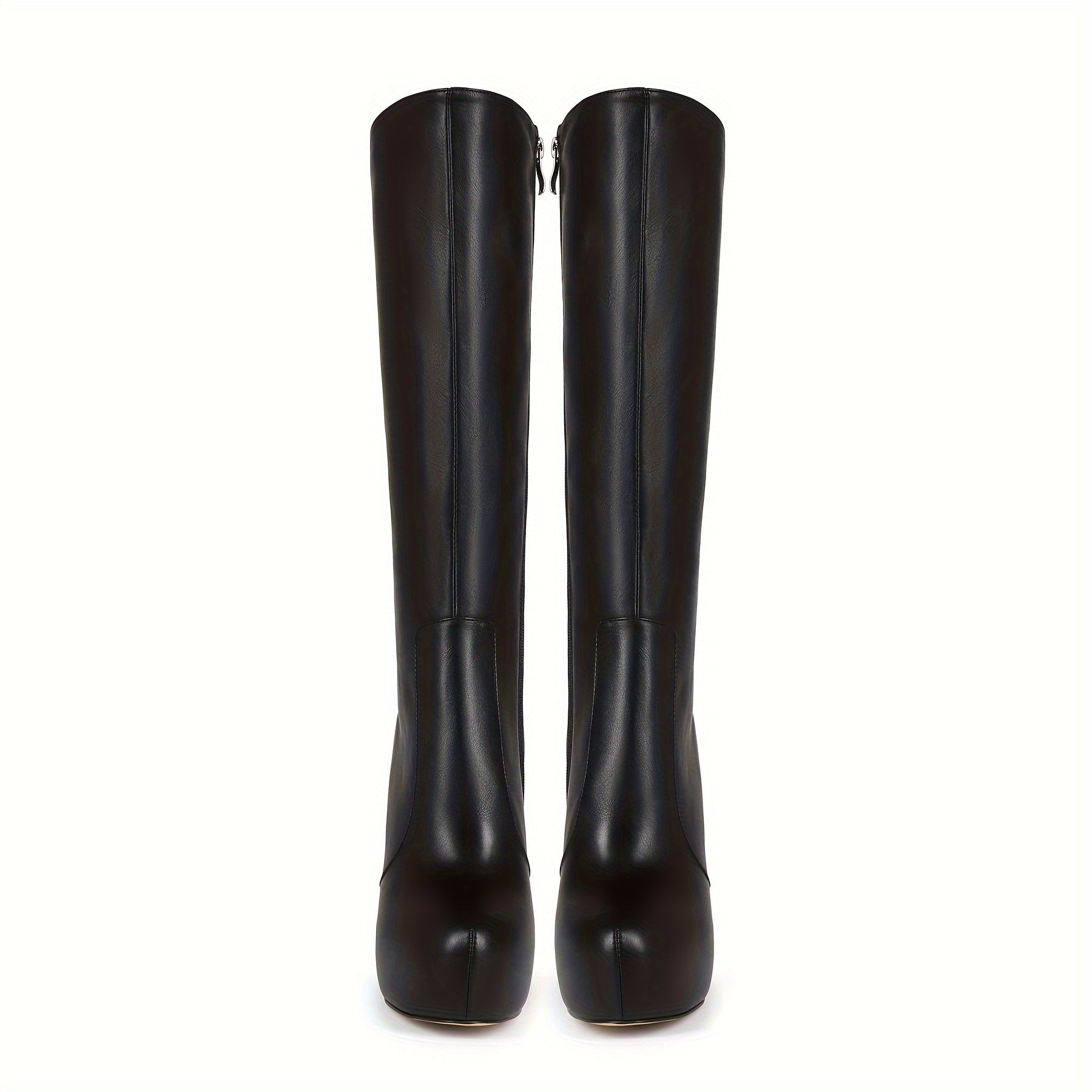 Ayollar uchun charm uslubidagi knight botinkalari, platforma poyabzal va zippersiz