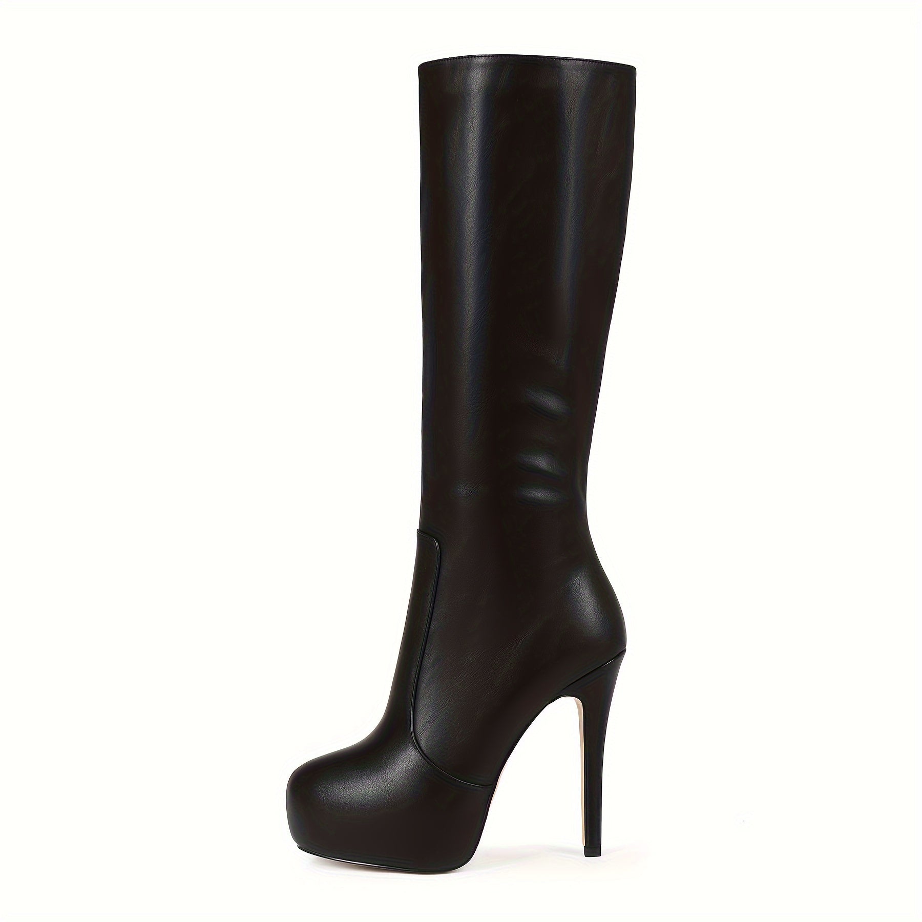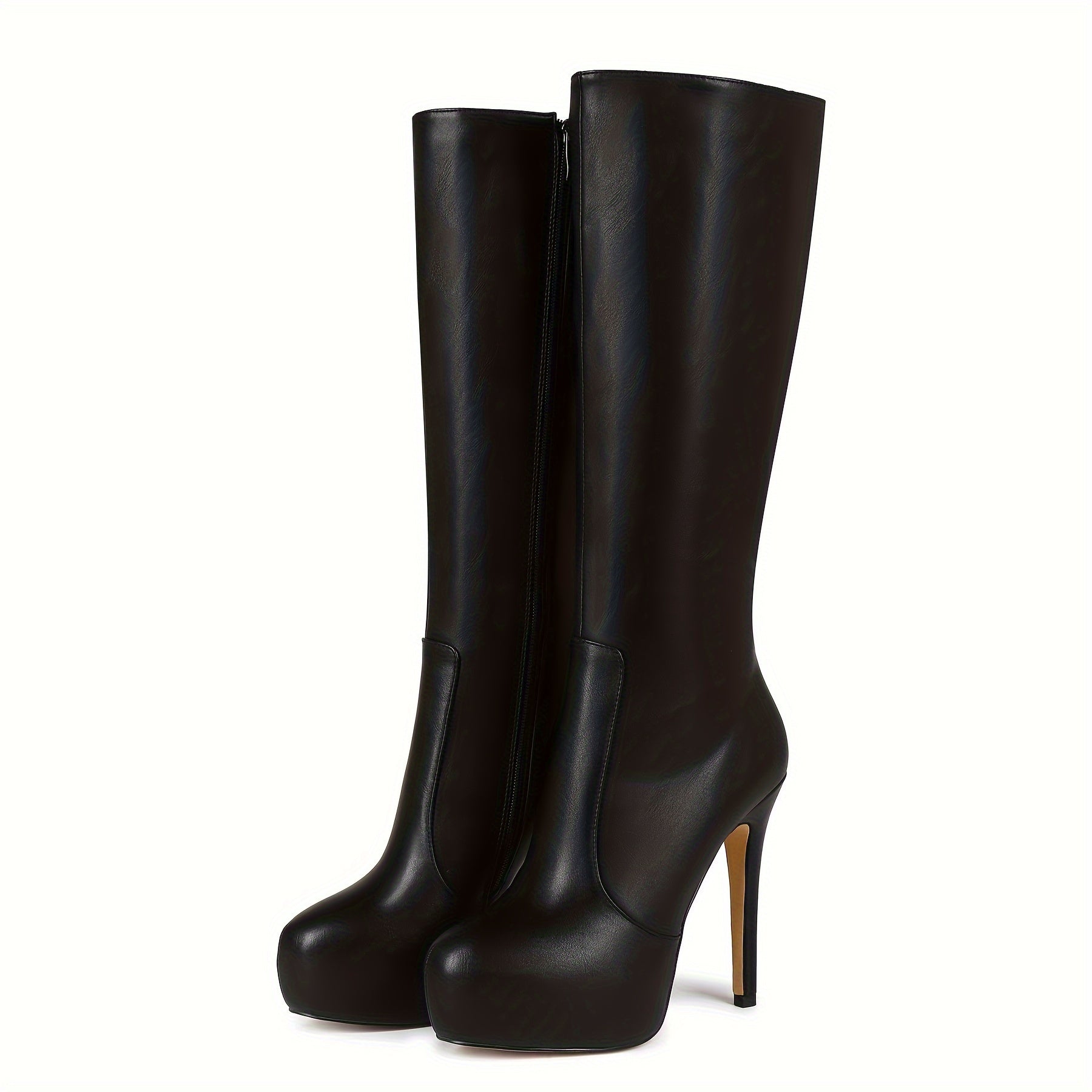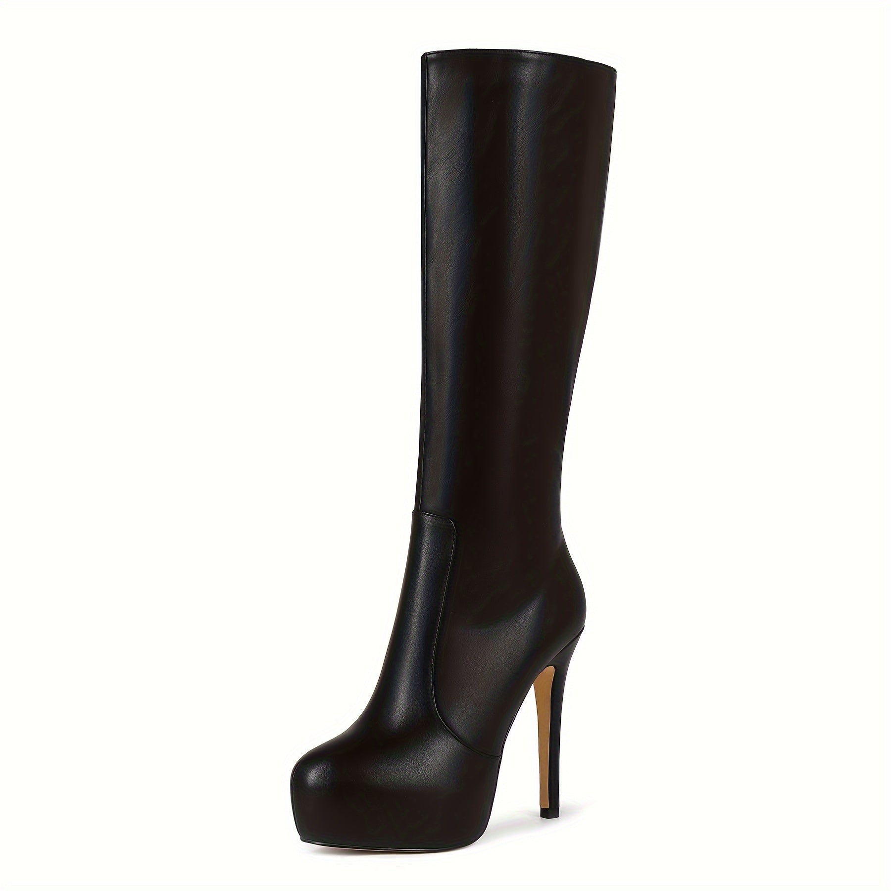 Ayollar uchun charm uslubidagi knight botinkalari, platforma poyabzal va zippersiz