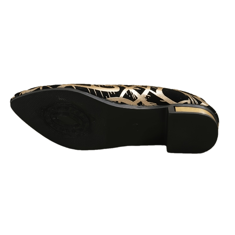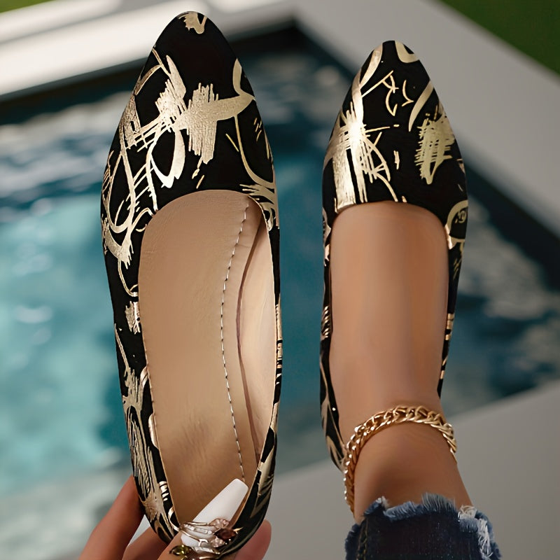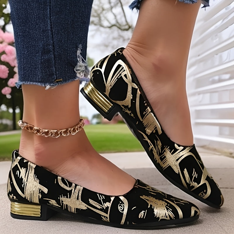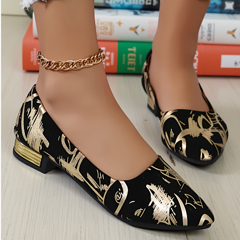 Ayollar uchun past bo'yinli flat poyabzal, oltin bezaklar va frantsuz retro dizayni bilan