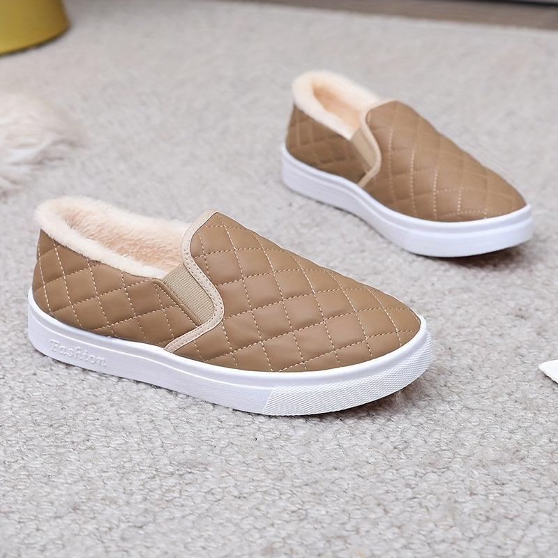 Ayollar uchun tekislangan, flanel bilan qoplangan, yurish uchun yopiladigan oyoq kiyimlari, yopishqoqsiz PVC taglik bilan