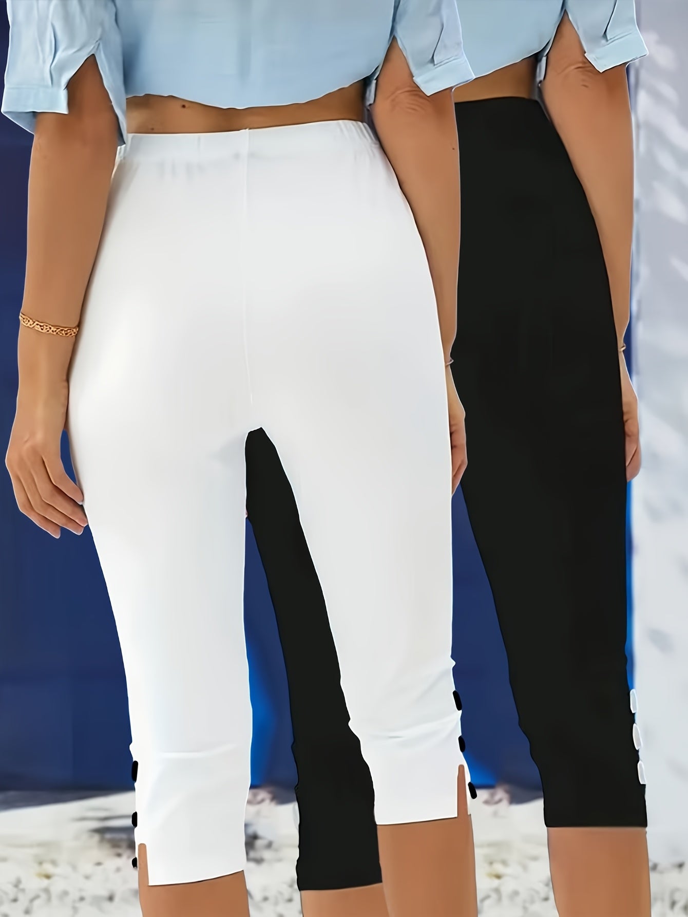 Ayollar uchun katta o'lchamli 2 qismli to'plam, kengaytirilgan capri, qora va oq, elastik bel